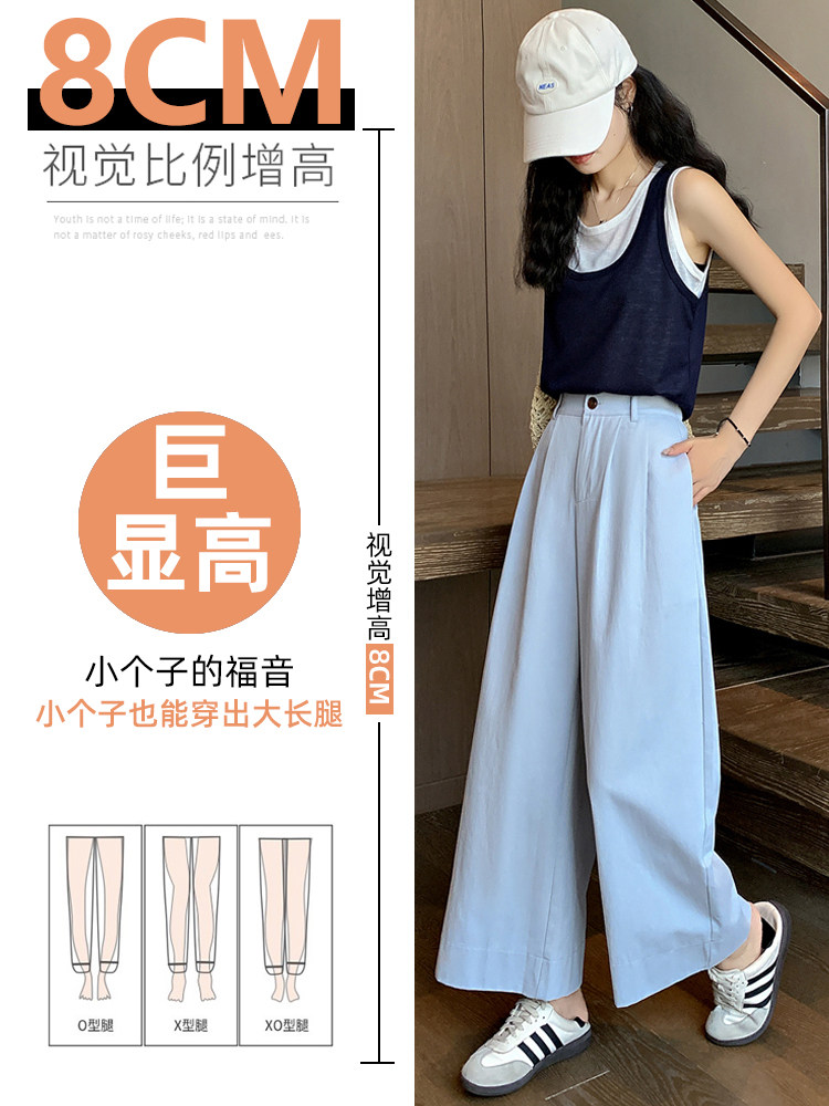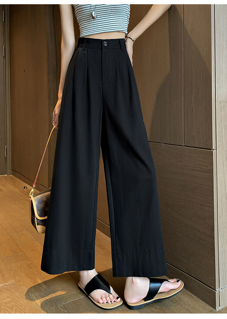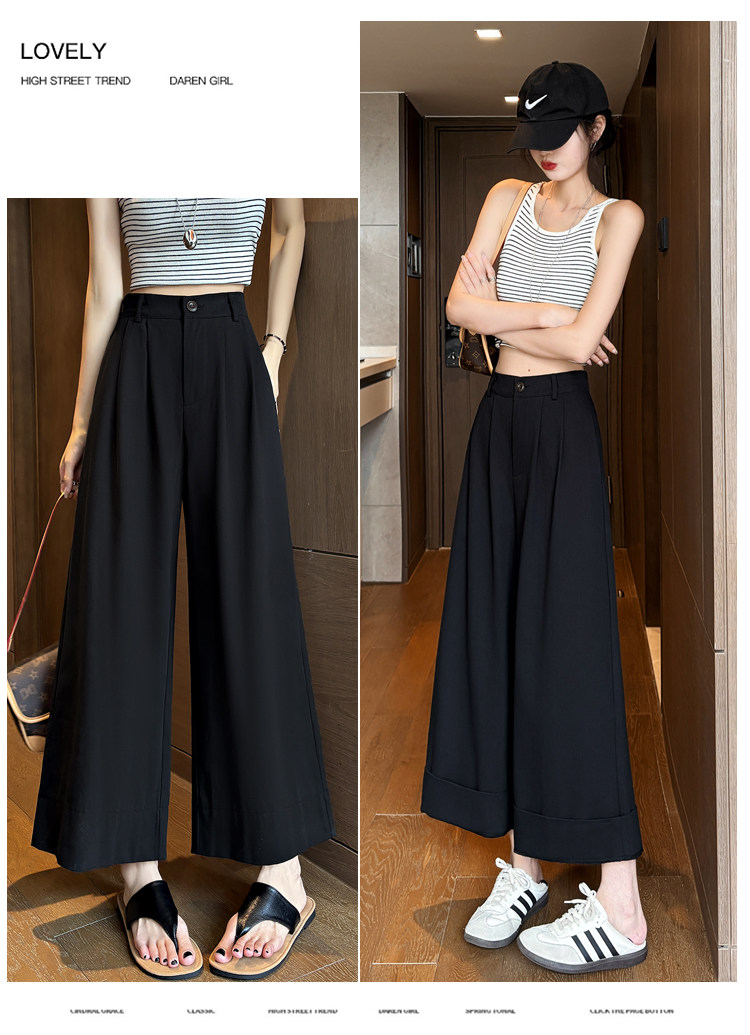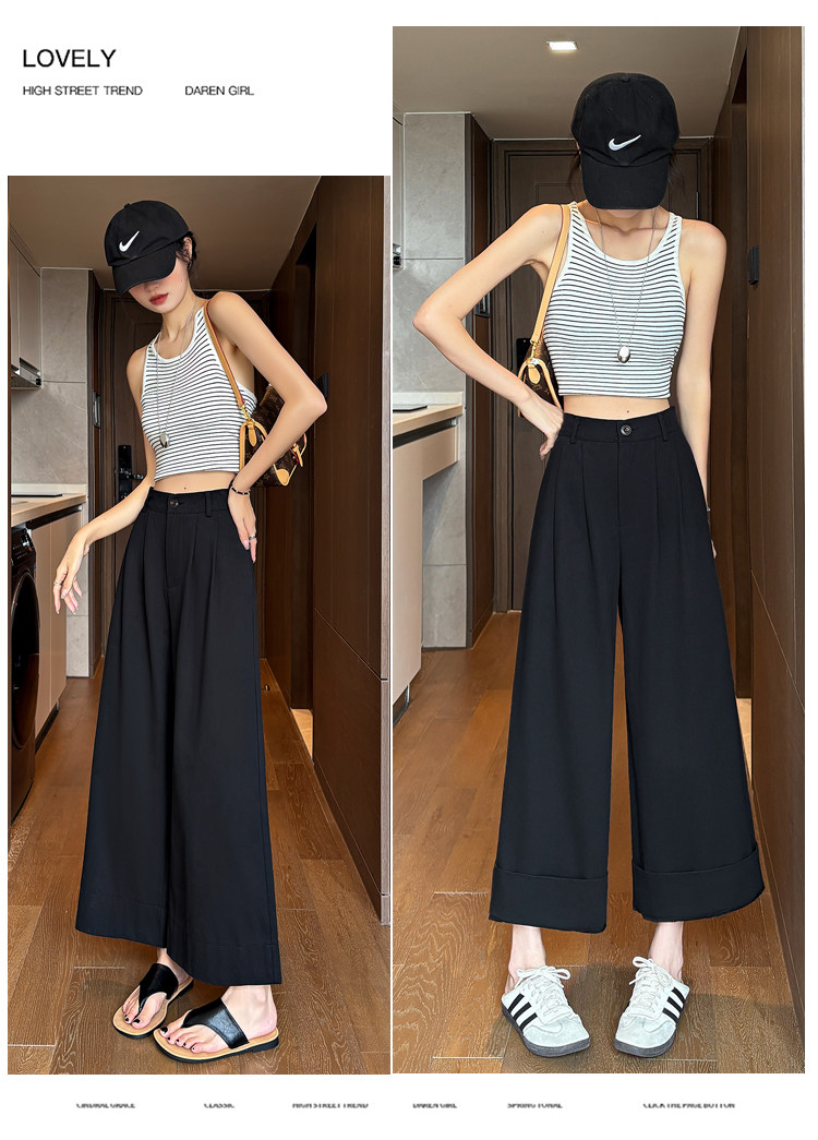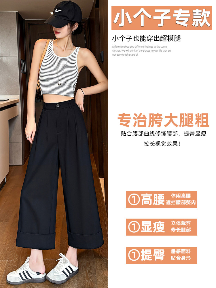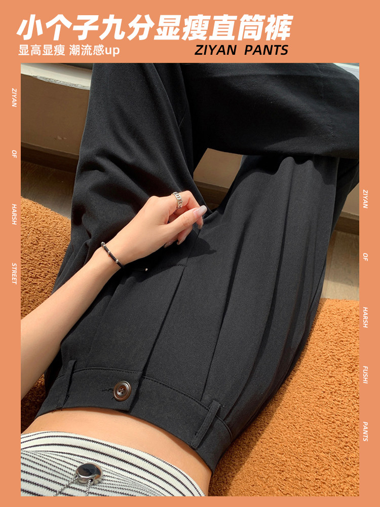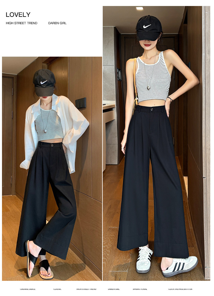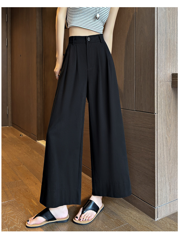 2026 spring new wide-leg pants for small women, black high-waisted, slim, lazy and relaxed, straight-leg pants