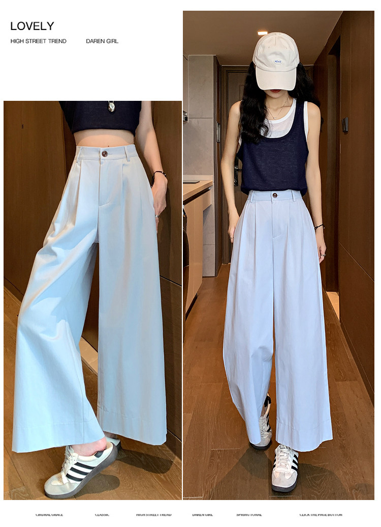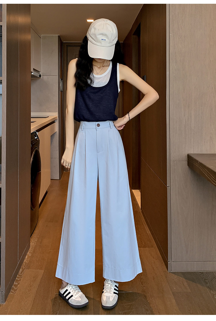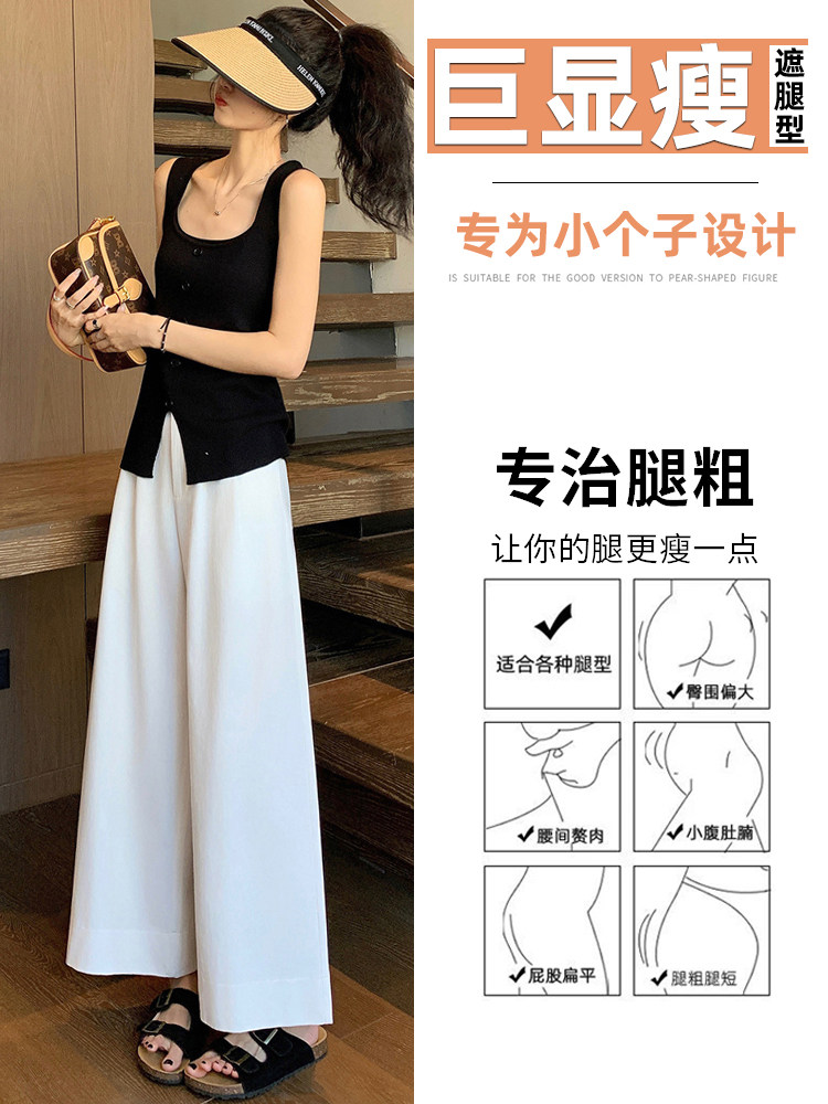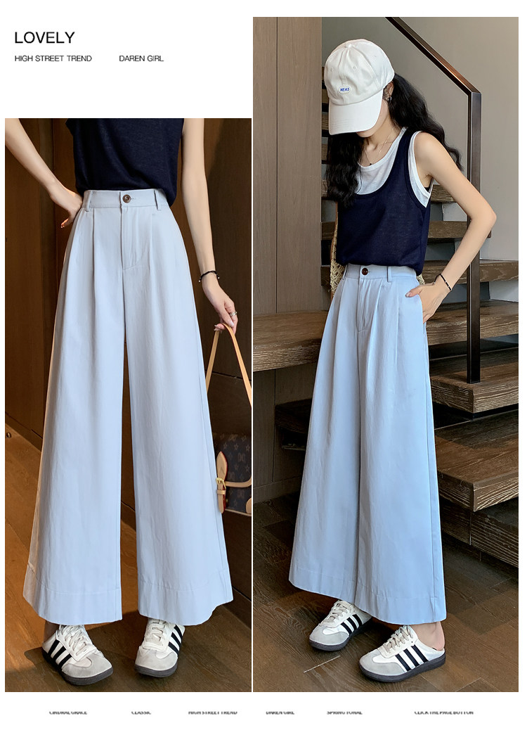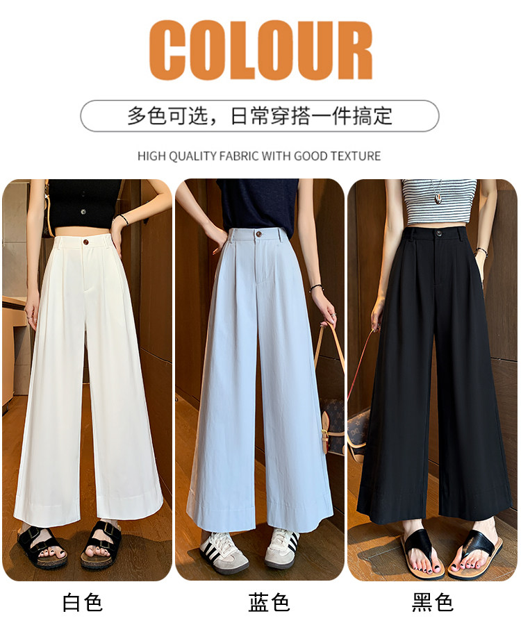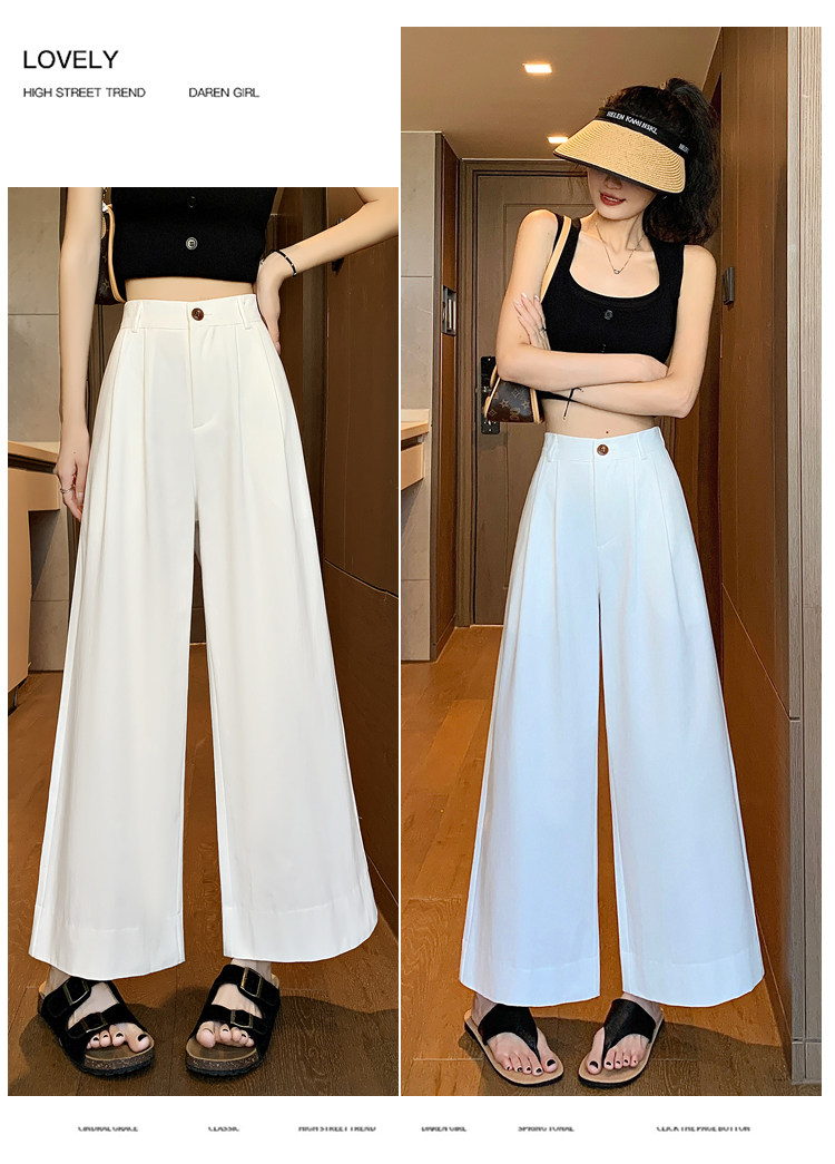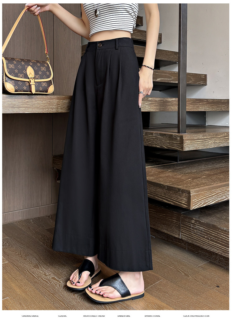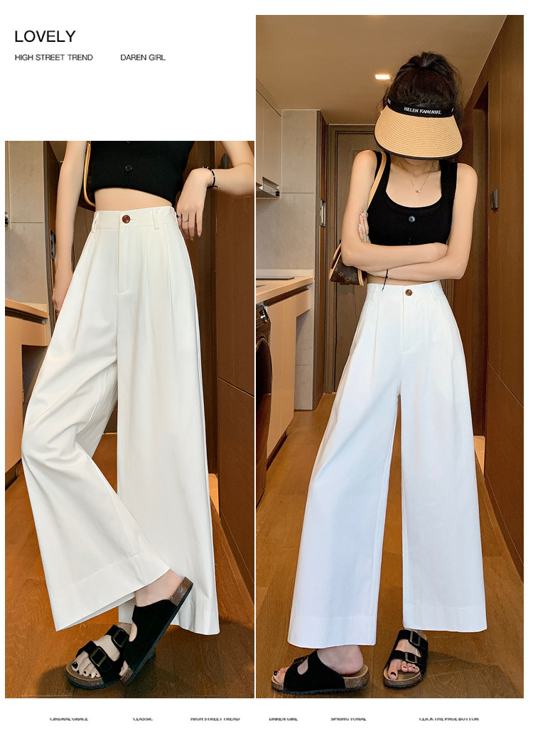 2026 spring new wide-leg pants for small women, black high-waisted, slim, lazy and relaxed, straight-leg pants