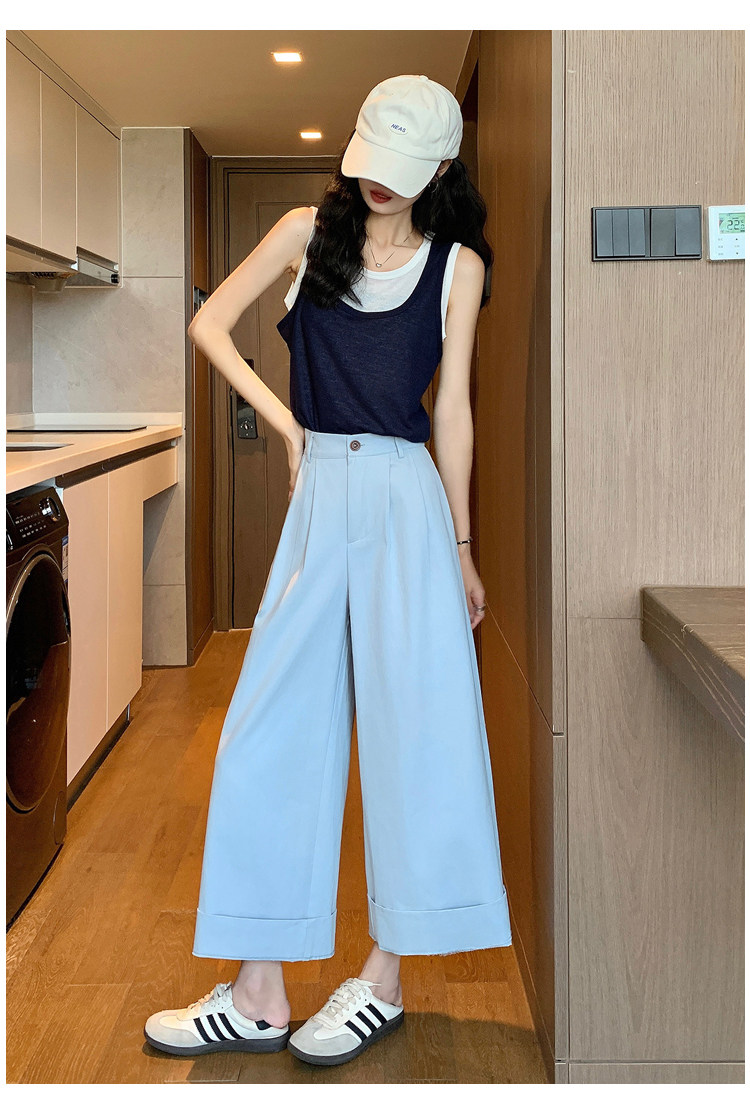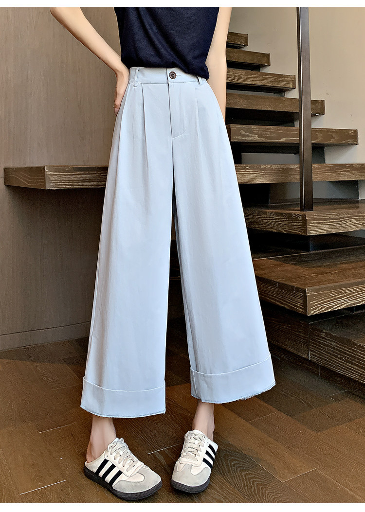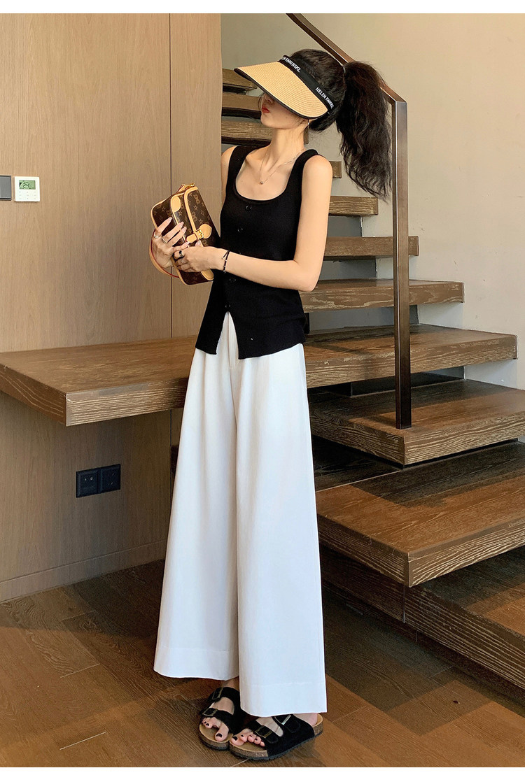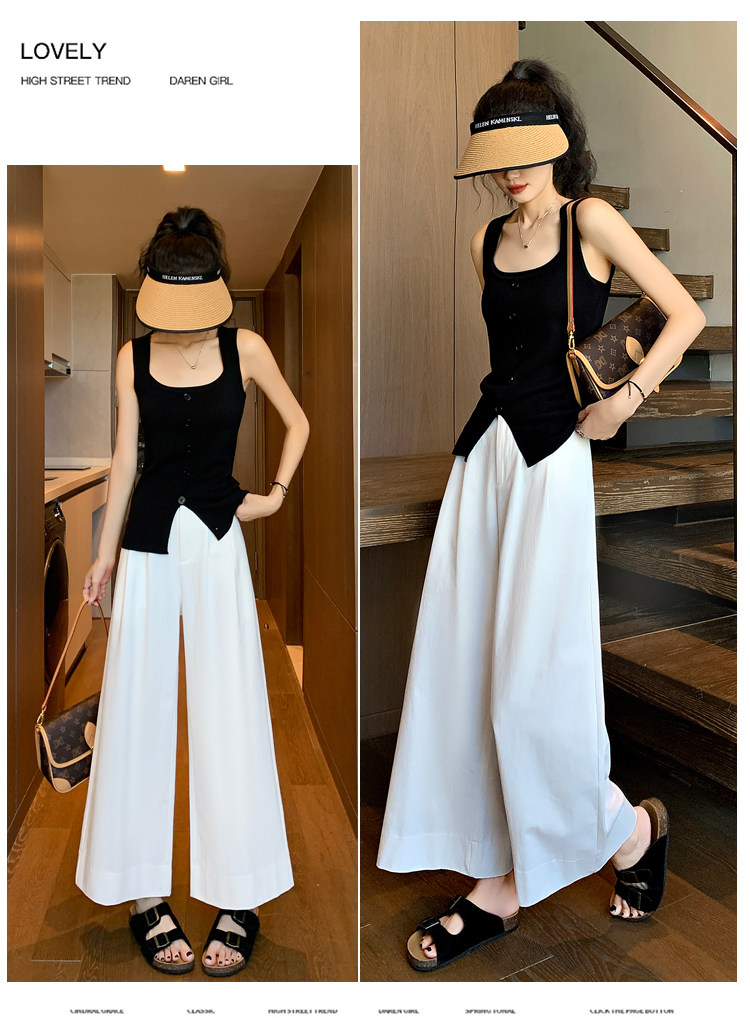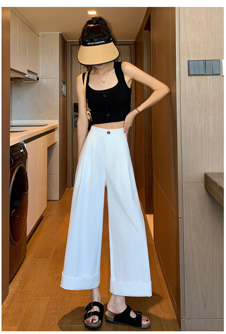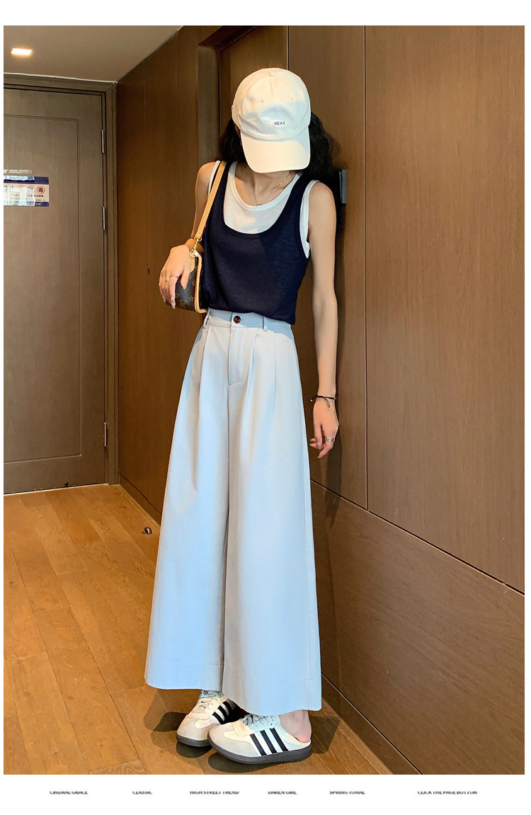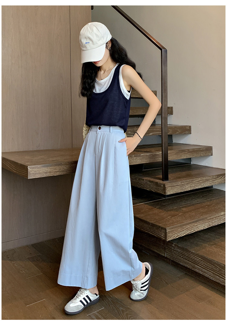 2026 spring new wide-leg pants for small women, black high-waisted, slim, lazy and relaxed, straight-leg pants