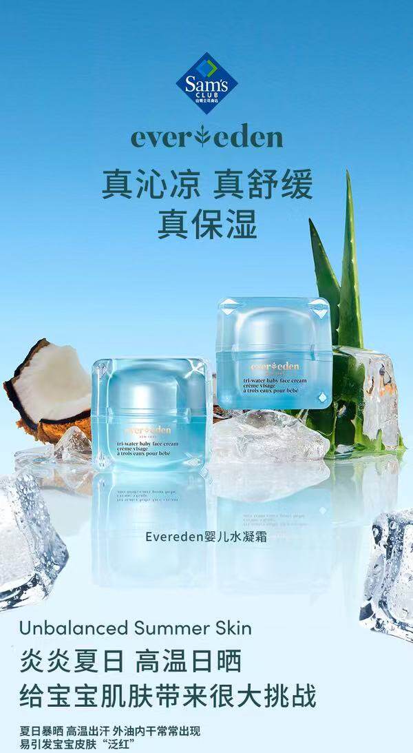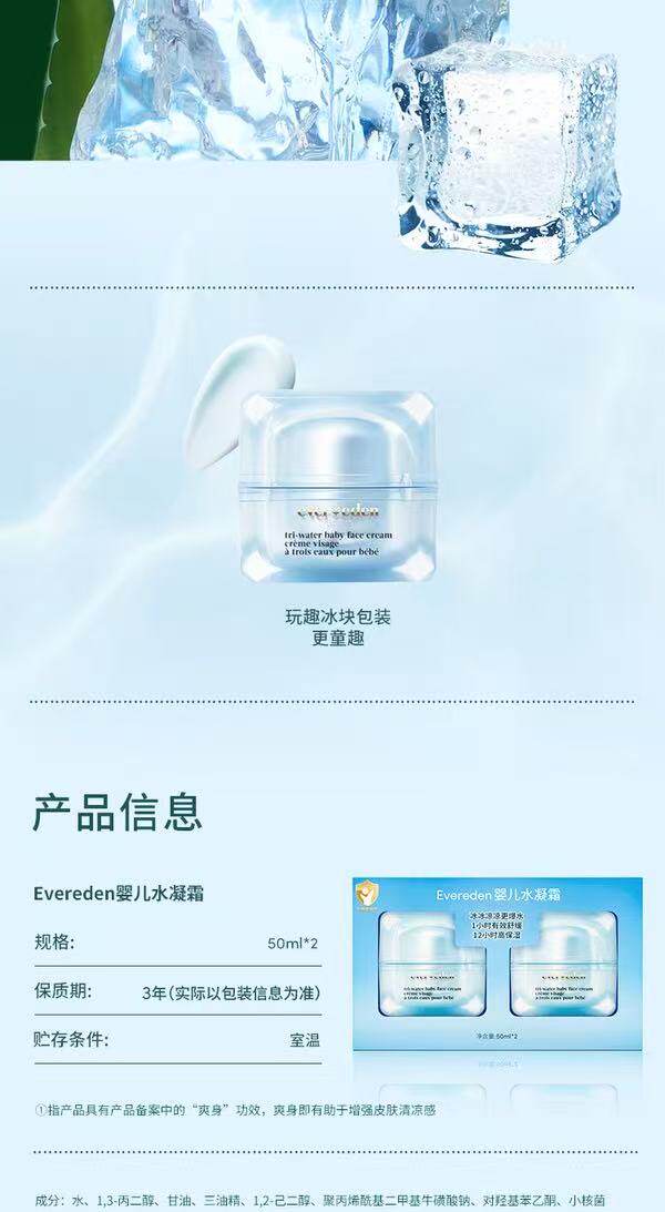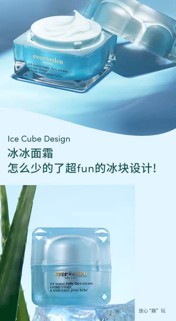 Imported from the United States, Evereden Anweiyi Four Seasons Baby Blue Freeze Cream Children's Moisturizing Ice Cream Family 50ml