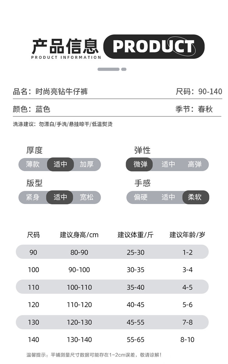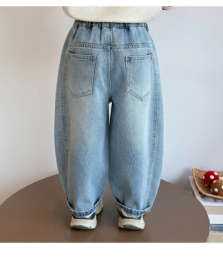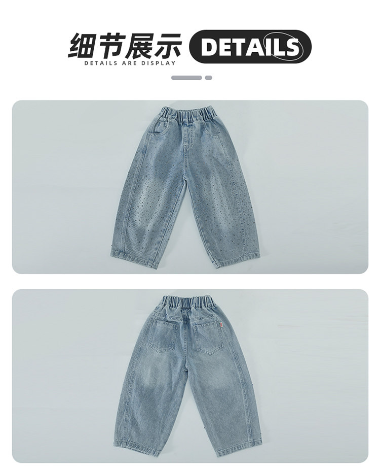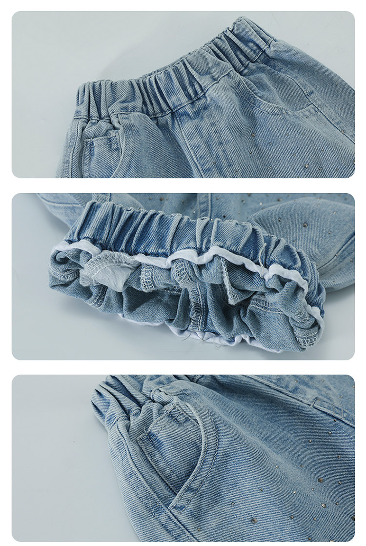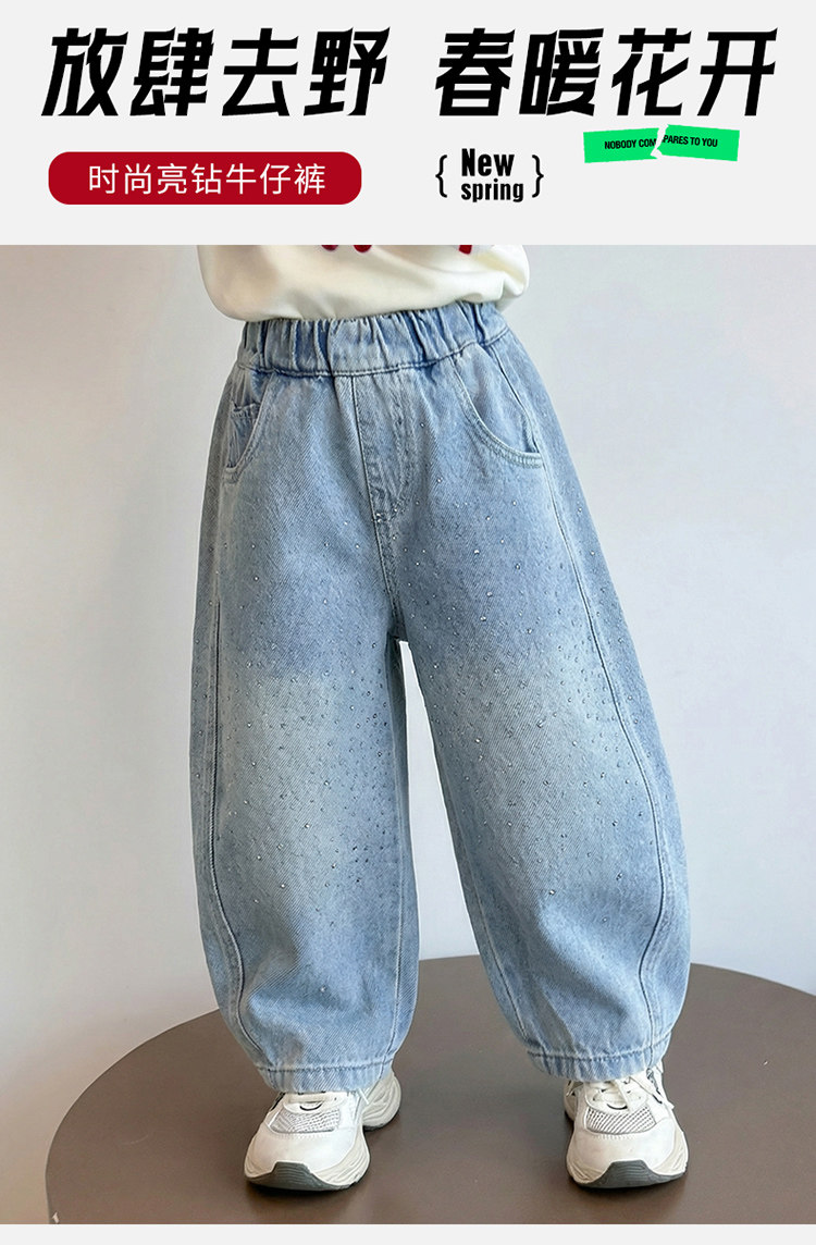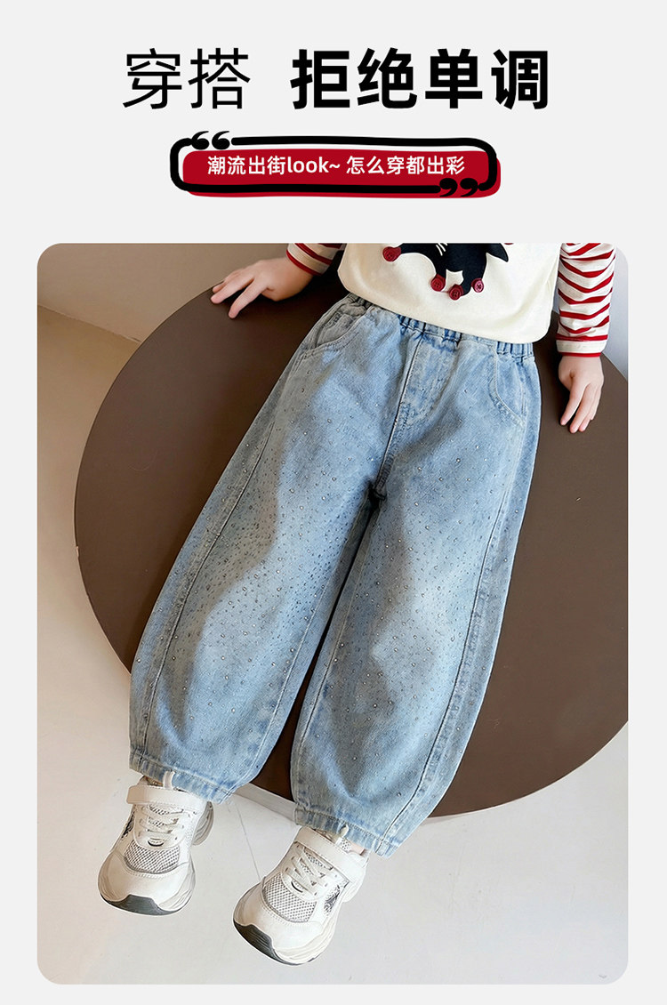 Girls' Spring and Autumn Jeans with Rhinestones and a Sweet Stylish Straight-Leg Design, Elastic Waist Pants for Children