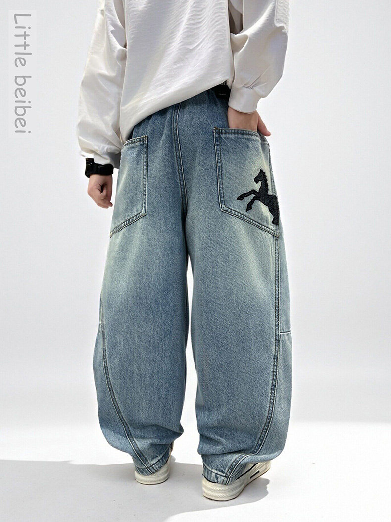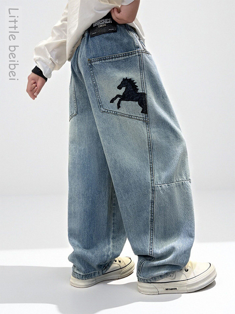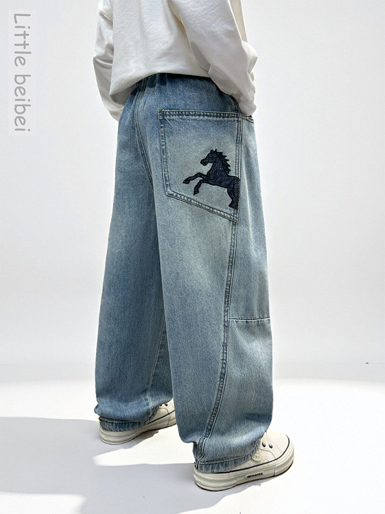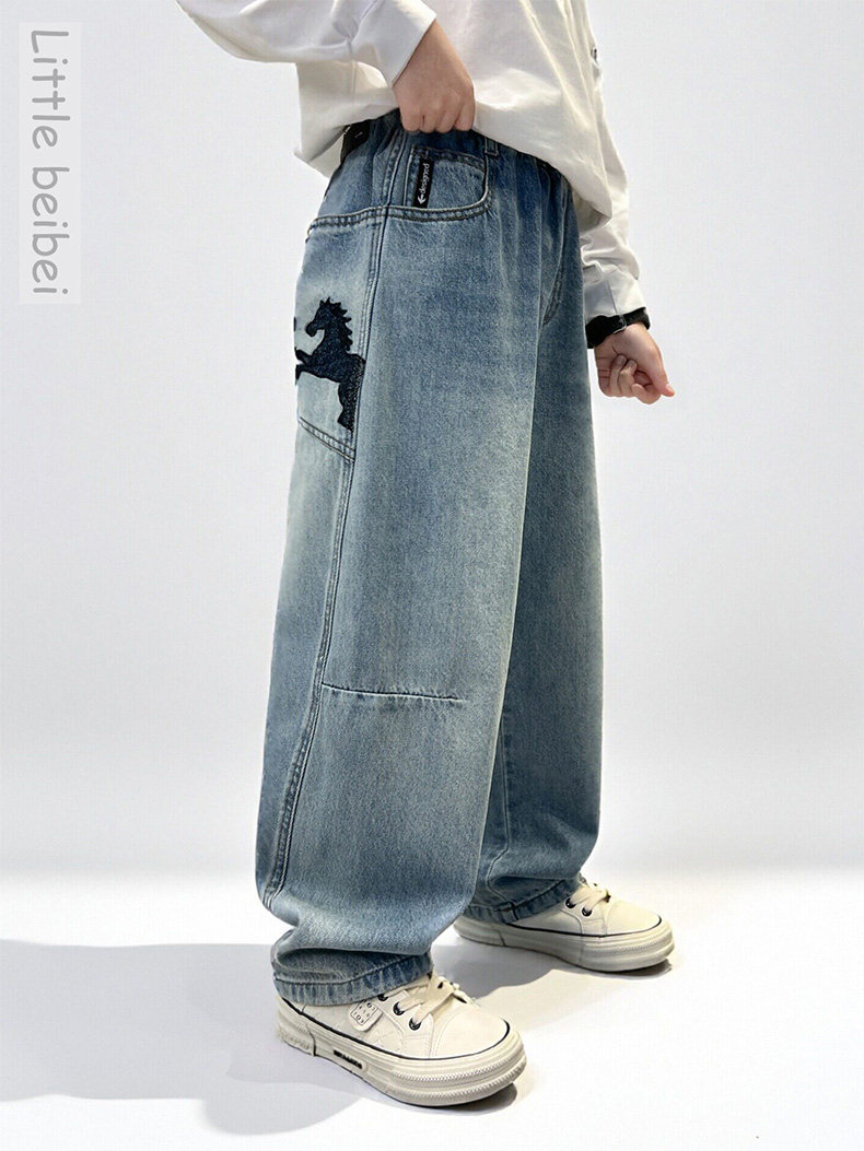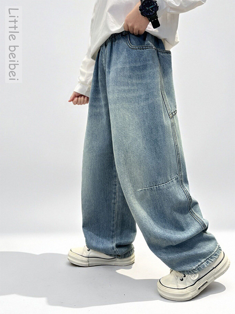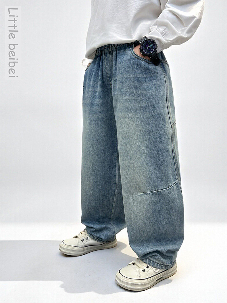 Boys' Spring Pants 2026 New Stylish Children's Loose Jeans for Older Kids, Spring and Autumn Casual Straight-Leg Long Pants
