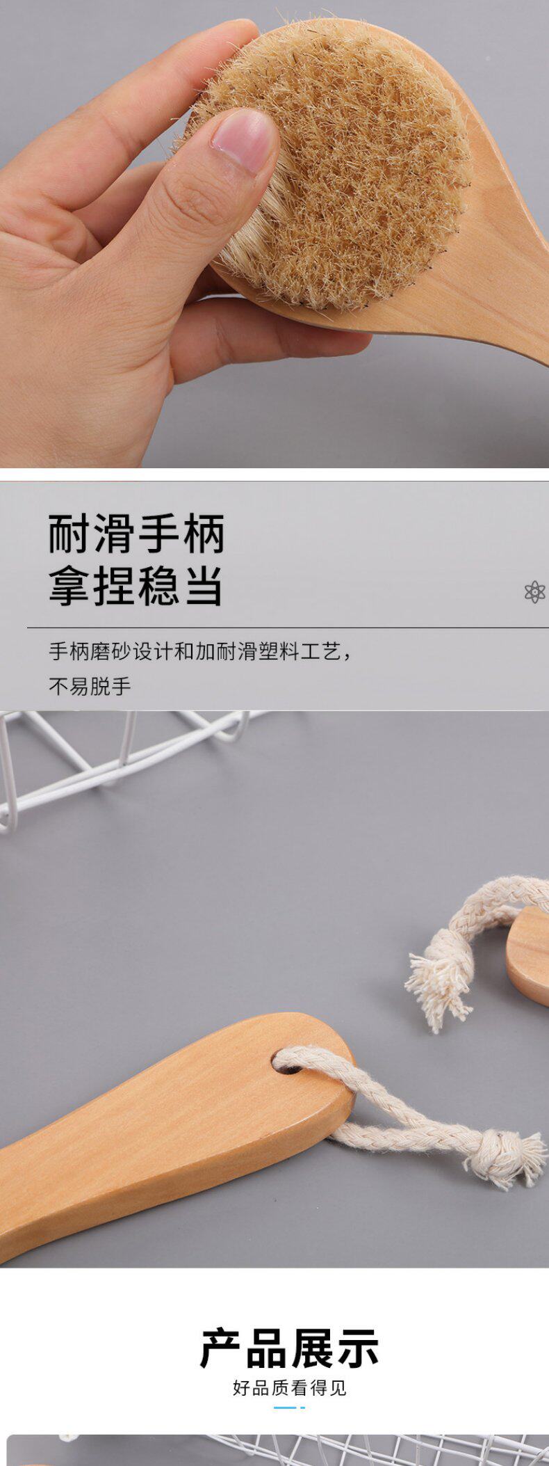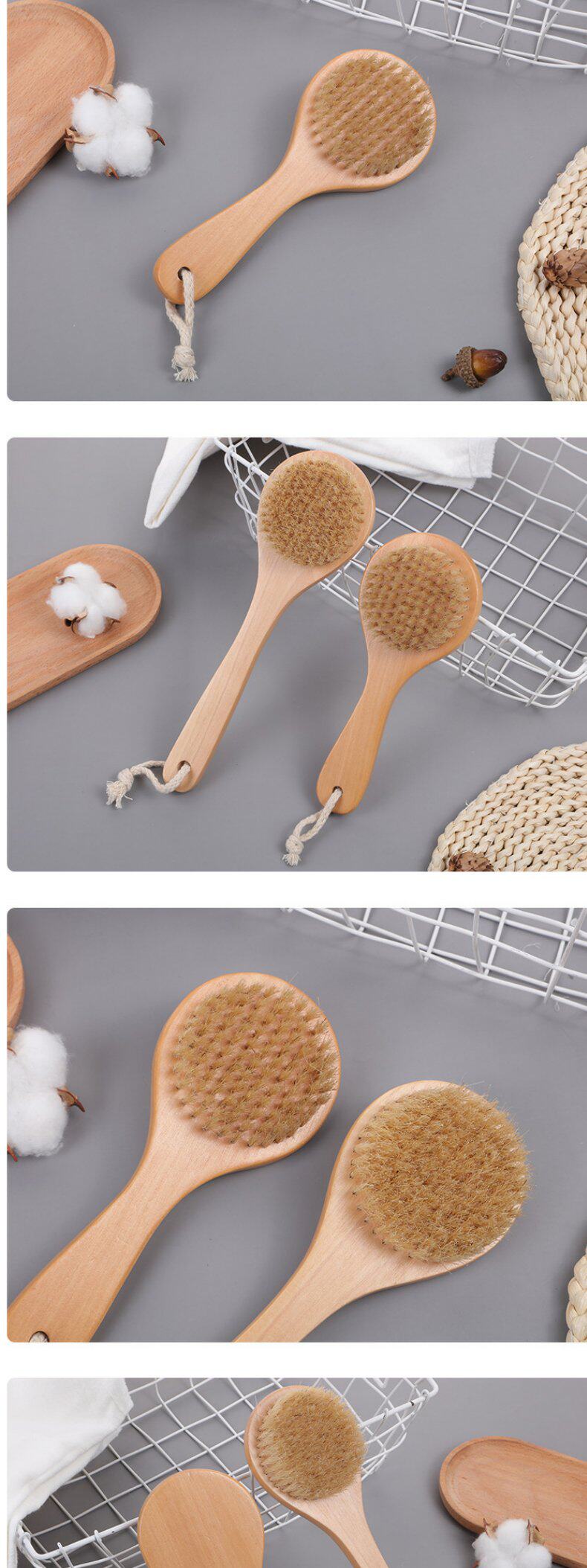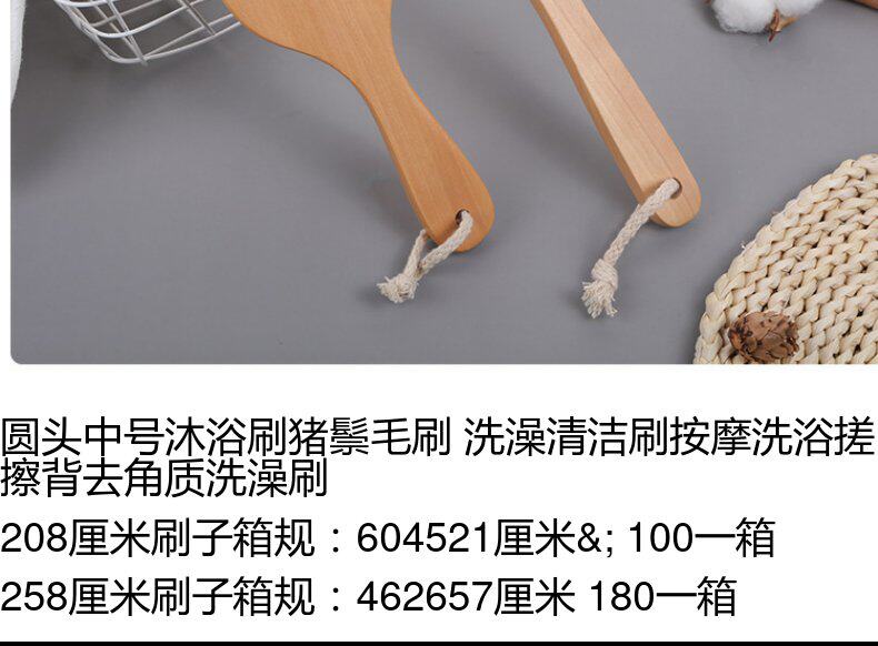 New Model Round-Head Medium-Sized Bath Brush with Pig Bristles for Cleaning, Massaging, Scrubbing, and Exfoliating