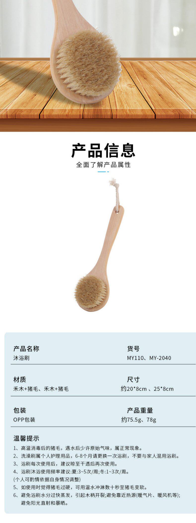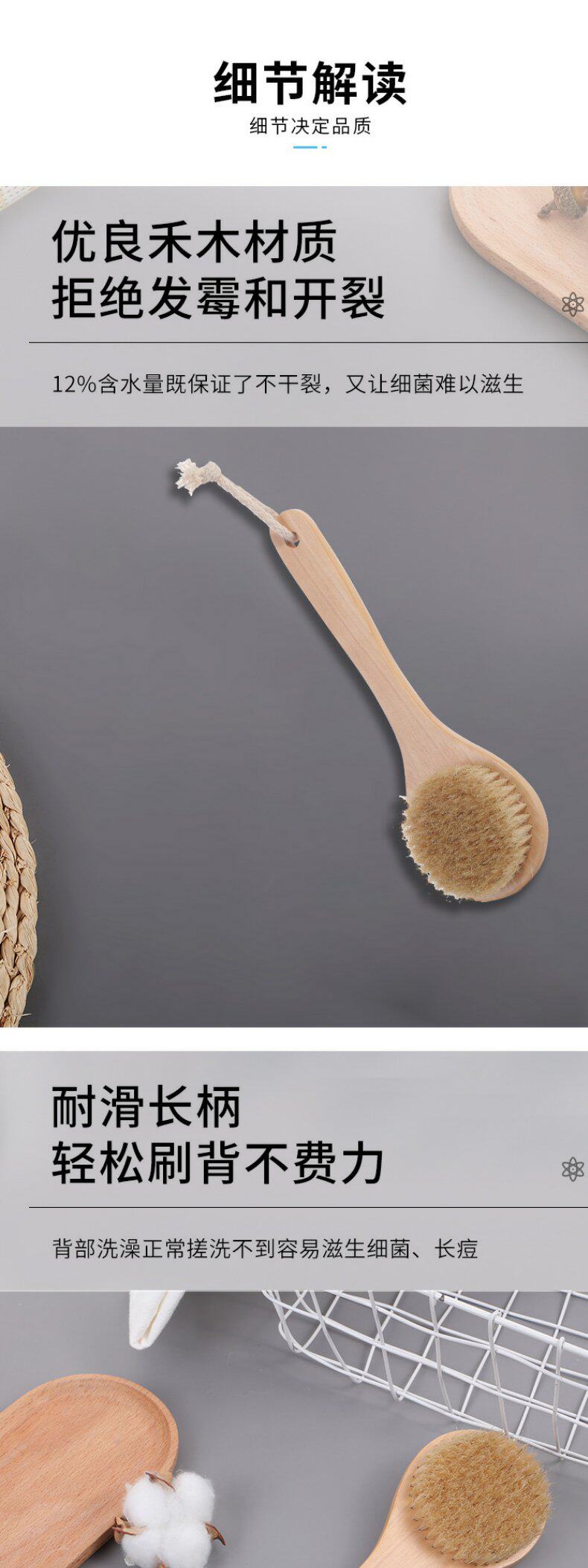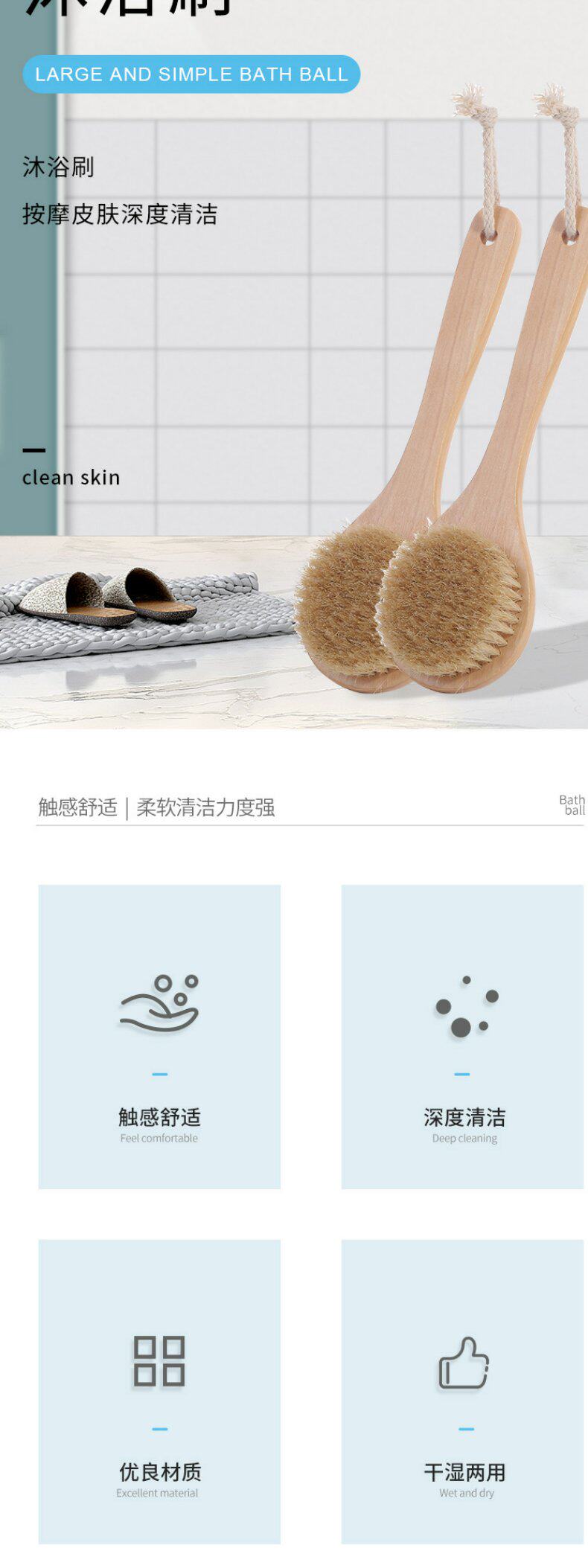 New Model Round-Head Medium-Sized Bath Brush with Pig Bristles for Cleaning, Massaging, Scrubbing, and Exfoliating