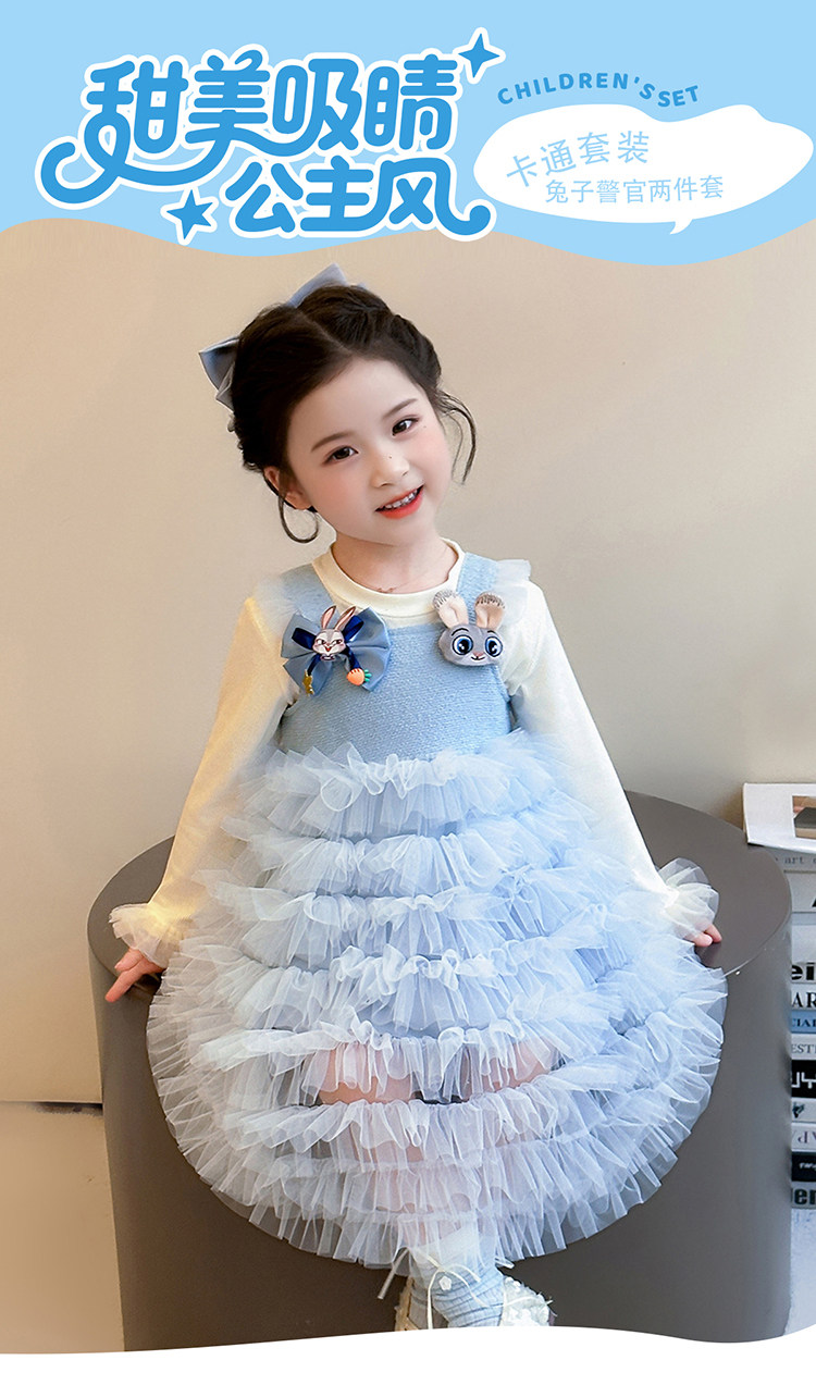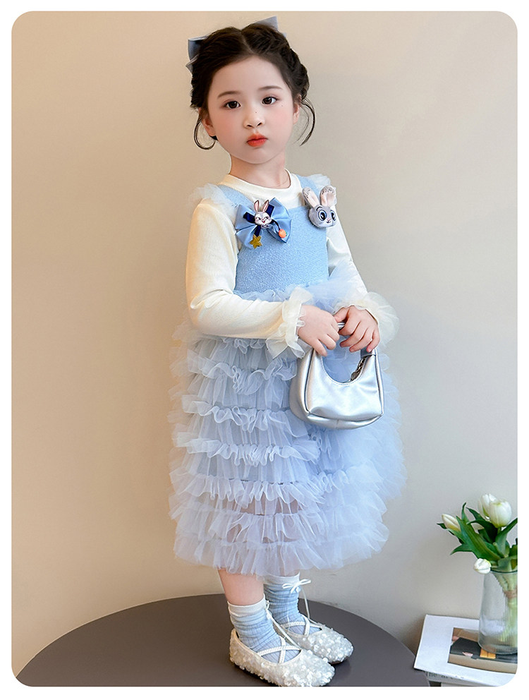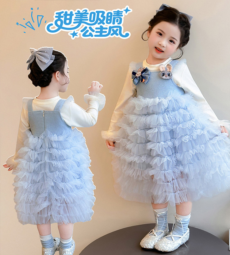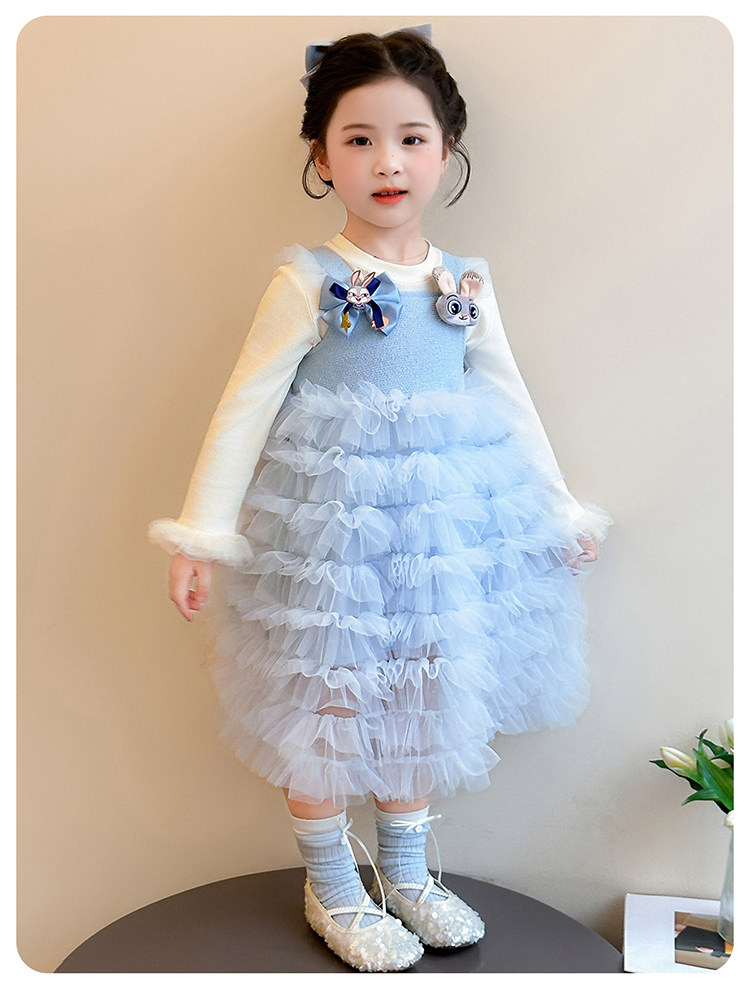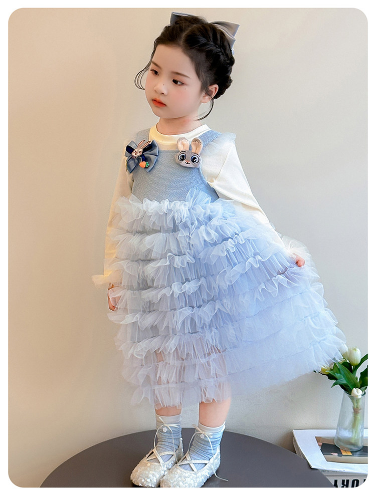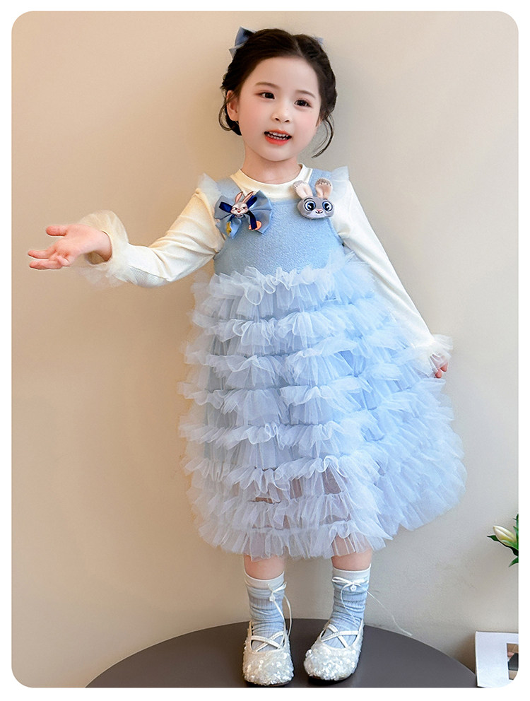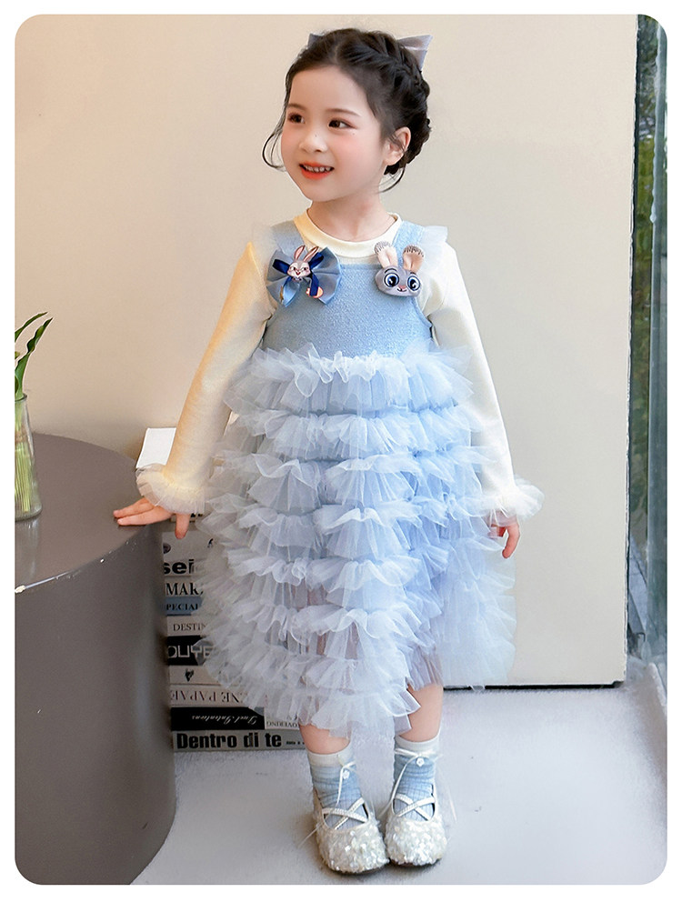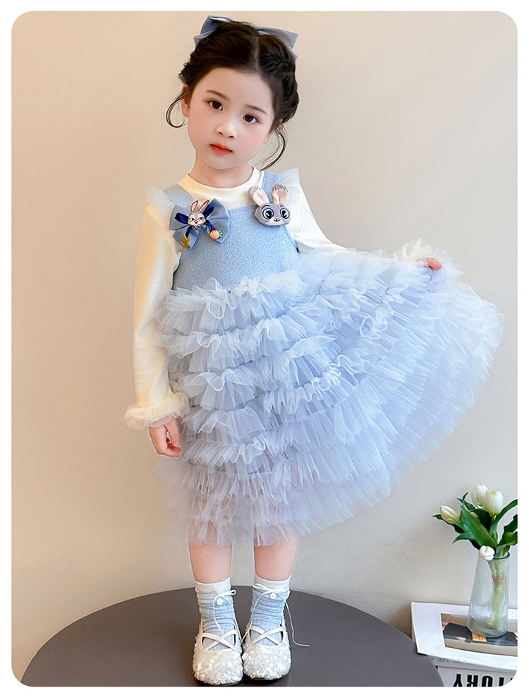 Girls' Long-Sleeved Princess-Style Dress, Kidsren's Blue Mesh Spring & Fall Cake Dress, Stylish Tutu Dress, Baby Dress