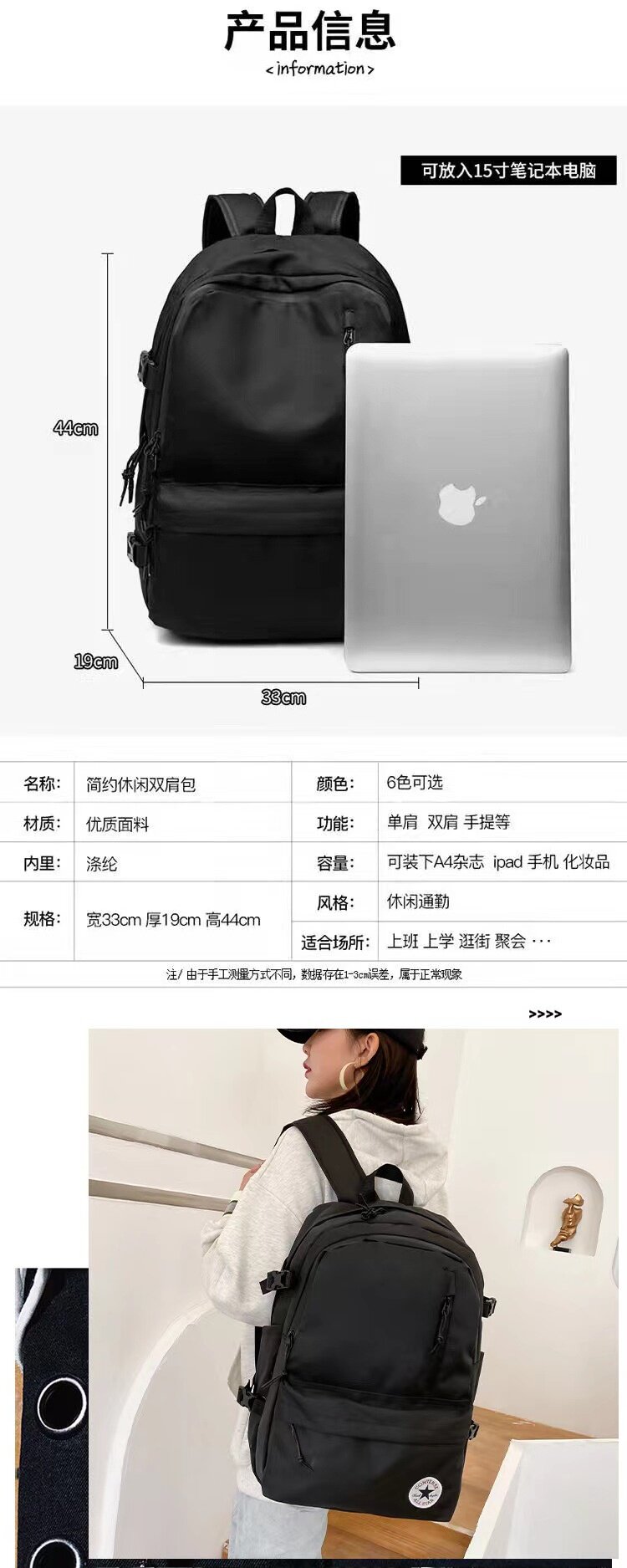 Converse Waterproof Canvas Backpack for Men and Women Casual and Versatile Student Travel Backpack School Bag Moisture Cushion Strap Campus