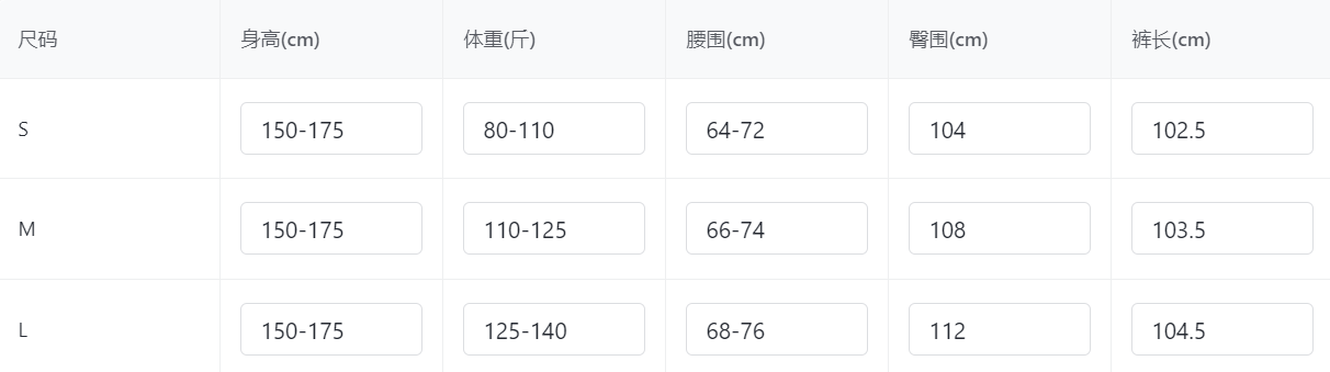 China (cm) 160-165/84-86 165-170 / 88-90 167-172 / 92-96 168-173 / 98-102 170-176 / 106-110