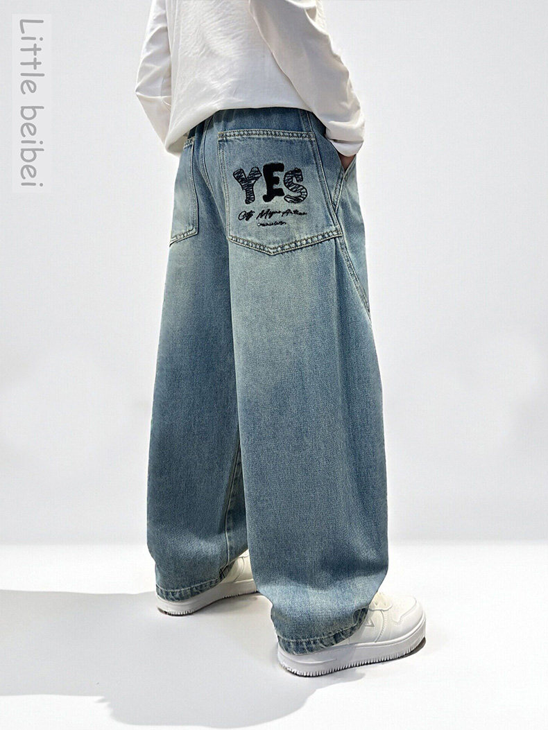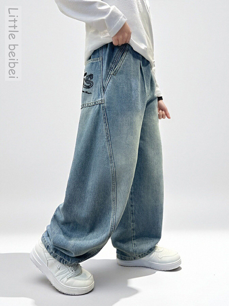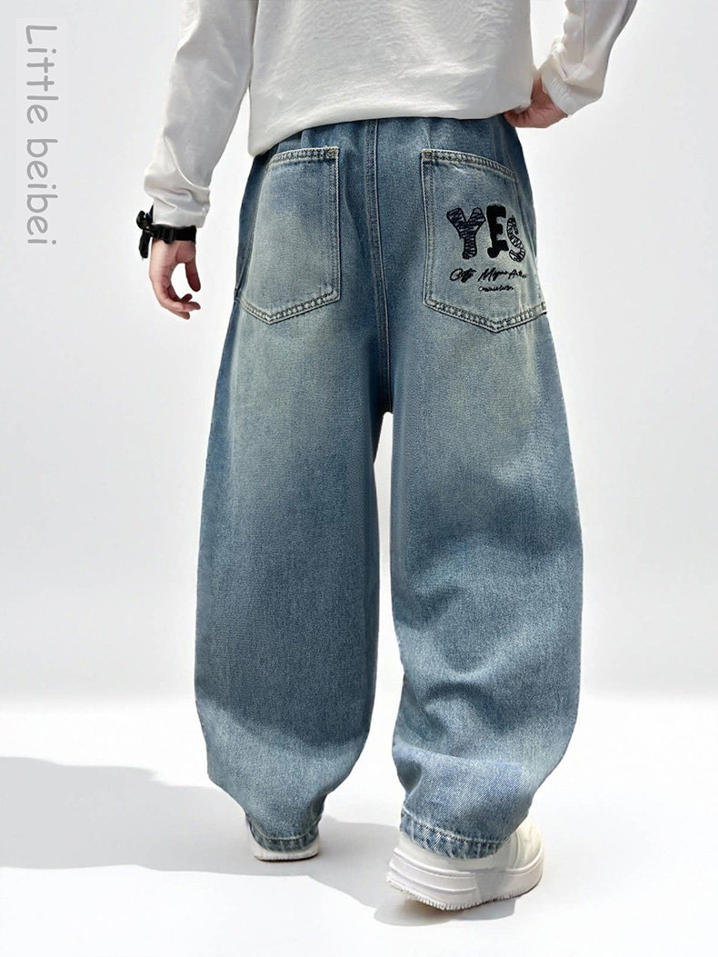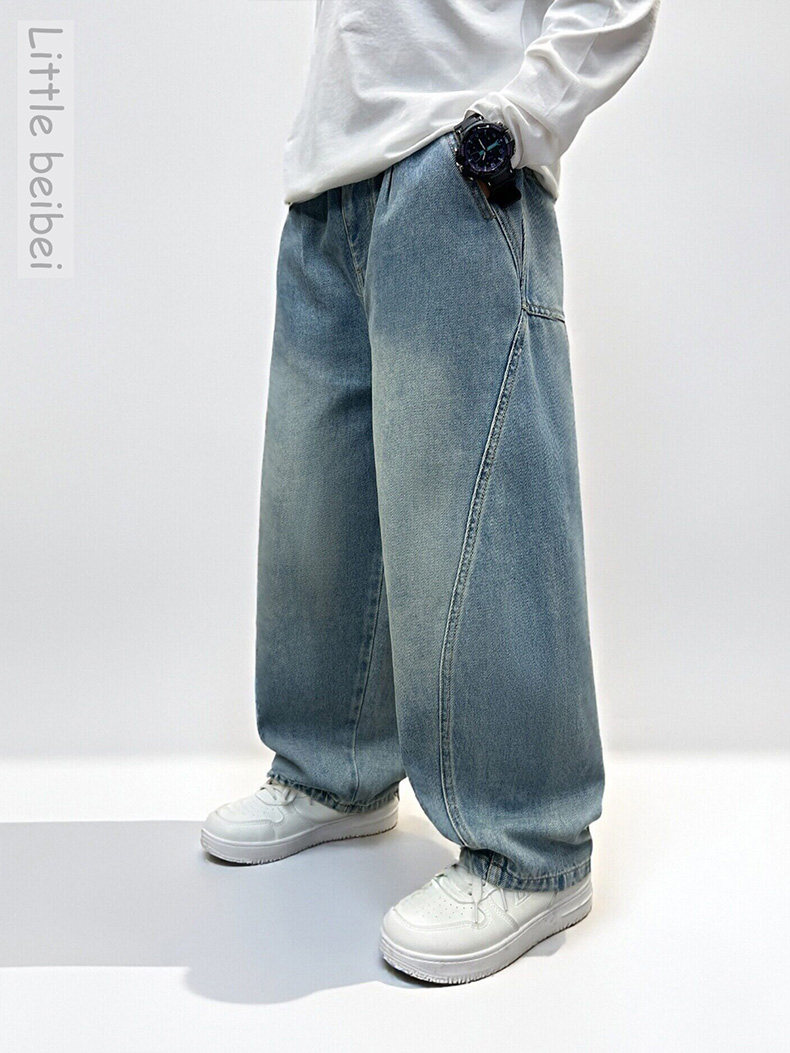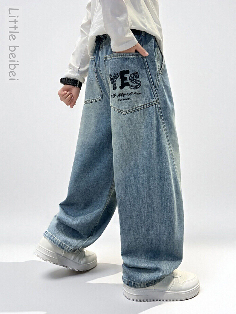 Boys' straight pants spring and autumn 2026 new cool and handsome children's loose jeans medium and large children's spring casual trousers