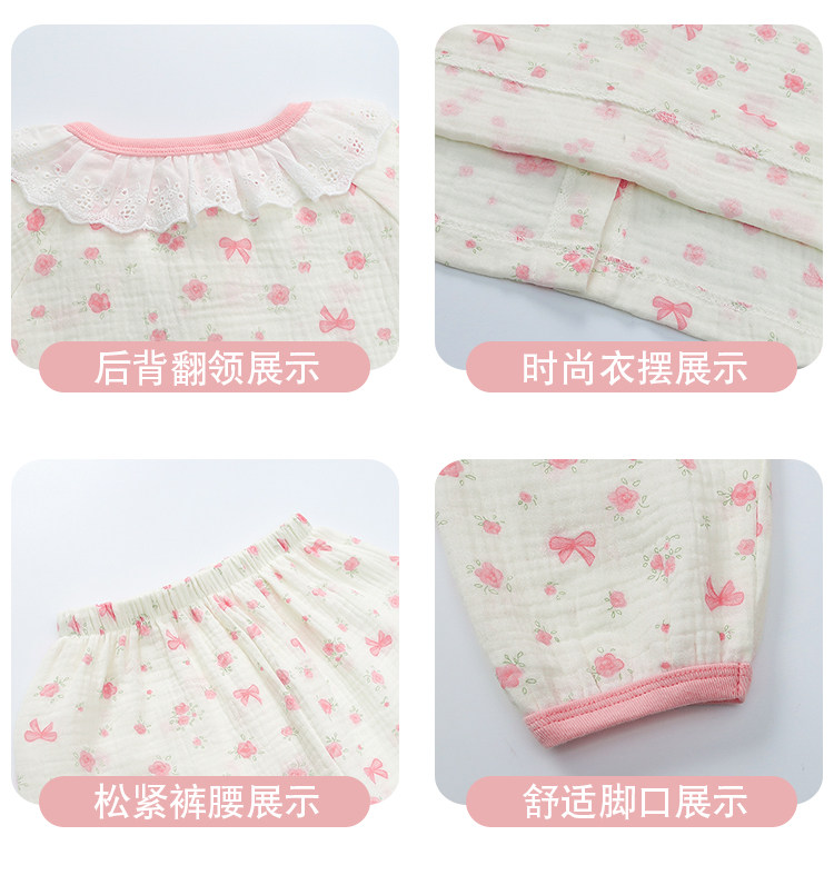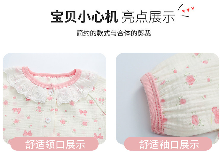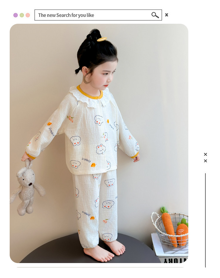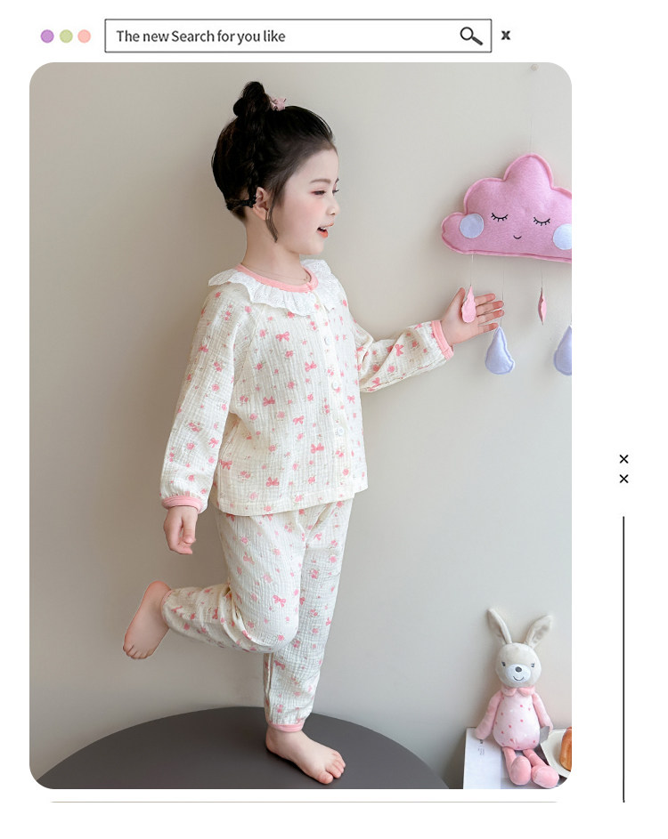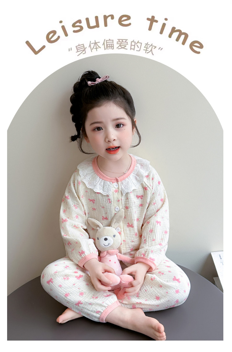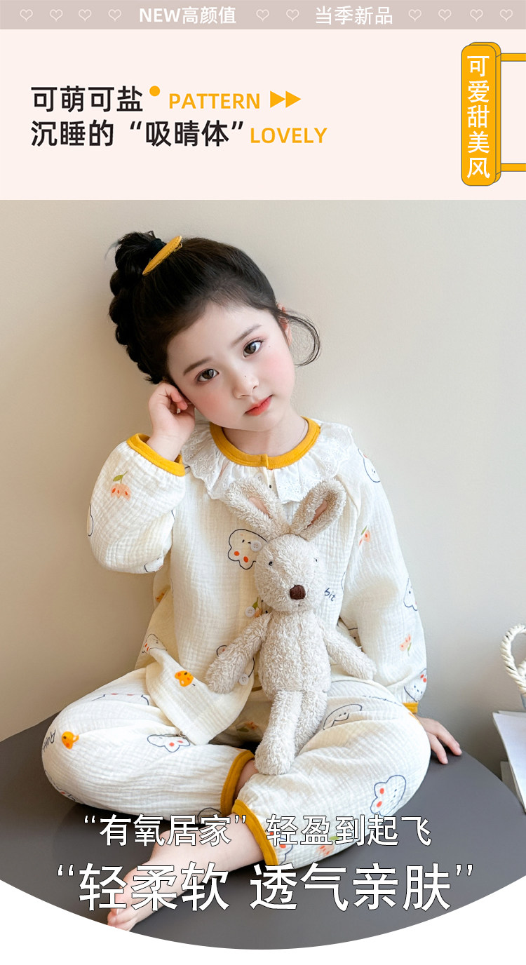 Girls' Gauze Pajamas, Spring & Fall Long-Sleeved Air-Conditioned Clothes, Kidsren's Pure Cotton Home Clothes, Cute Cardigan Suits for Girls and Babies