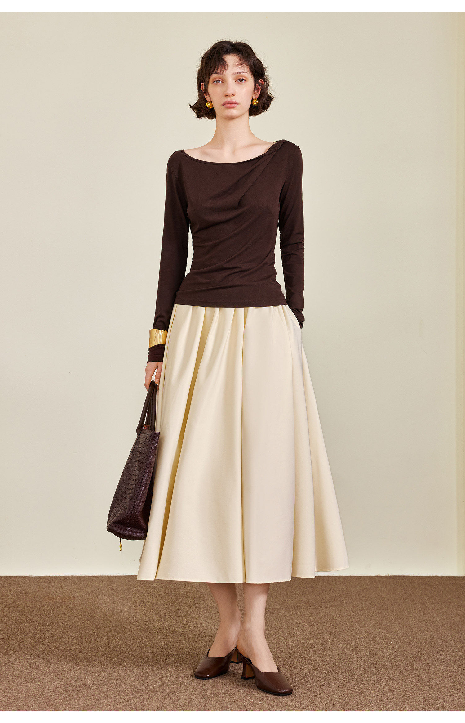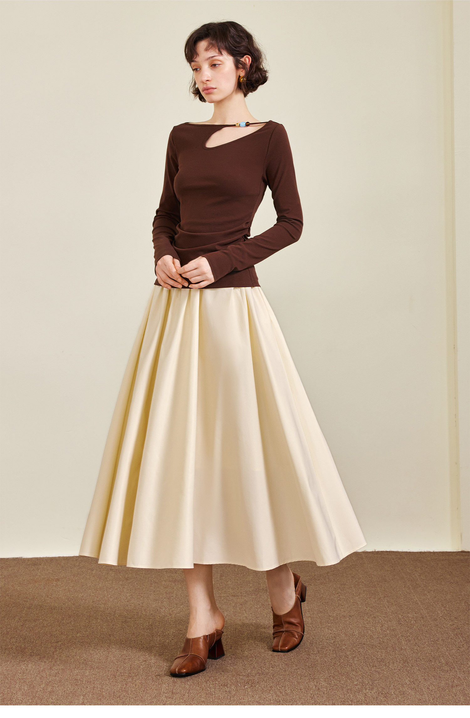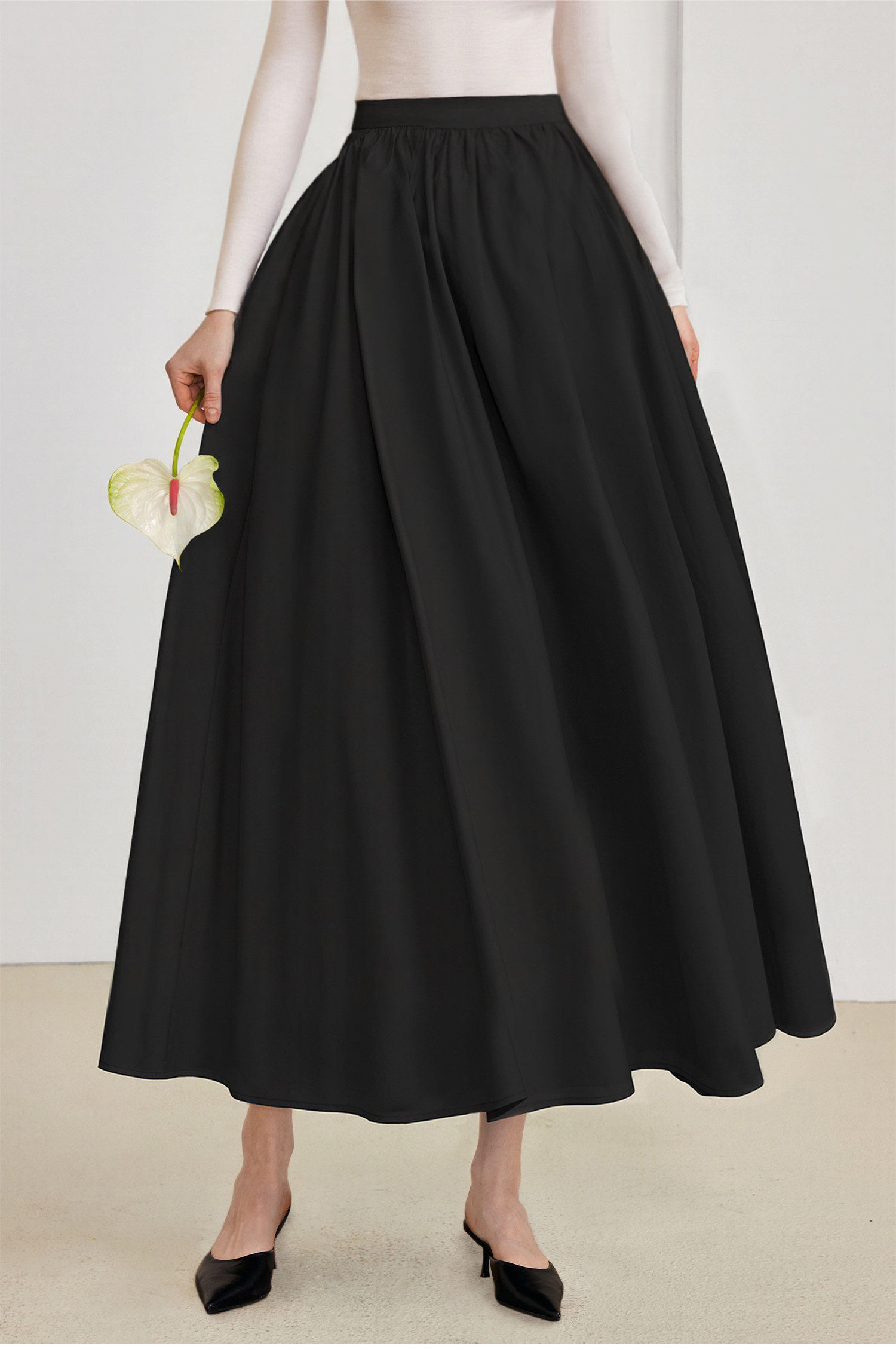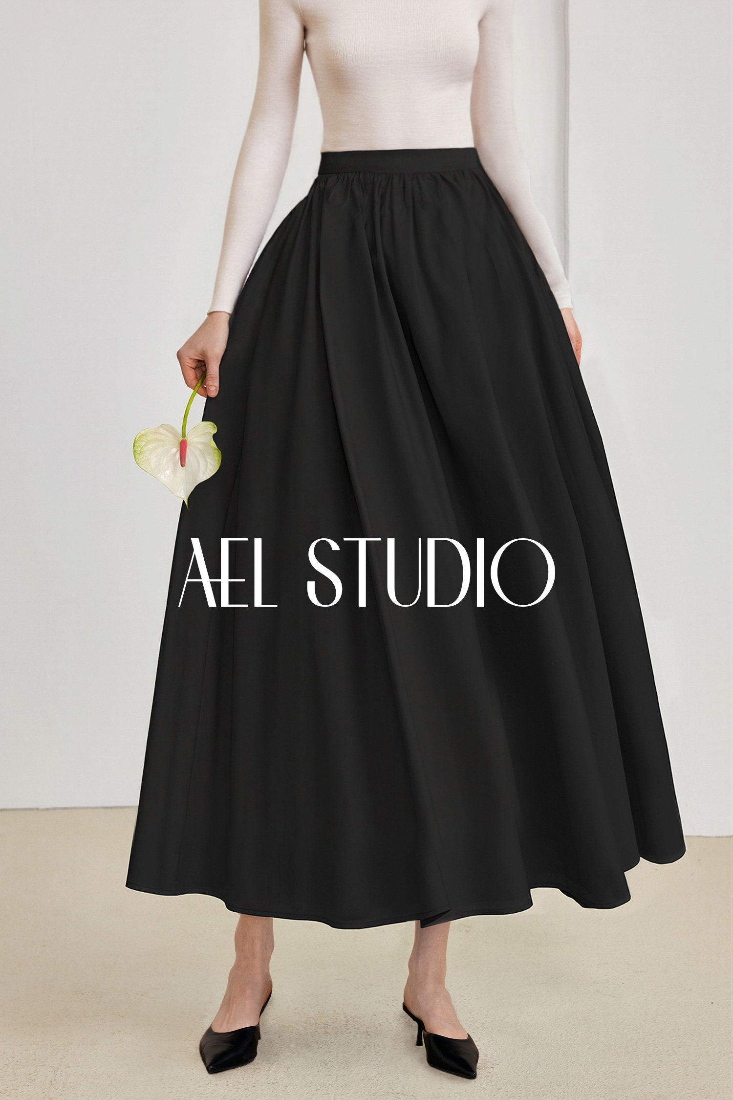 AEL original skirt Hepburn style big skirt umbrella skirt 2026 spring and summer new style with long-sleeved T-shirt