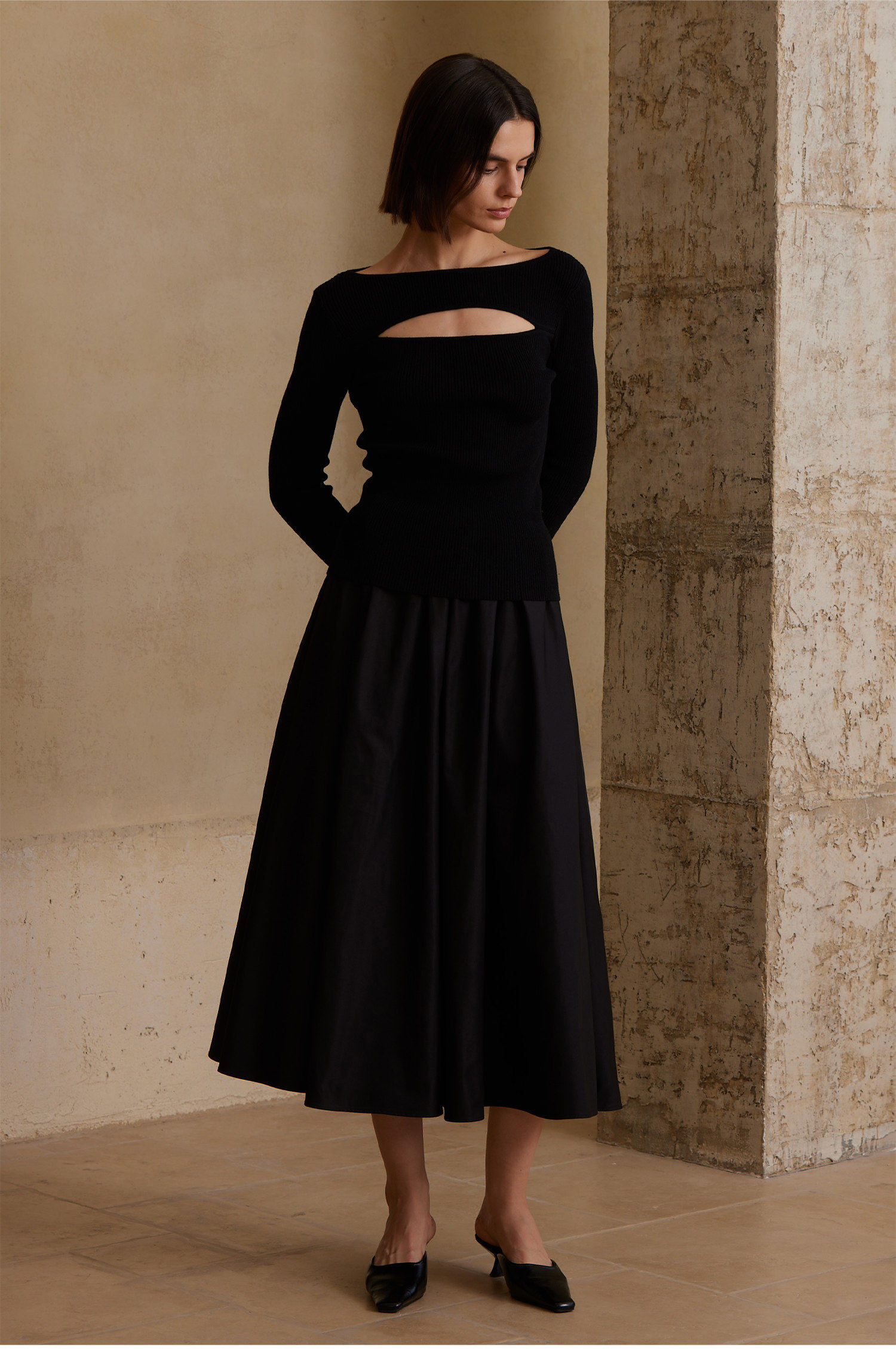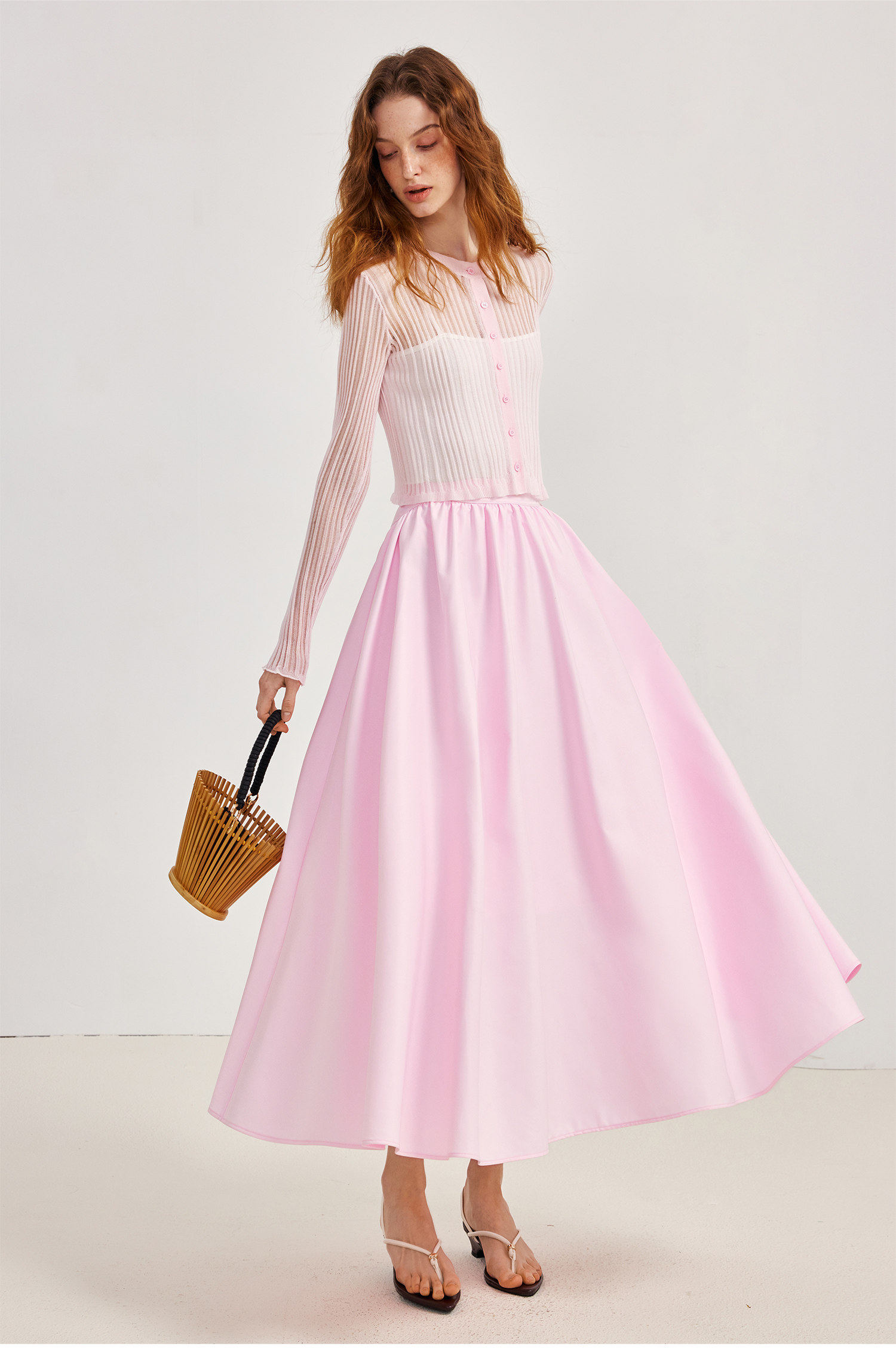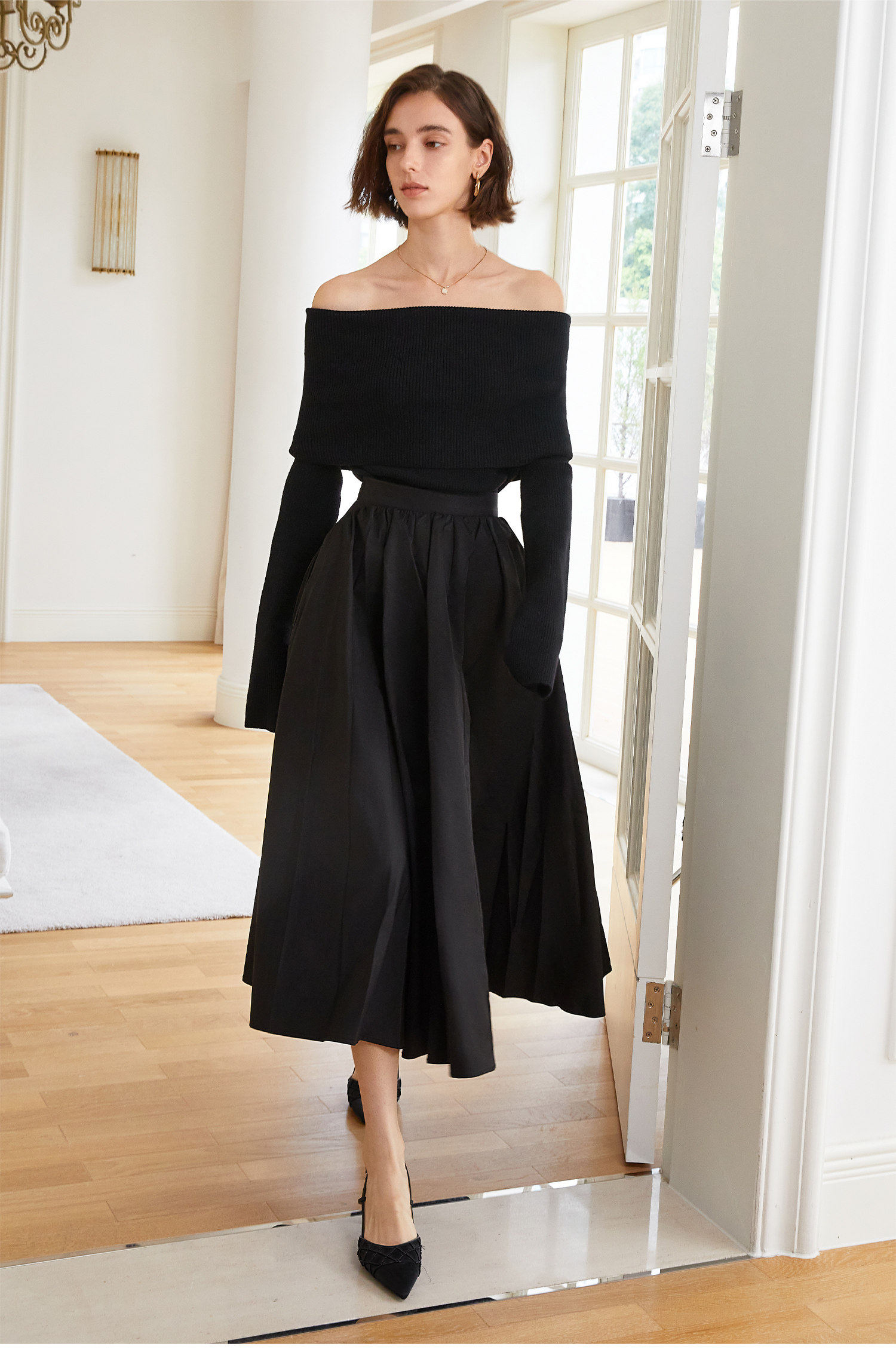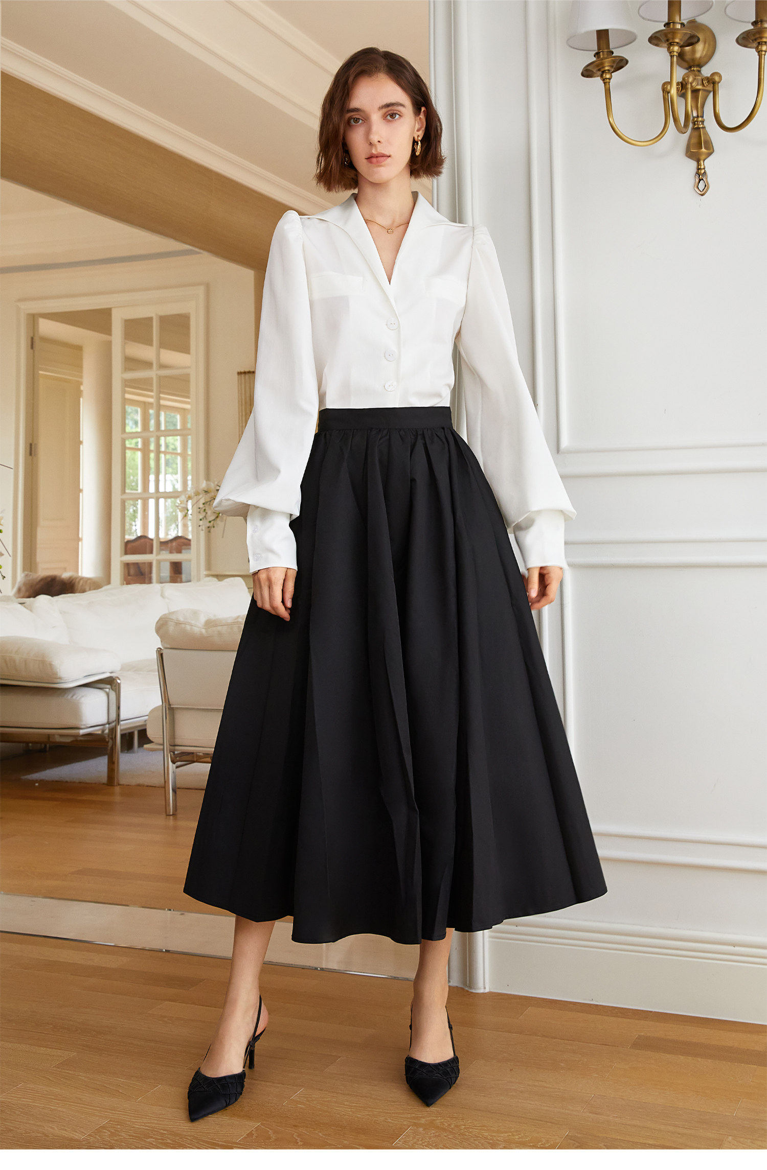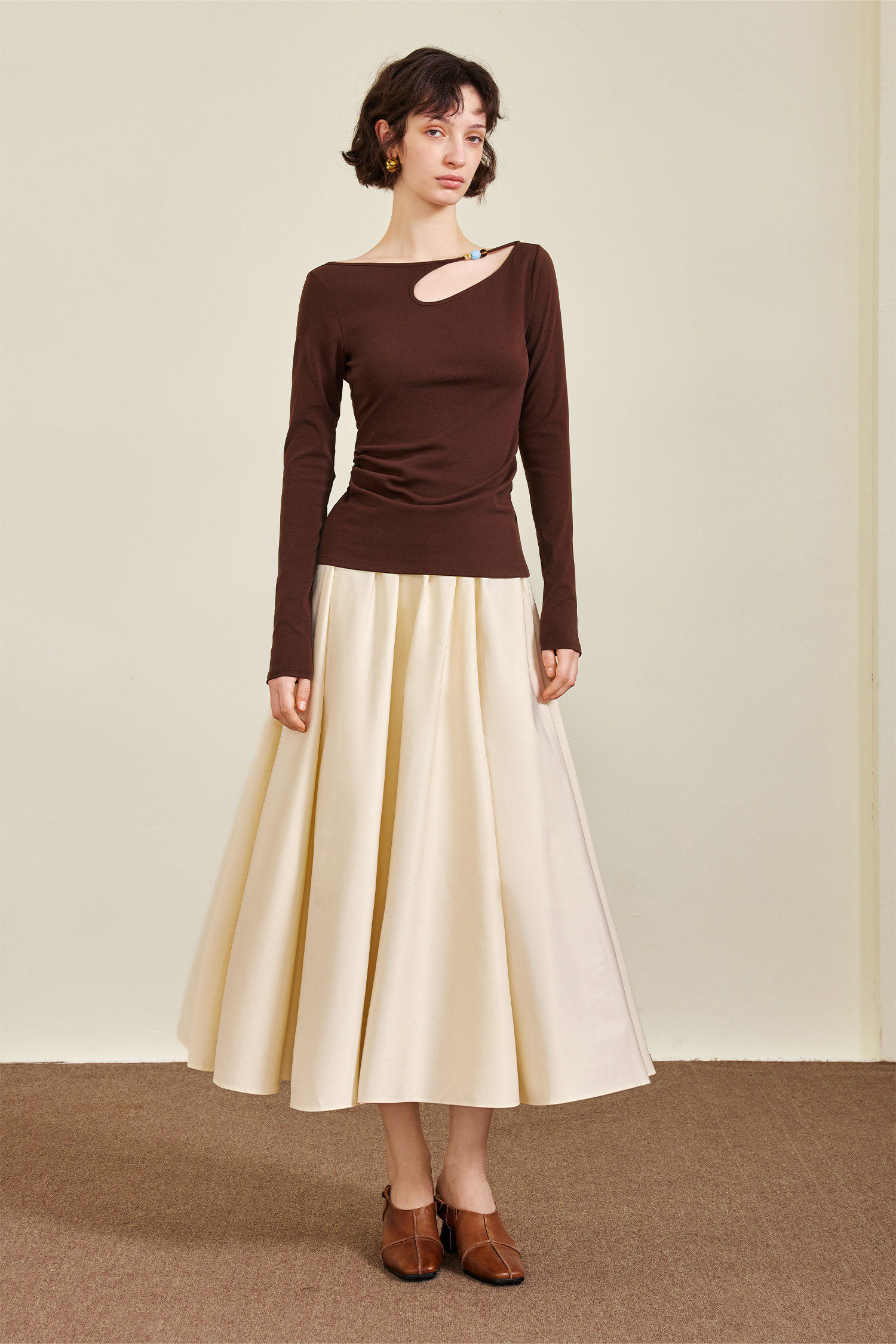 AEL original skirt Hepburn style big skirt umbrella skirt 2026 spring and summer new style with long-sleeved T-shirt