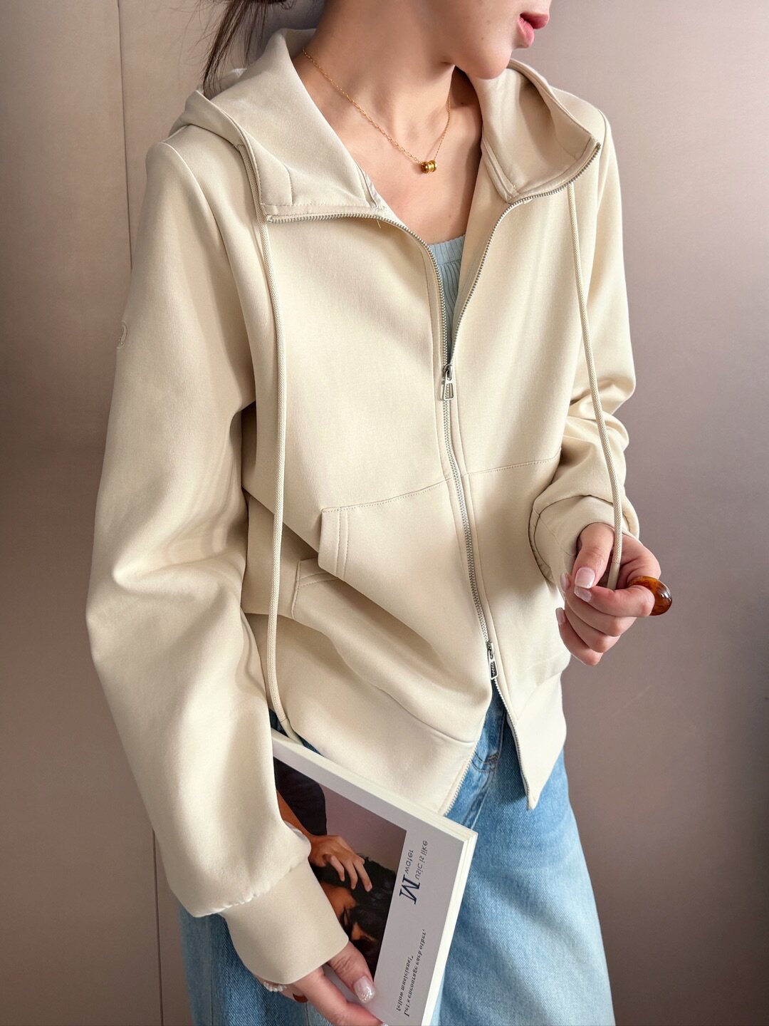 2026 Spring New Style Casual Lazy Style Hooded Zipper Cardigan Women's European Style Loose and Versatile Short Sweatshirt Jacket