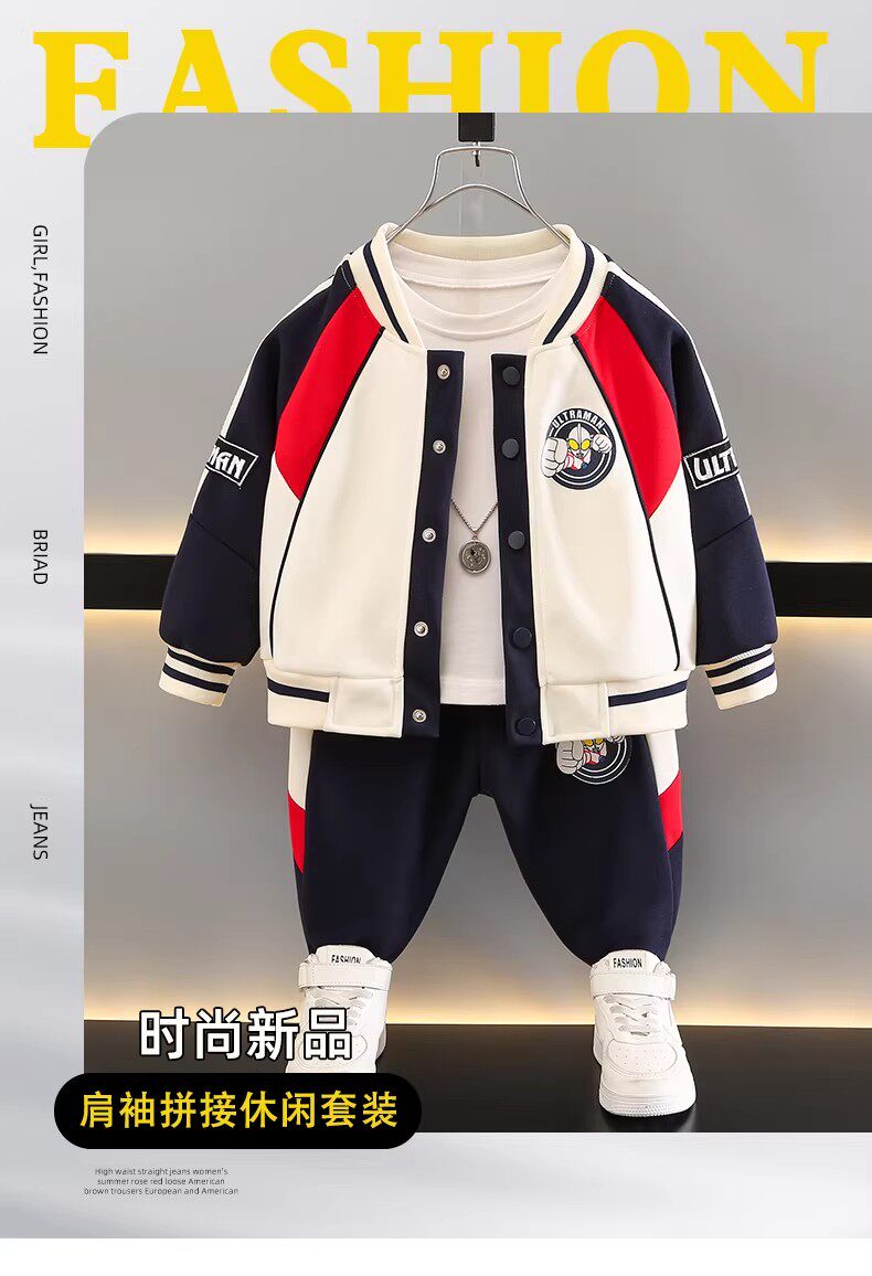 French-Style 2026 Children's Ultraman Clothing Boys' Baseball Outfit Set Stylish Kids' Spring and Autumn Trendy Cool Sports Jacket