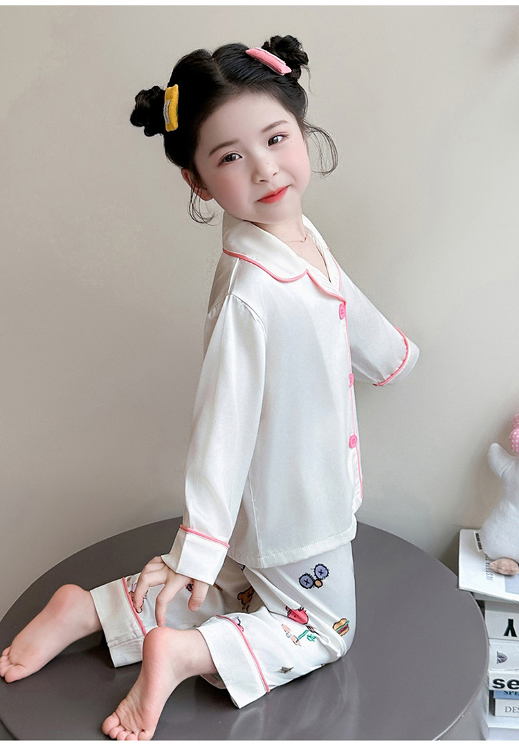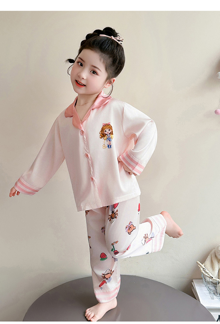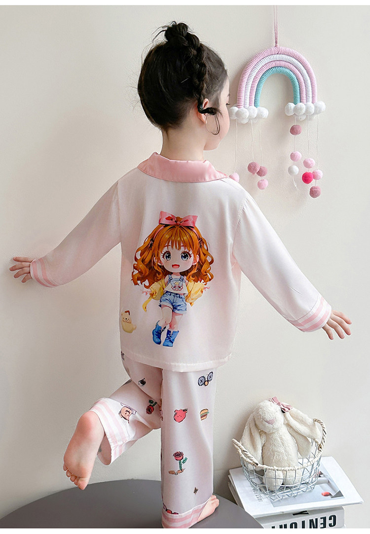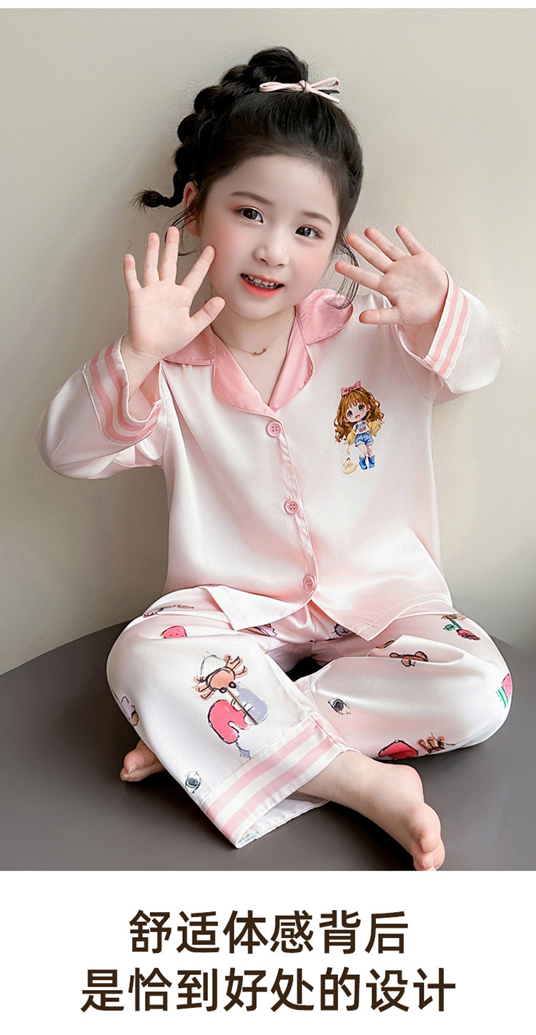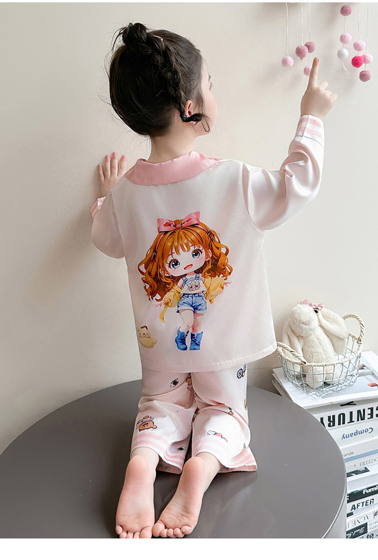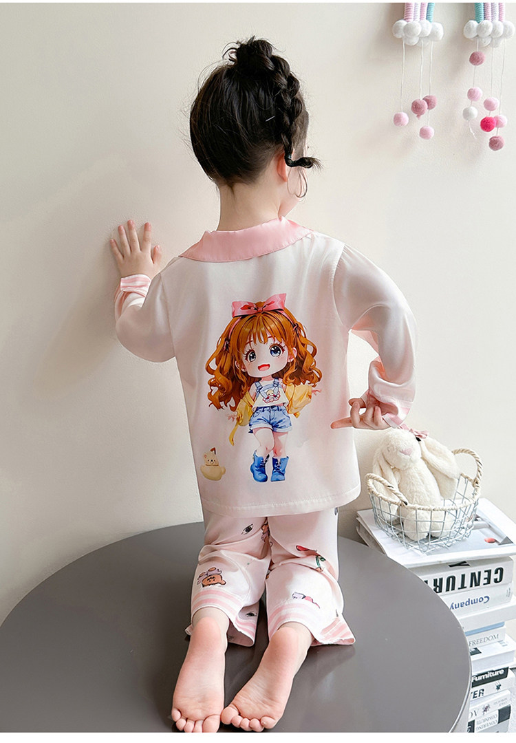 Girls' Sweet and Cute Style Children's Ice Silk Spring and Autumn Home Wear Set, Summer Comfortable Two-Piece Set, Baby Air-Conditioning Clothing