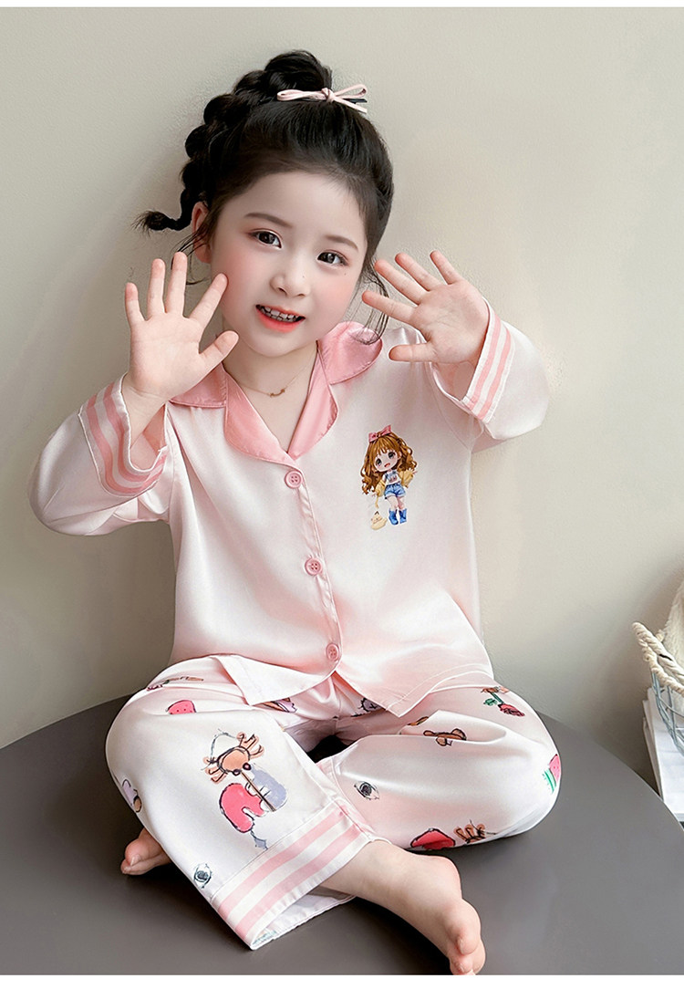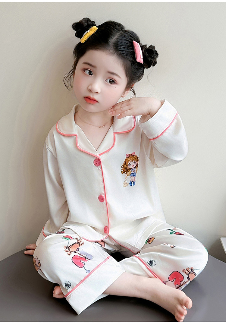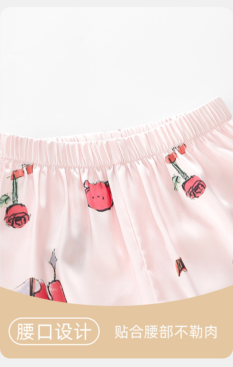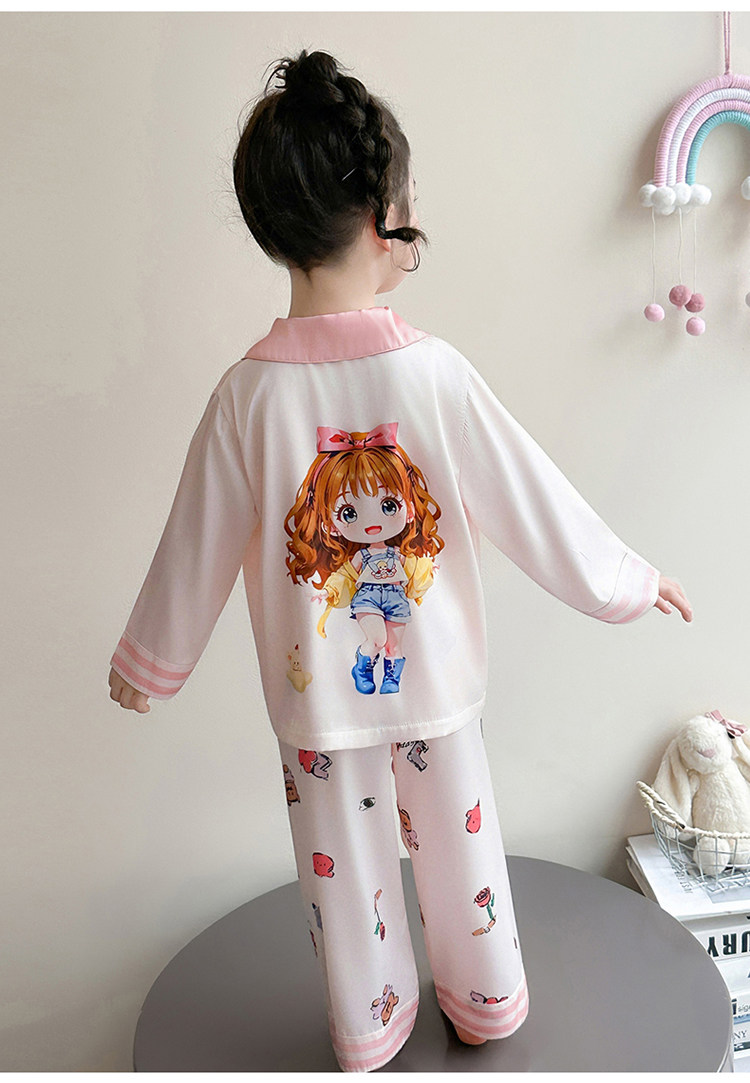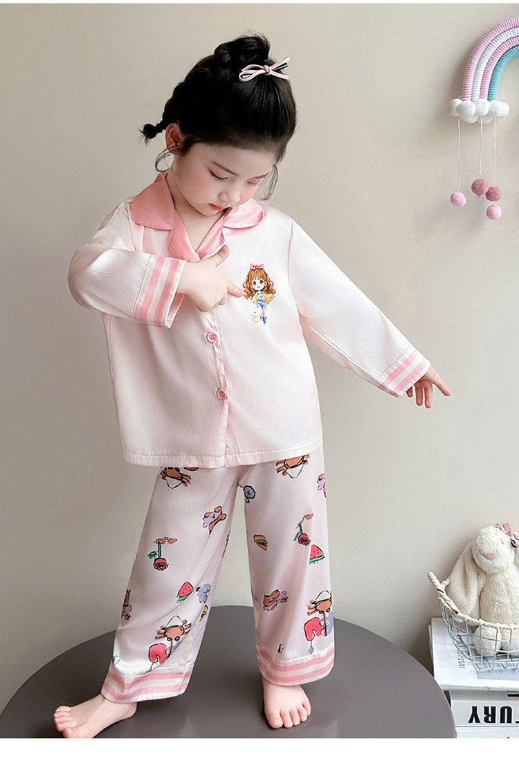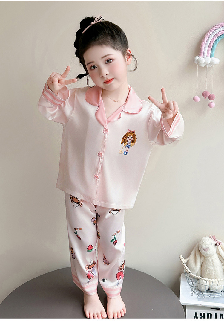 Girls' Sweet and Cute Style Children's Ice Silk Spring and Autumn Home Wear Set, Summer Comfortable Two-Piece Set, Baby Air-Conditioning Clothing