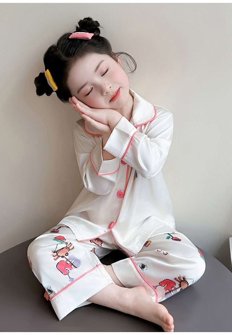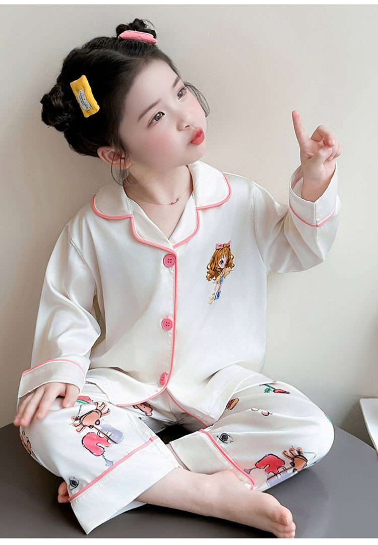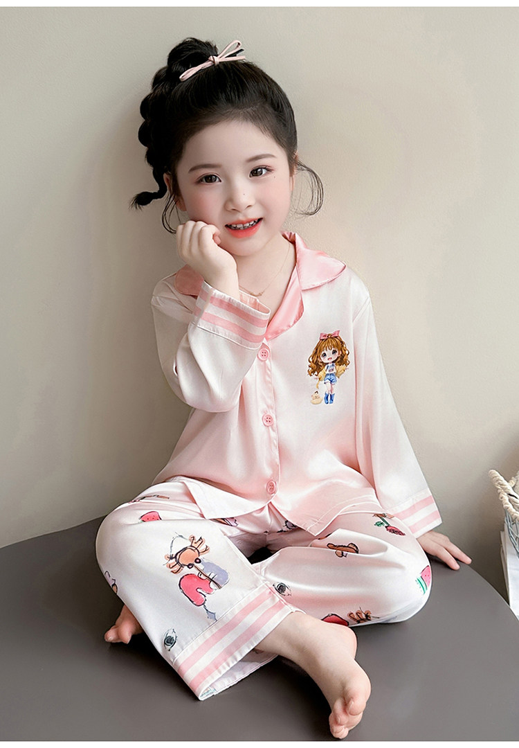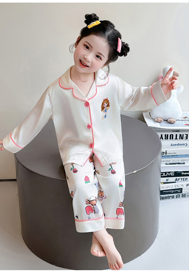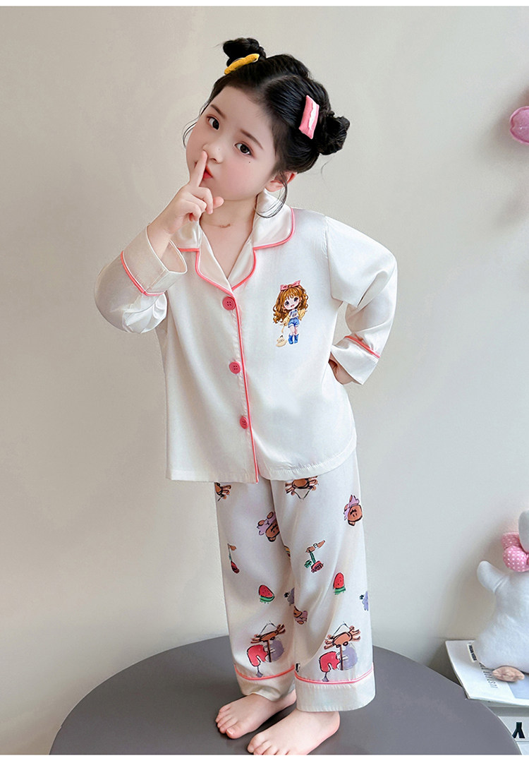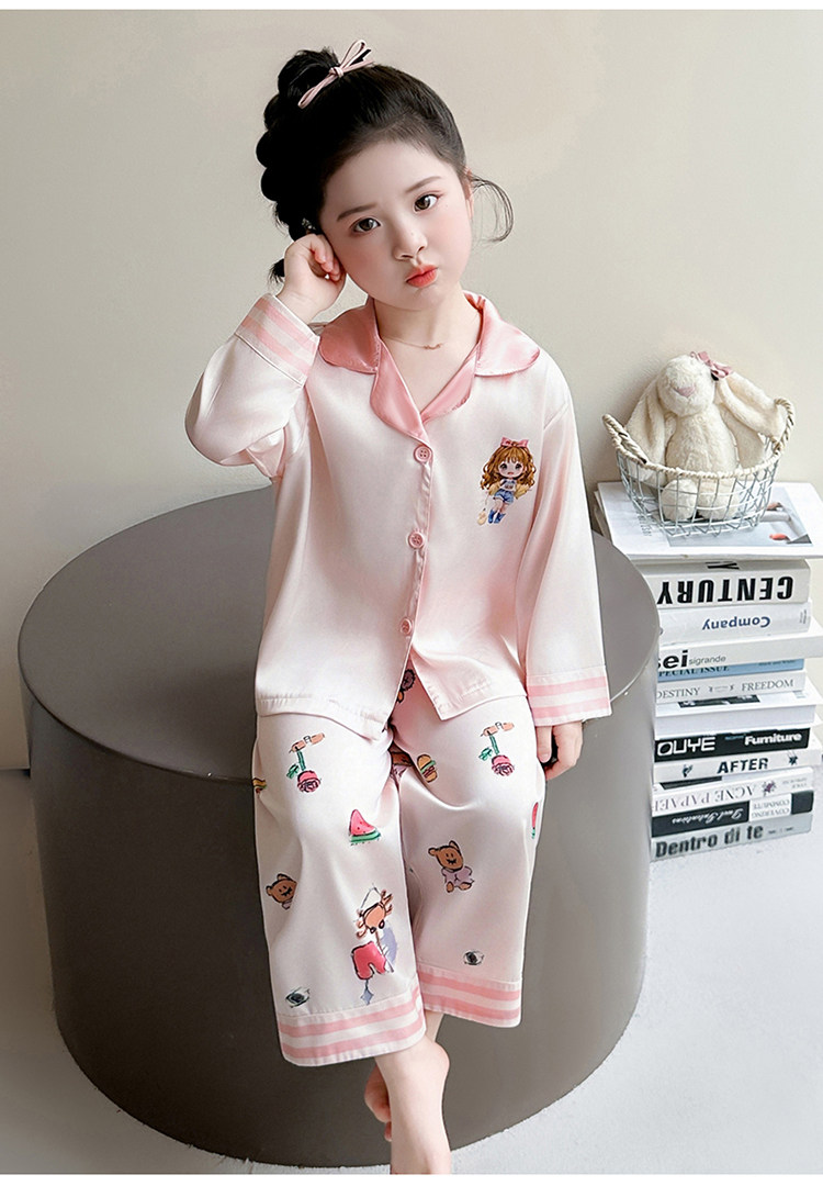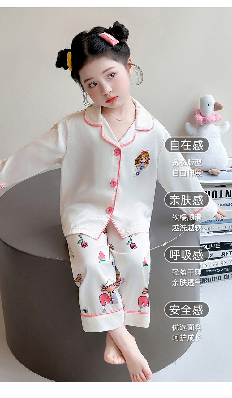 Girls' Sweet and Cute Style Children's Ice Silk Spring and Autumn Home Wear Set, Summer Comfortable Two-Piece Set, Baby Air-Conditioning Clothing