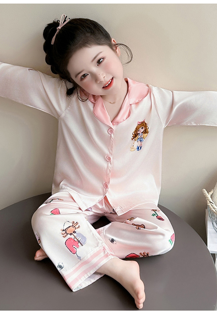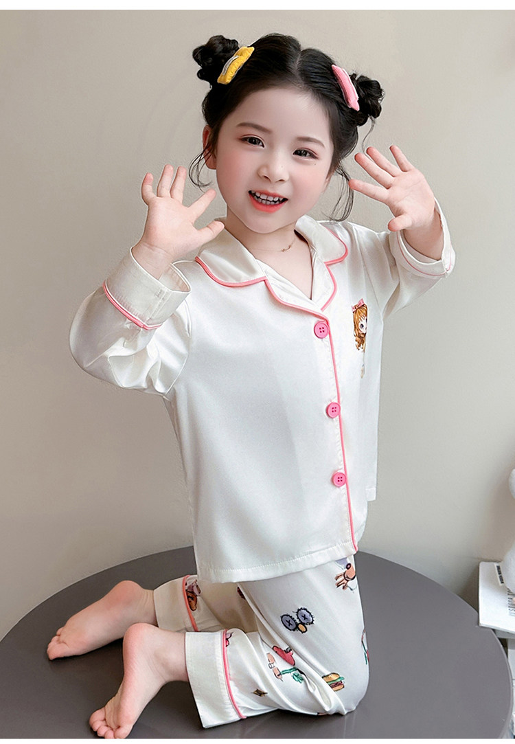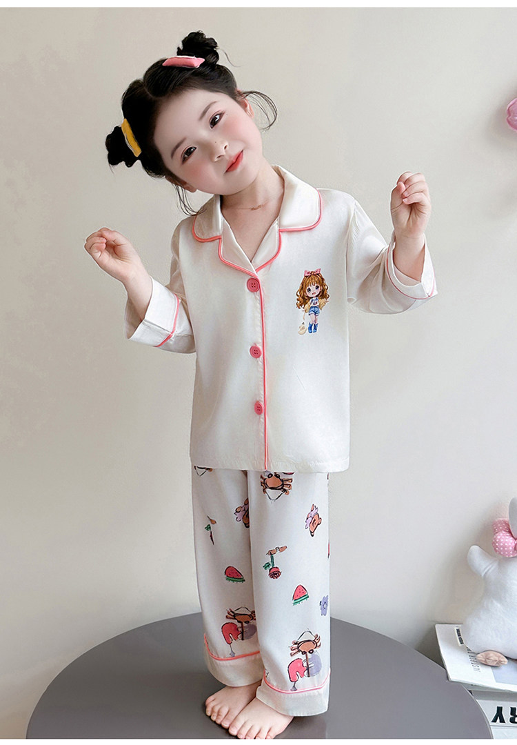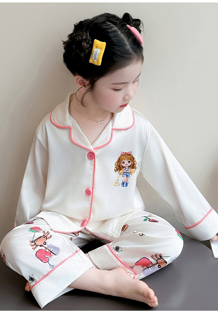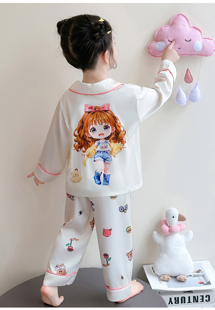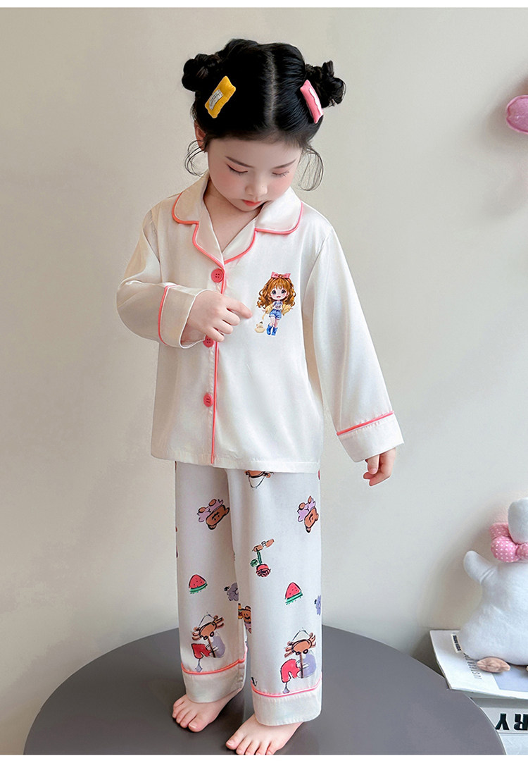 Girls' Sweet and Cute Style Children's Ice Silk Spring and Autumn Home Wear Set, Summer Comfortable Two-Piece Set, Baby Air-Conditioning Clothing
