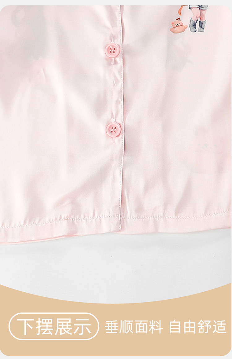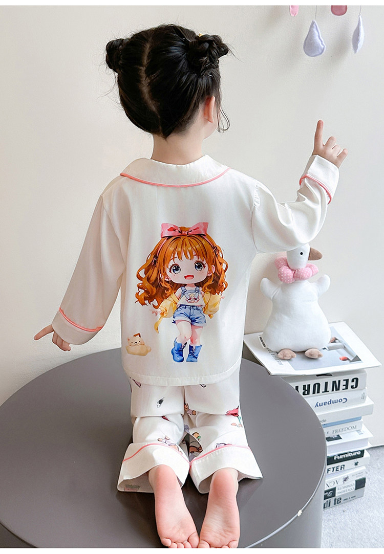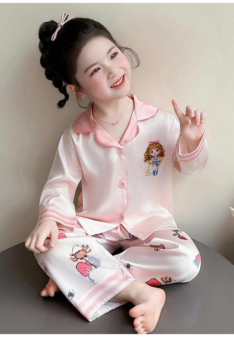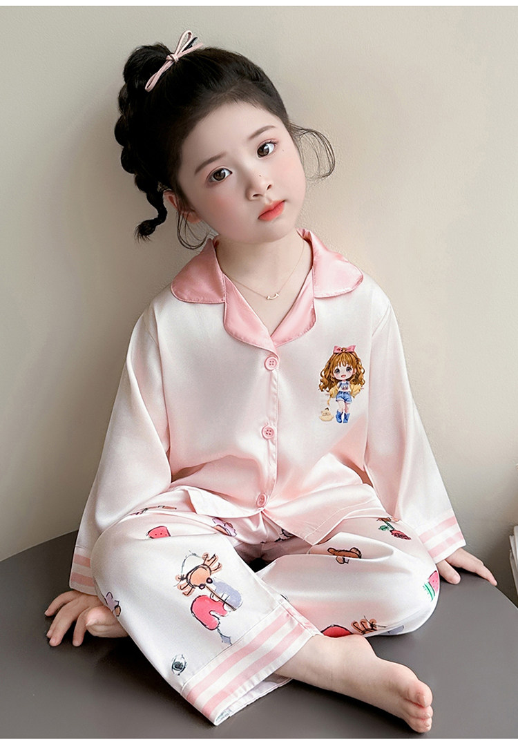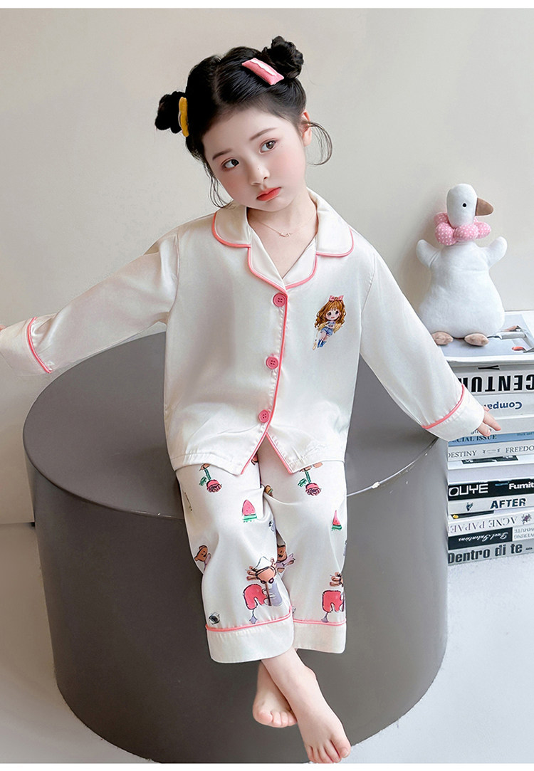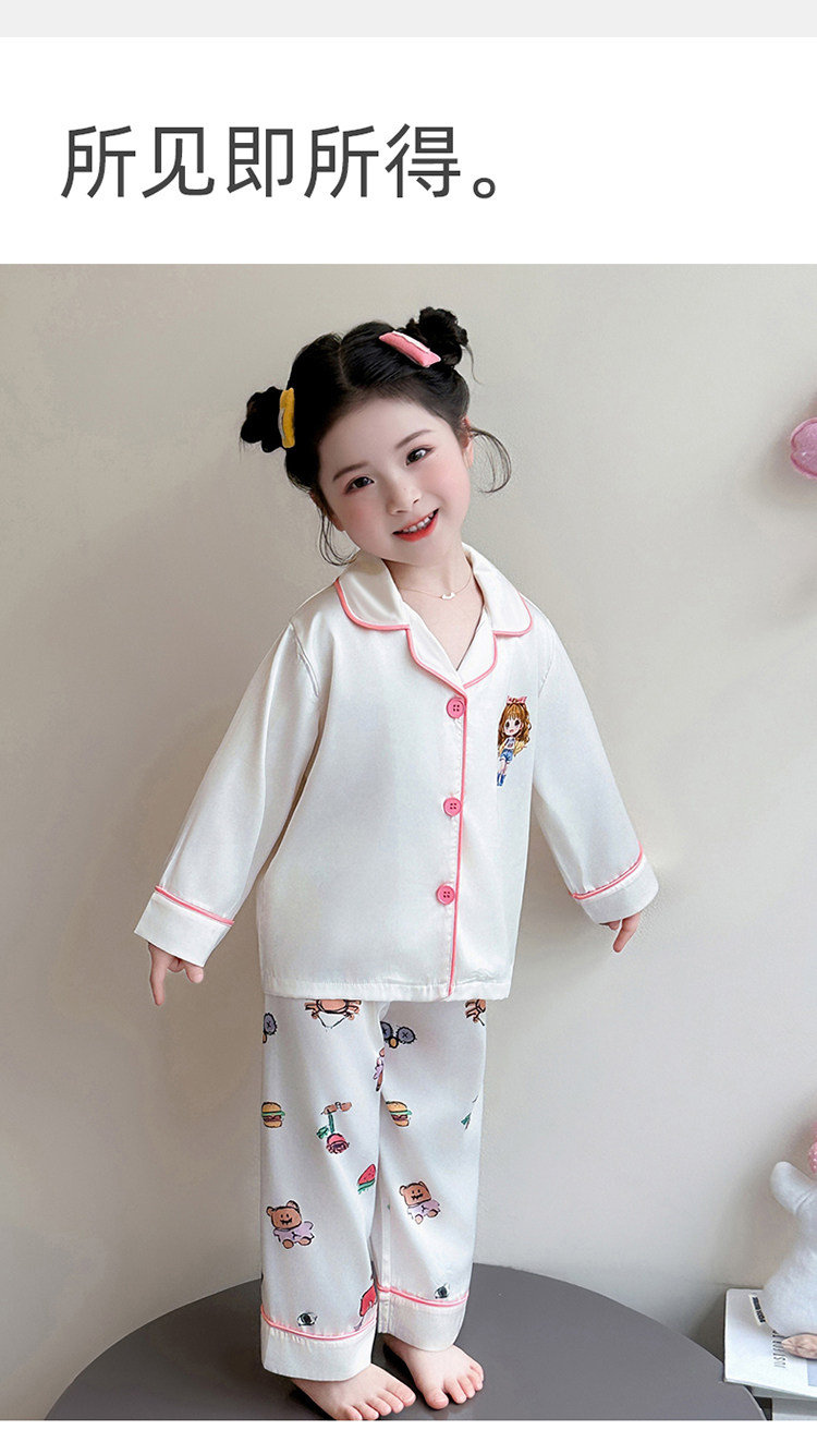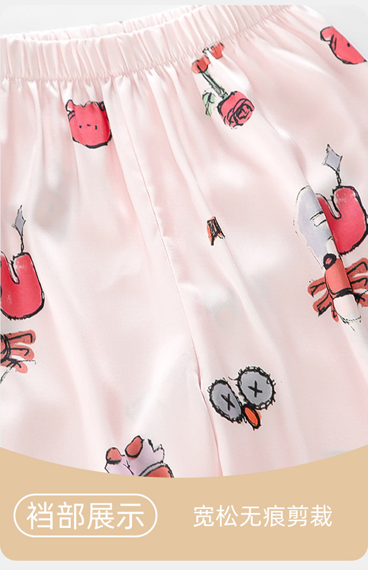 Girls' Sweet and Cute Style Children's Ice Silk Spring and Autumn Home Wear Set, Summer Comfortable Two-Piece Set, Baby Air-Conditioning Clothing