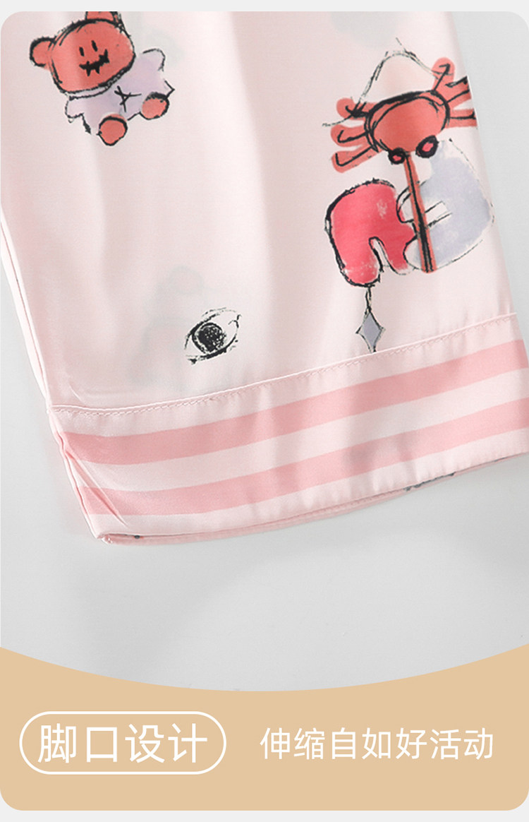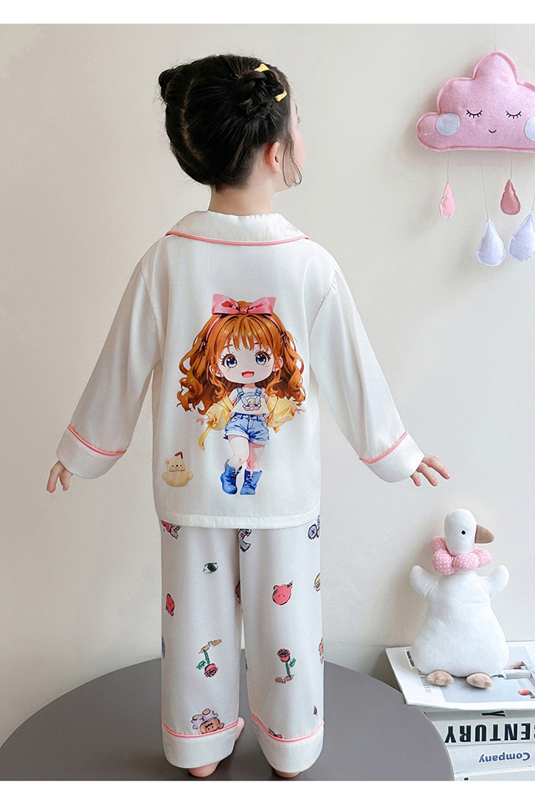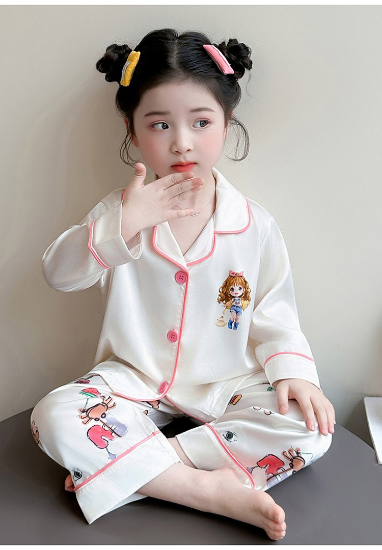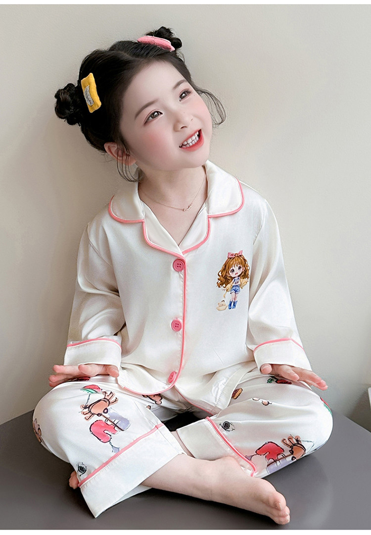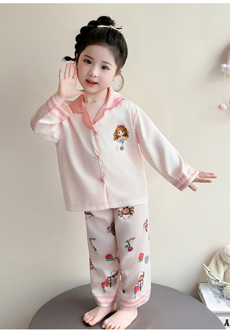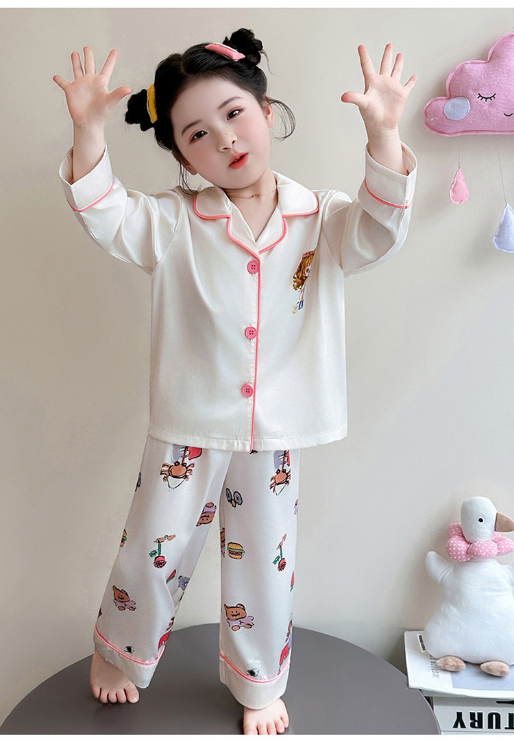 Girls' Sweet and Cute Style Children's Ice Silk Spring and Autumn Home Wear Set, Summer Comfortable Two-Piece Set, Baby Air-Conditioning Clothing