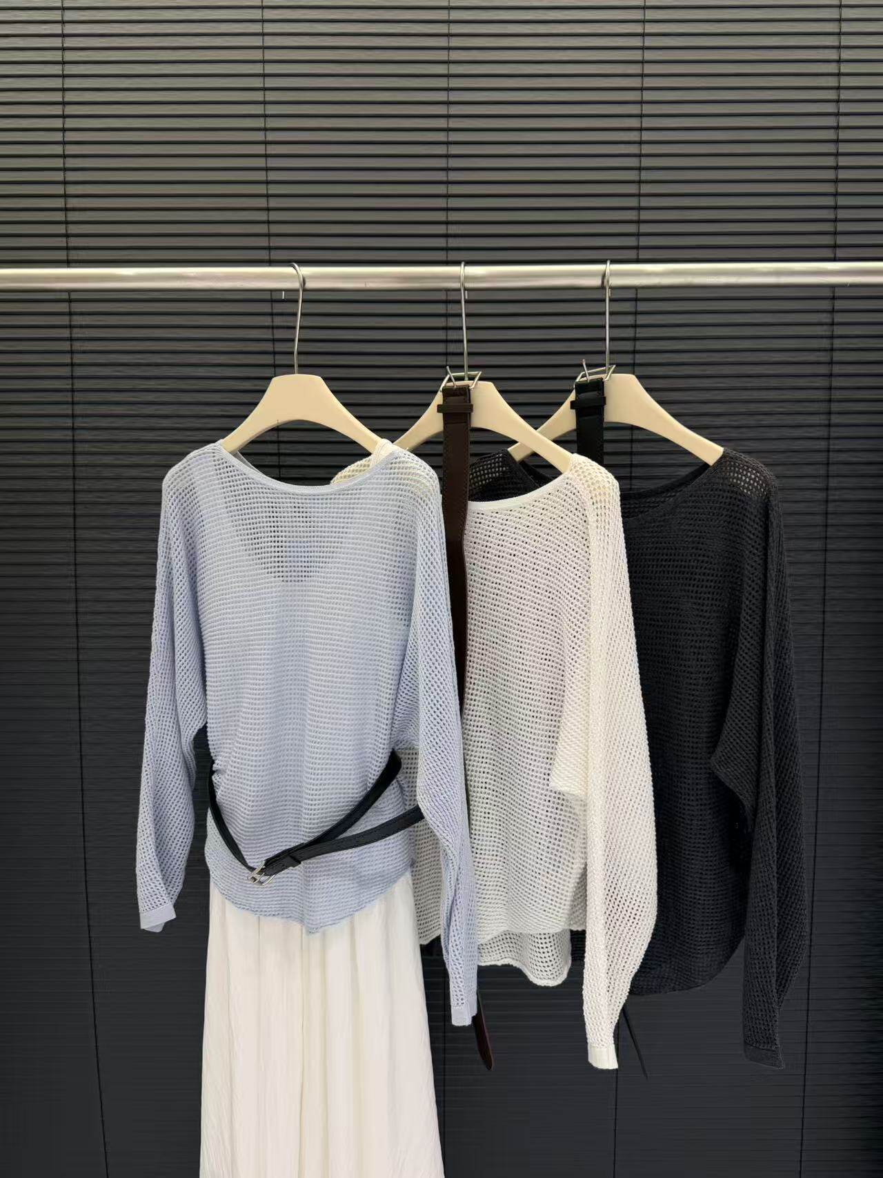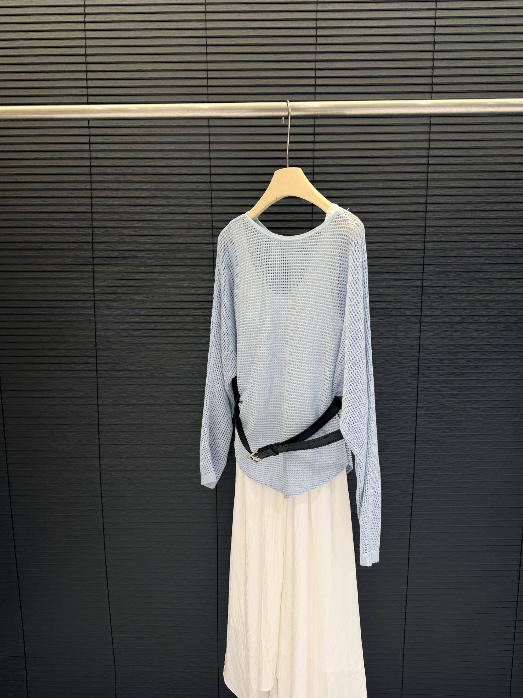 Cangmei Women's Clothing - T-Shirt Blouse with Belt and Hollow-Out Round Neck Design