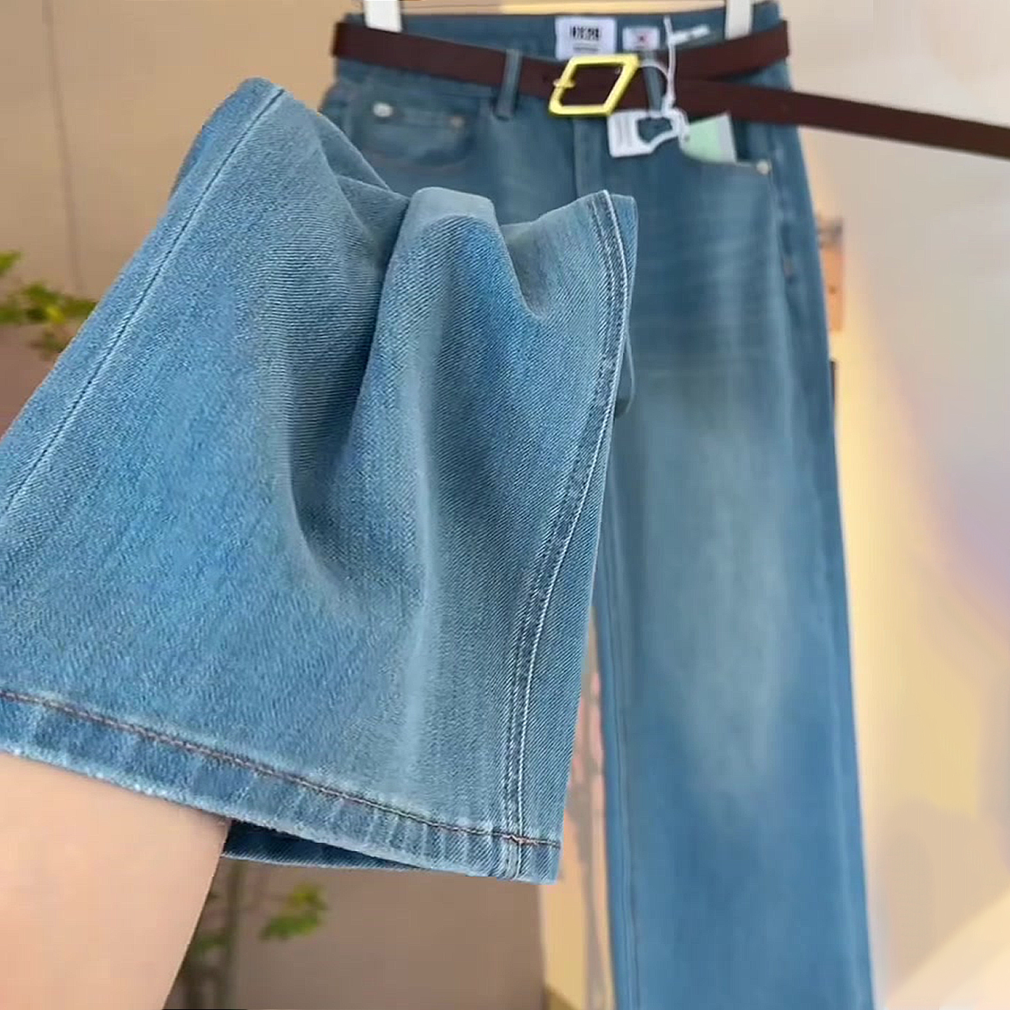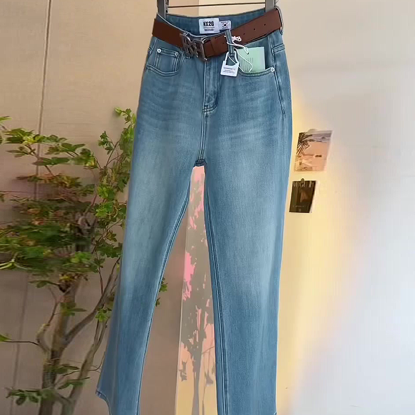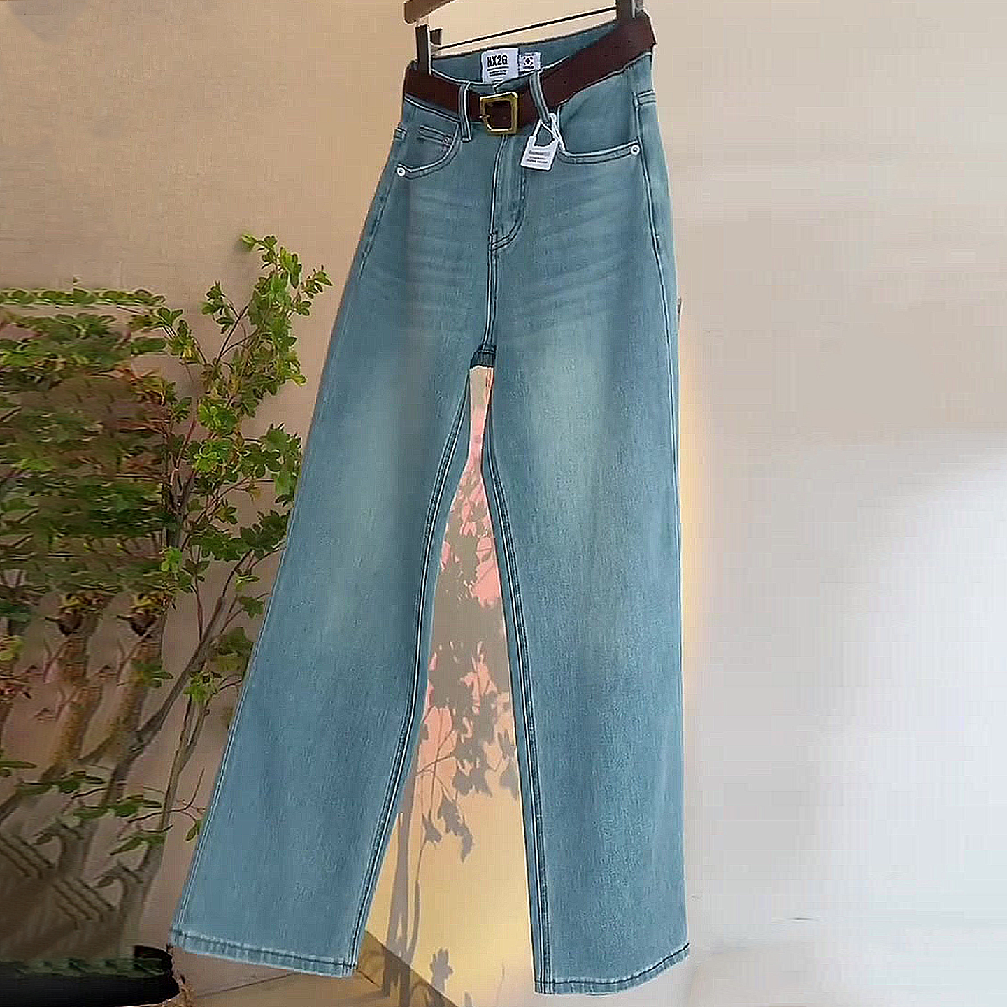 2026 Spring New Trendy Pants Light Blue Jeans Women's Simple Slimming Casual High-Waisted Loose Trousers