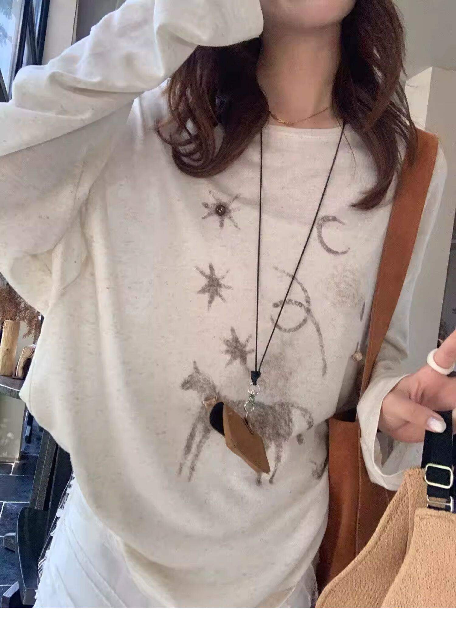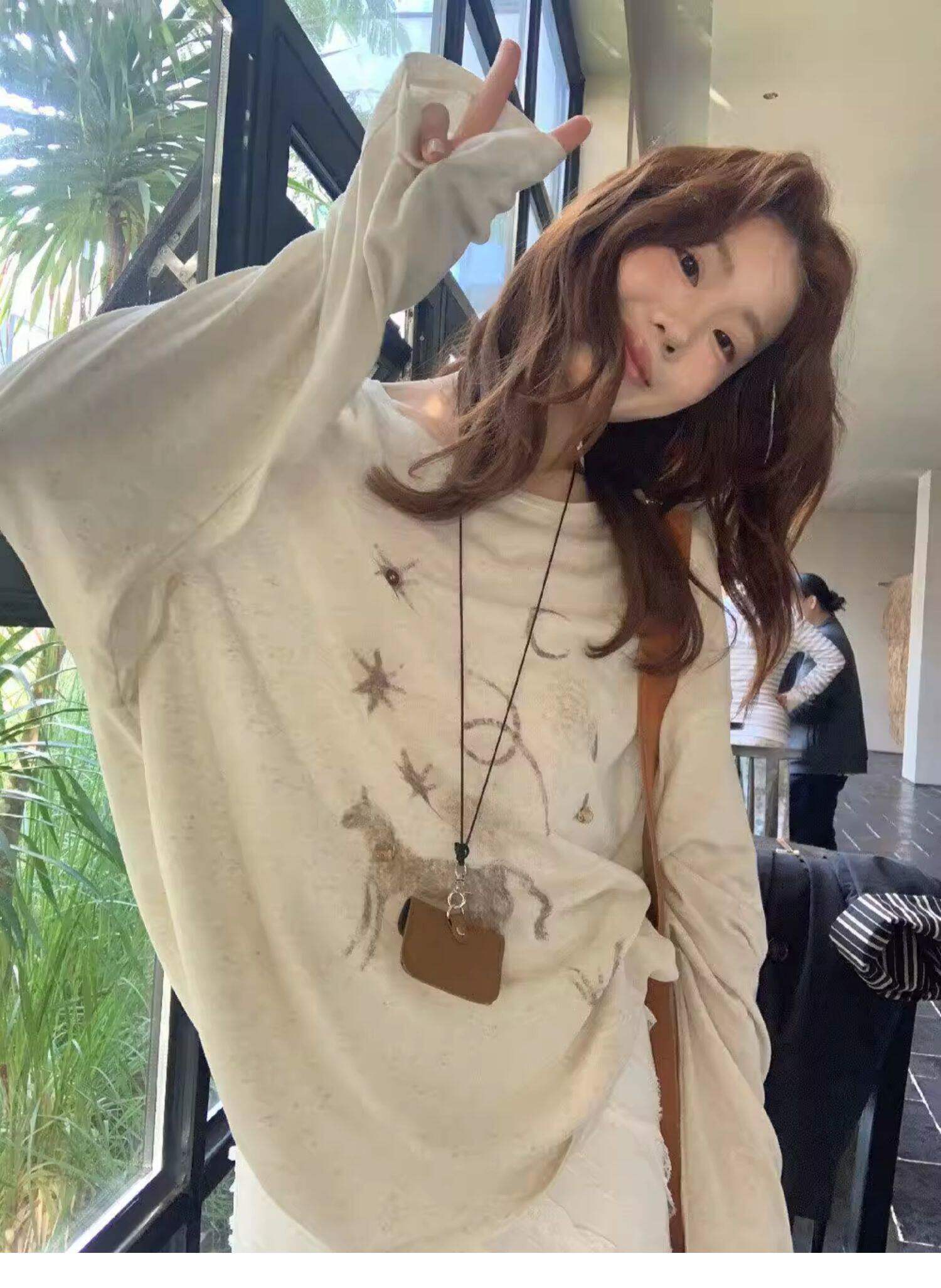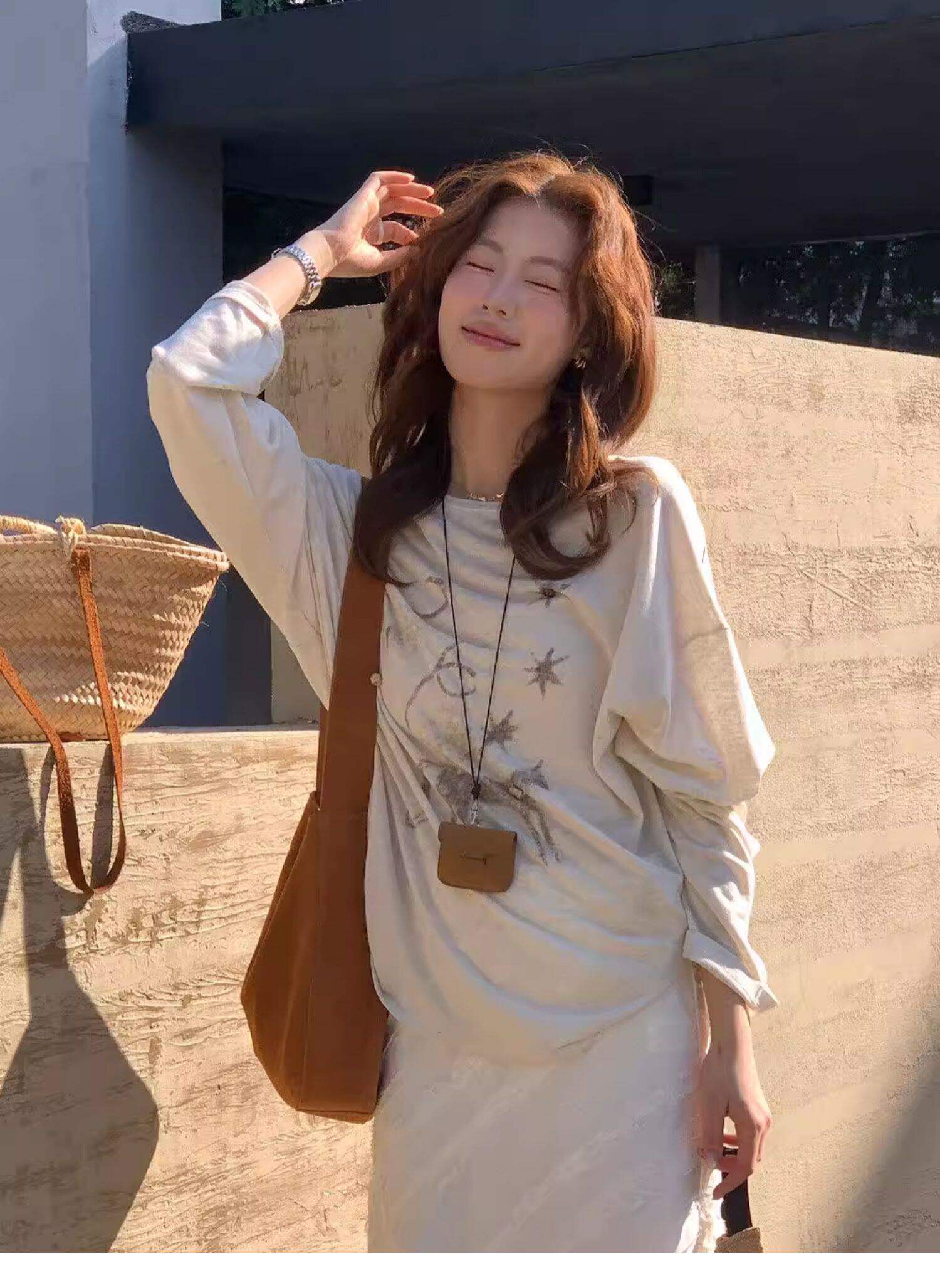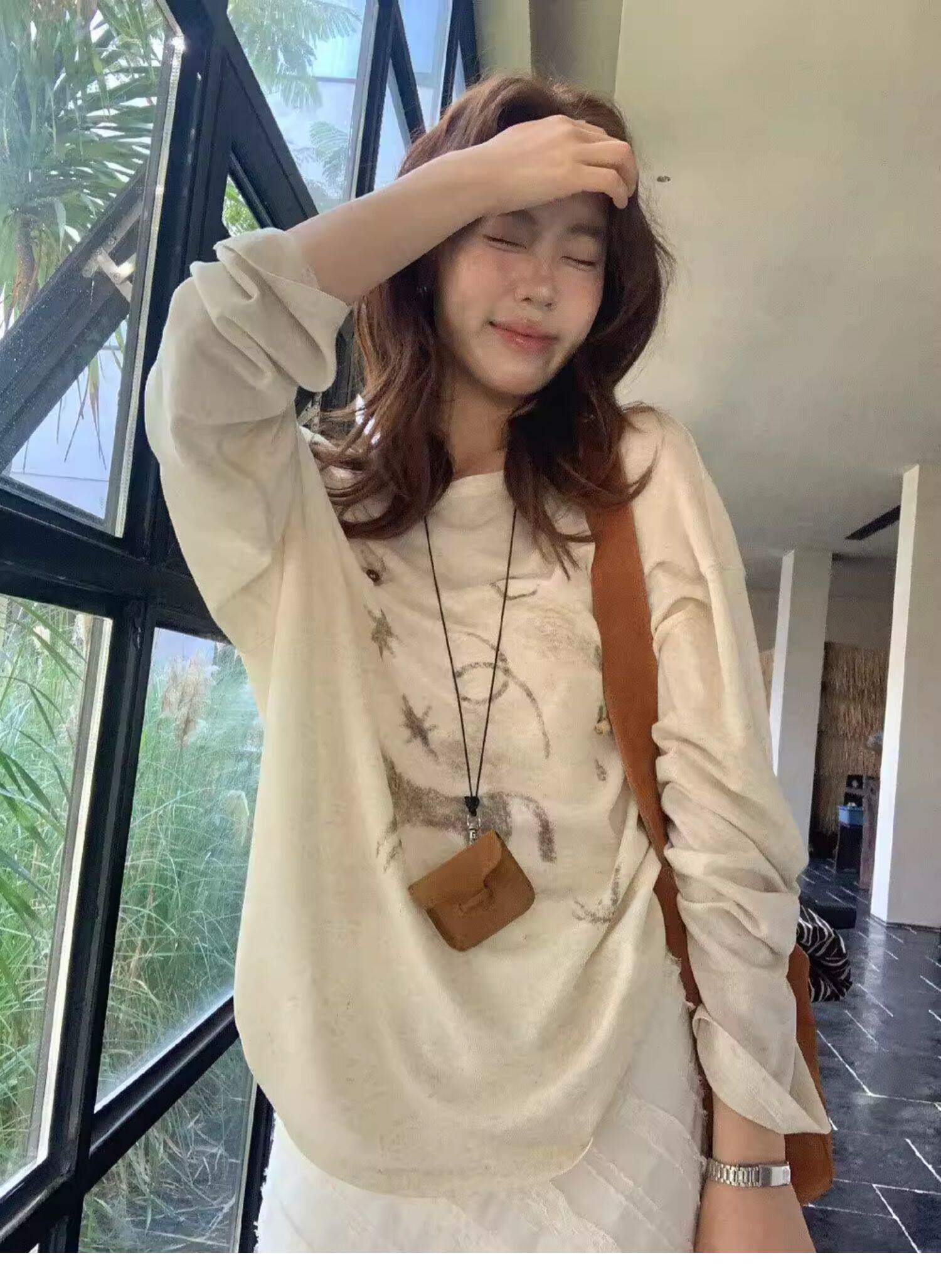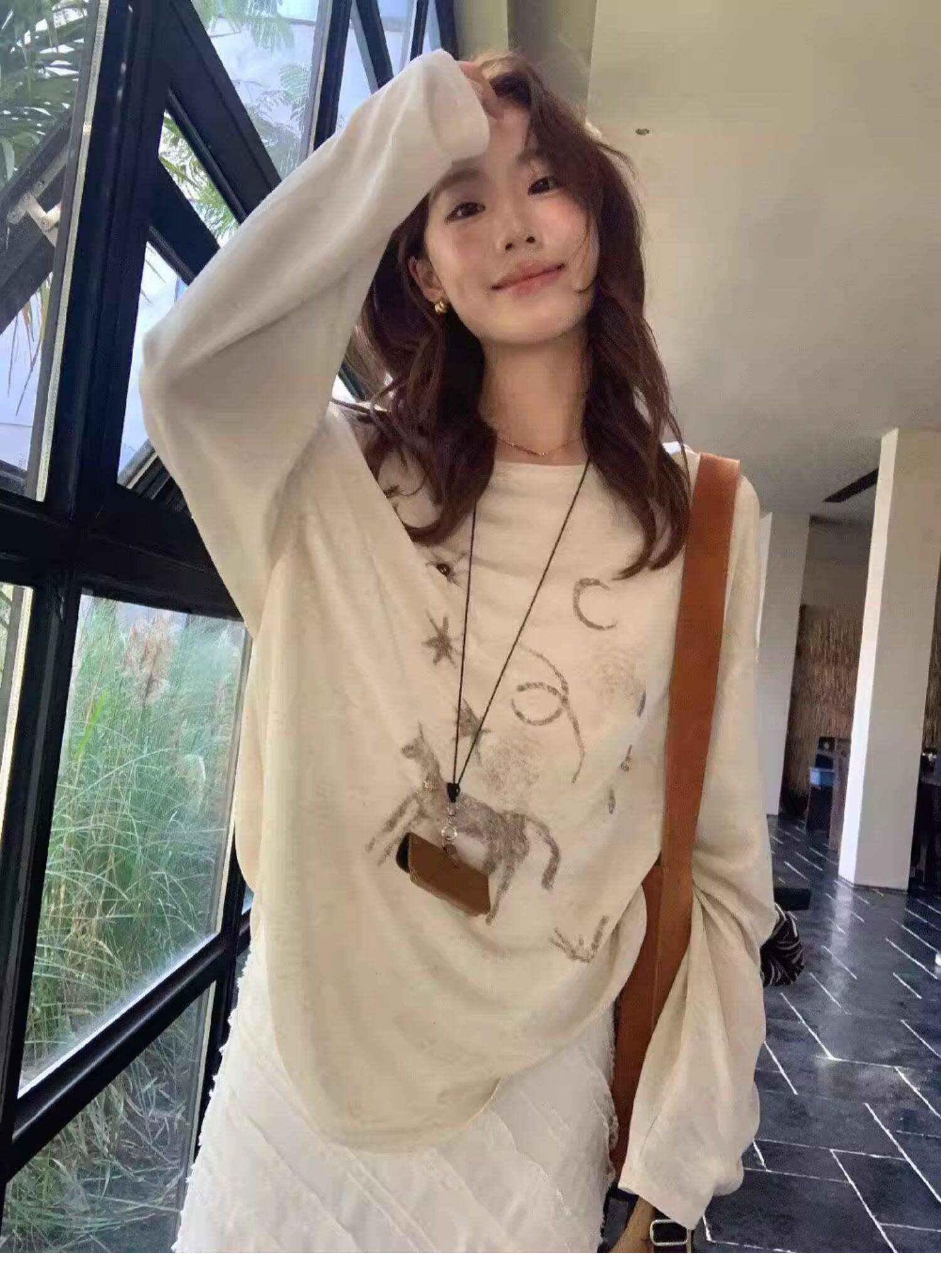Gorgeous and Beautiful Printed Sun-Protective Long-Sleeve T-Shirt for Women, Spring and Summer Lazy Style, Loose and Relaxed Sun-Protective Cover-Up Top