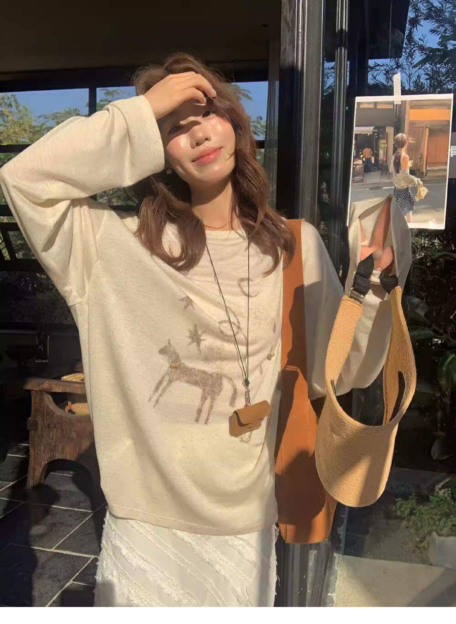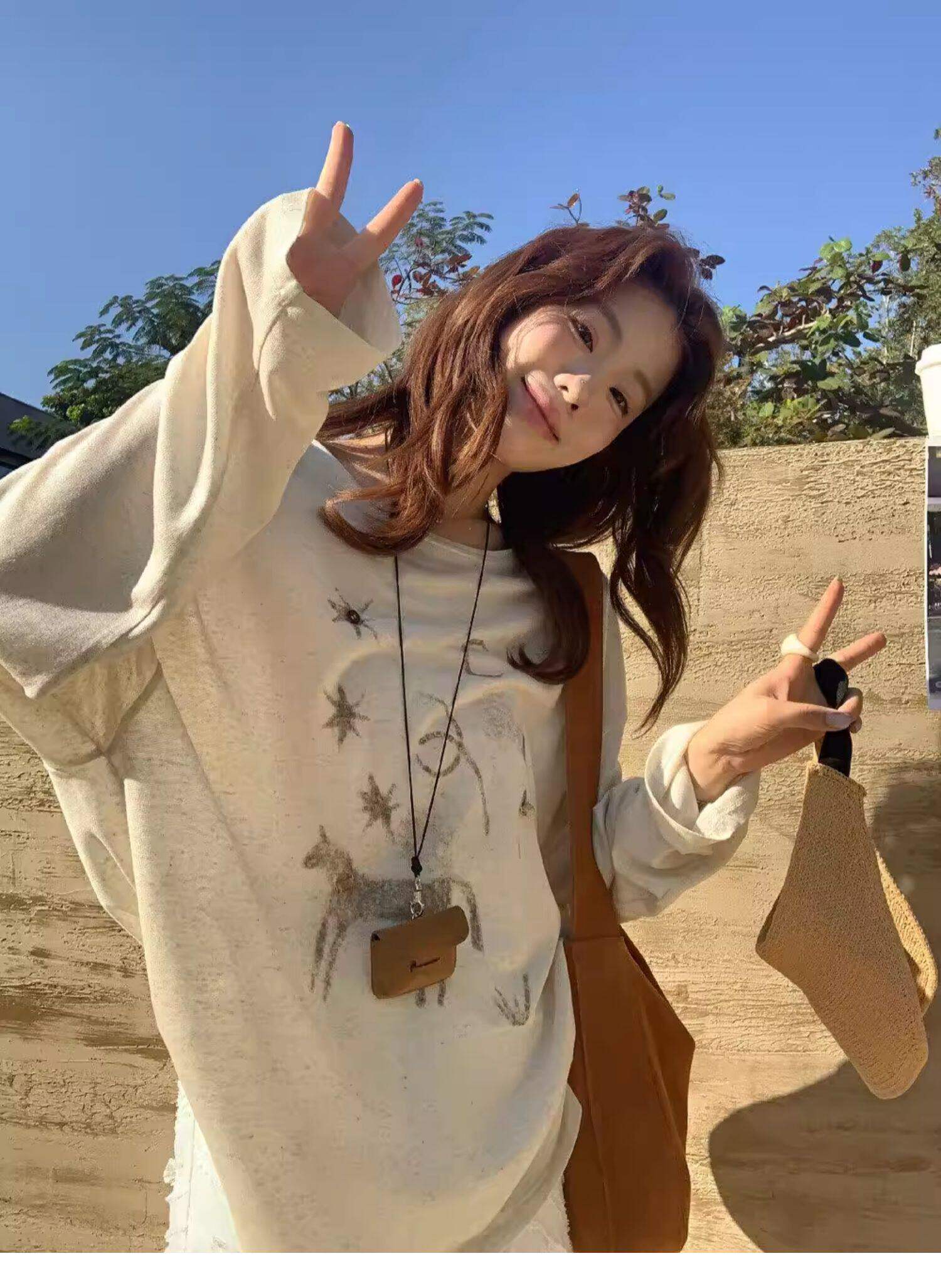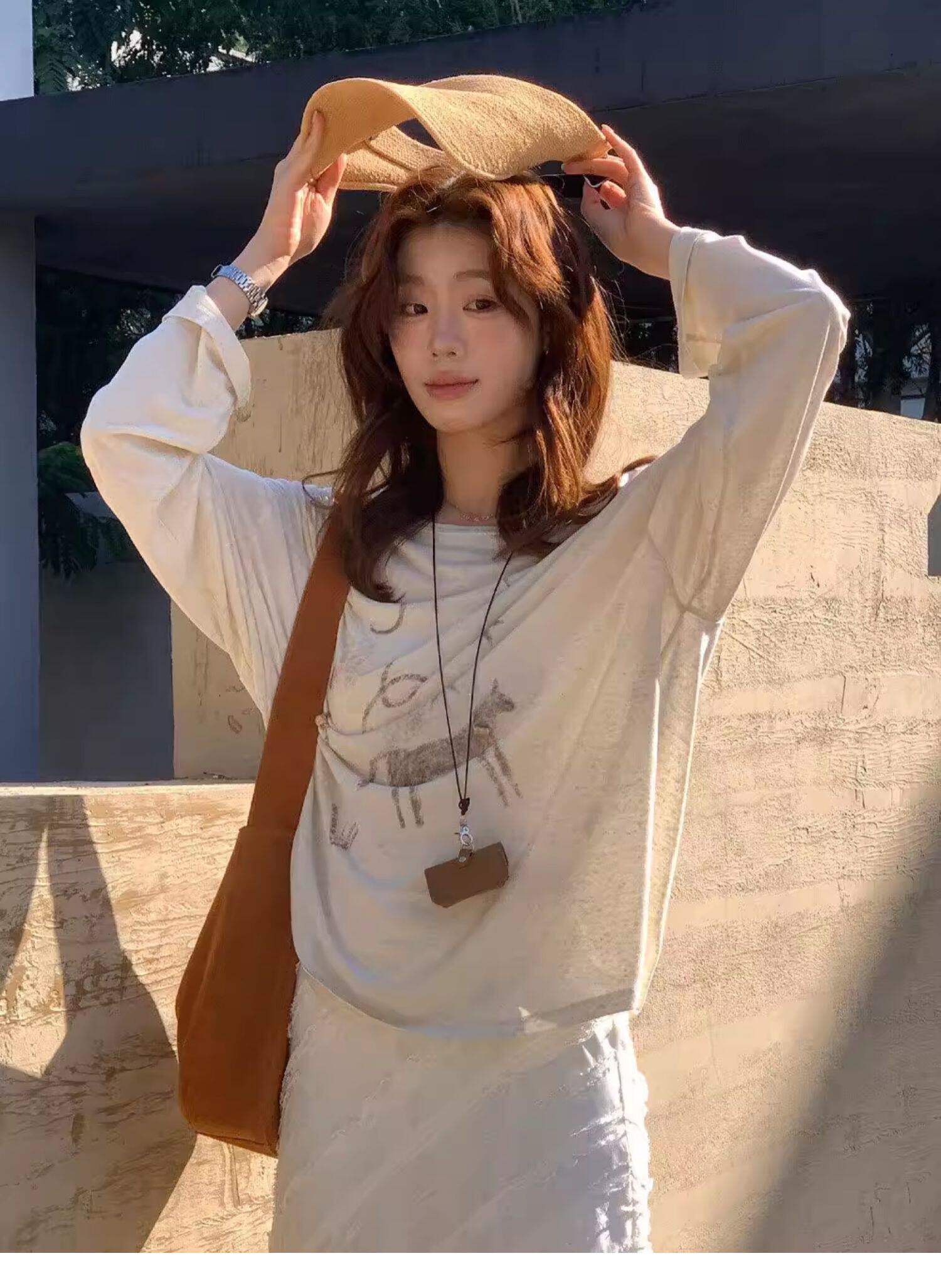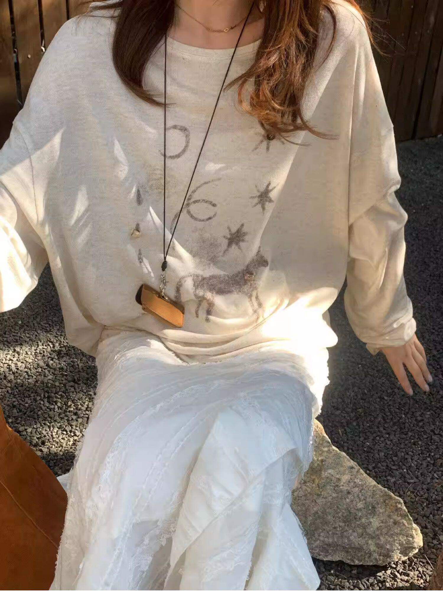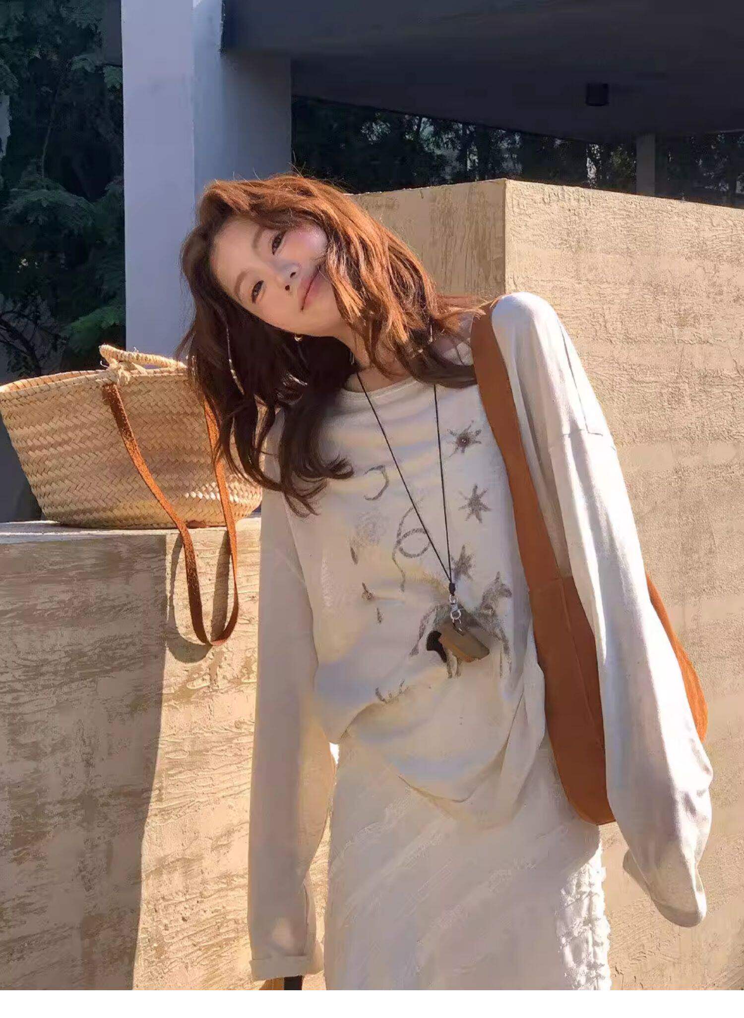 Gorgeous and Beautiful Printed Sun-Protective Long-Sleeve T-Shirt for Women, Spring and Summer Lazy Style, Loose and Relaxed Sun-Protective Cover-Up Top