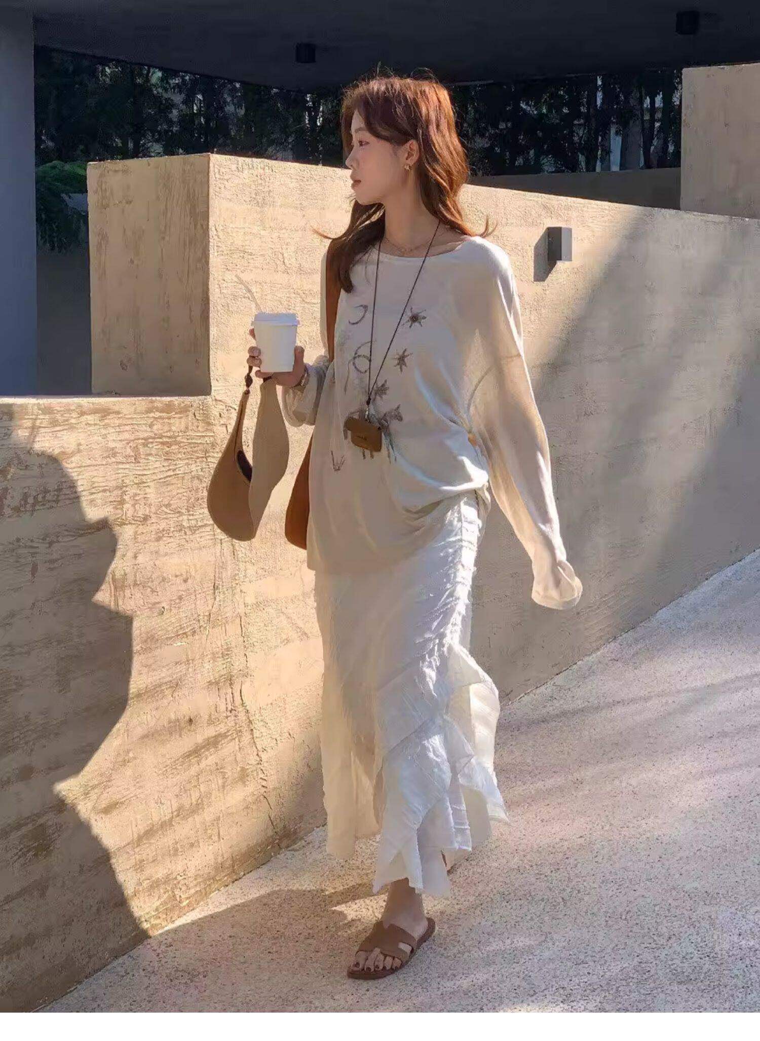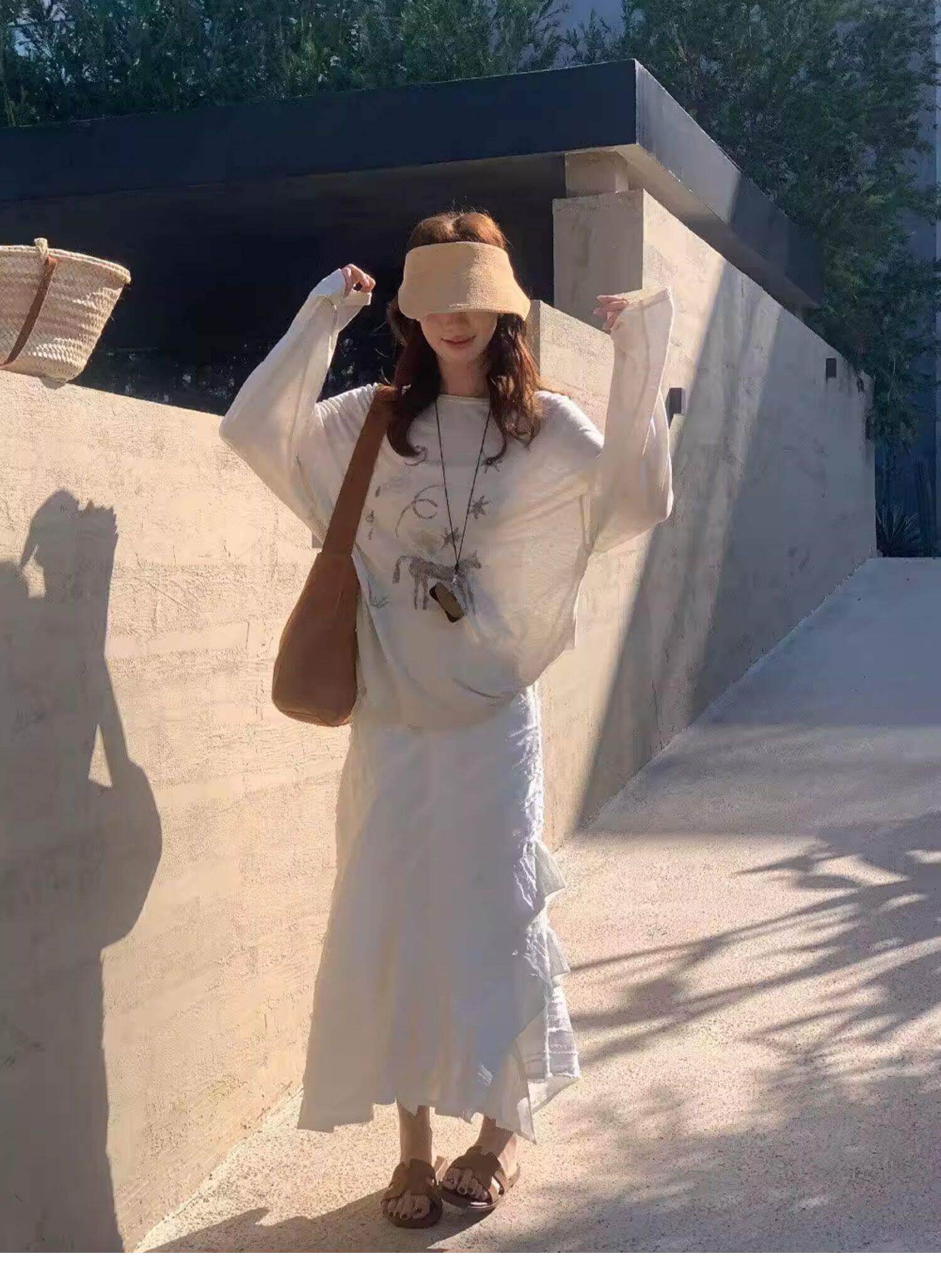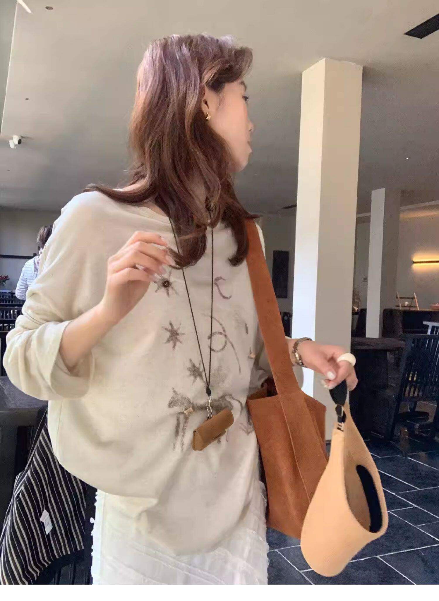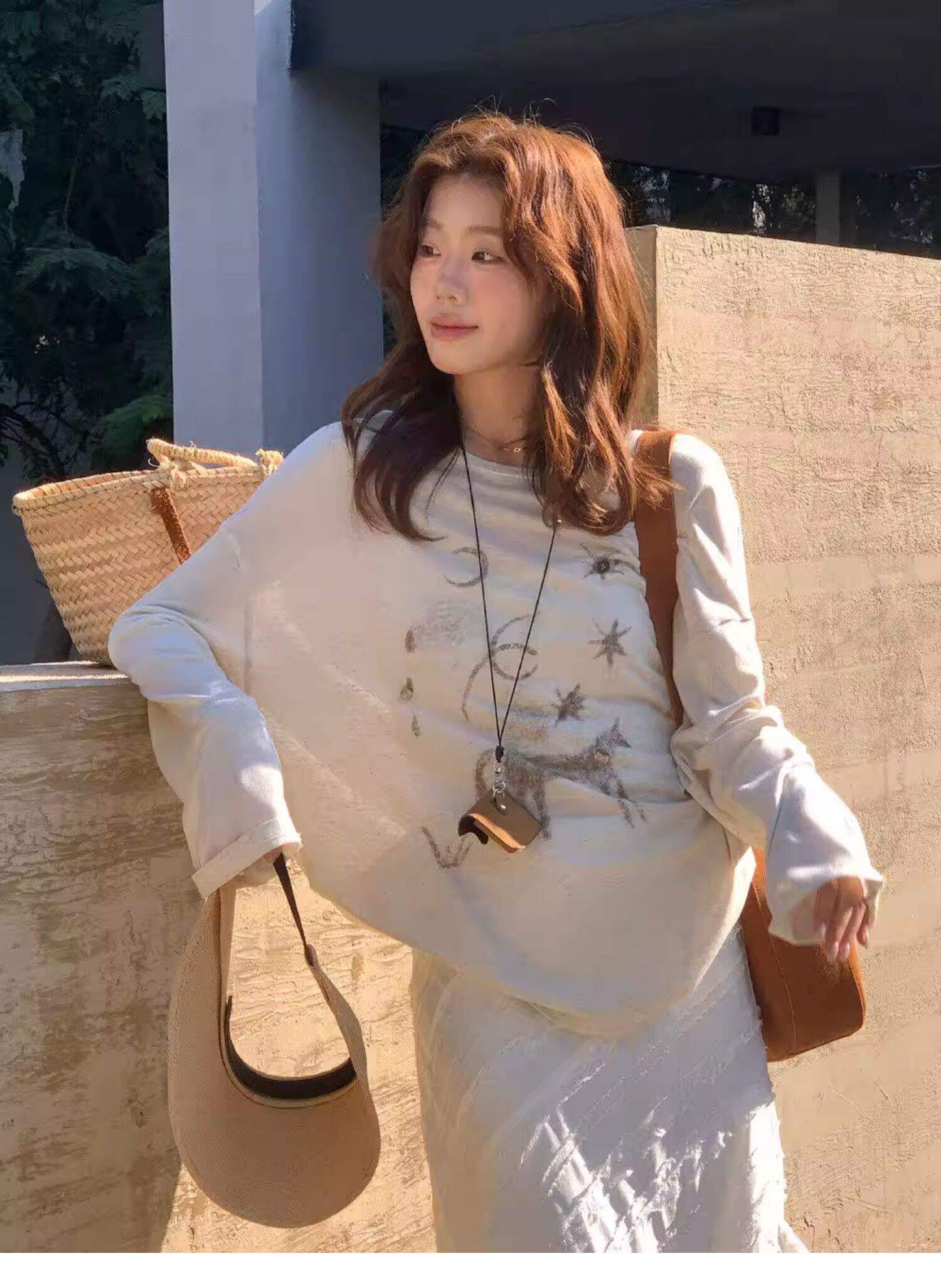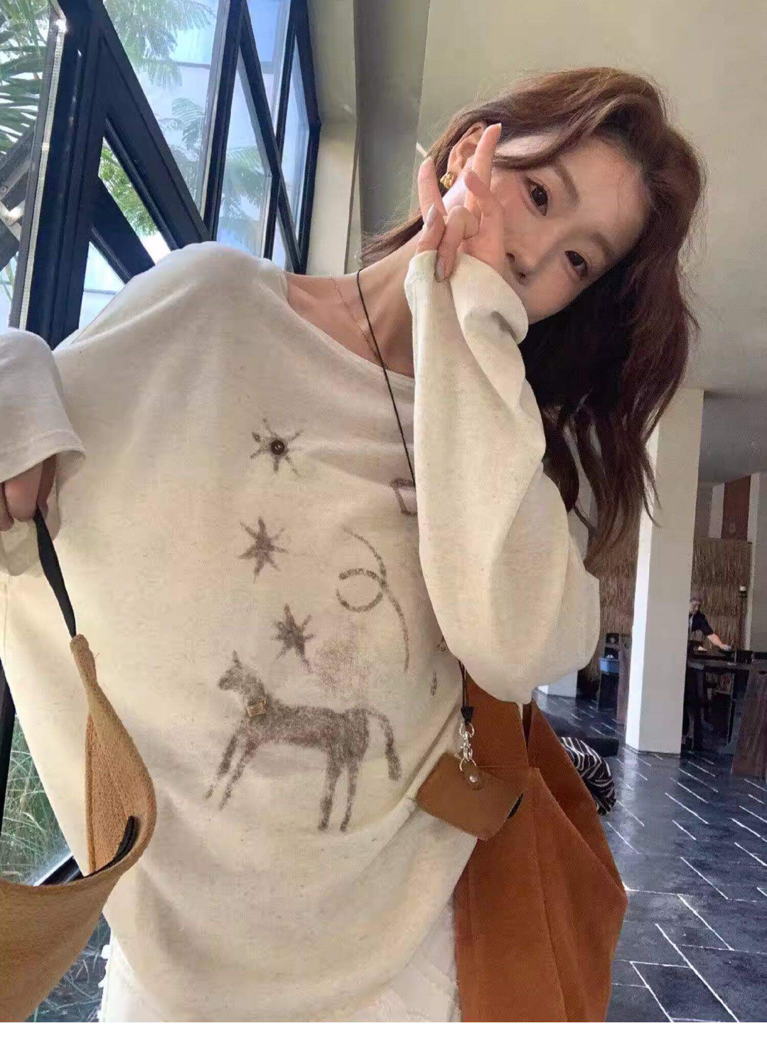 Gorgeous and Beautiful Printed Sun-Protective Long-Sleeve T-Shirt for Women, Spring and Summer Lazy Style, Loose and Relaxed Sun-Protective Cover-Up Top