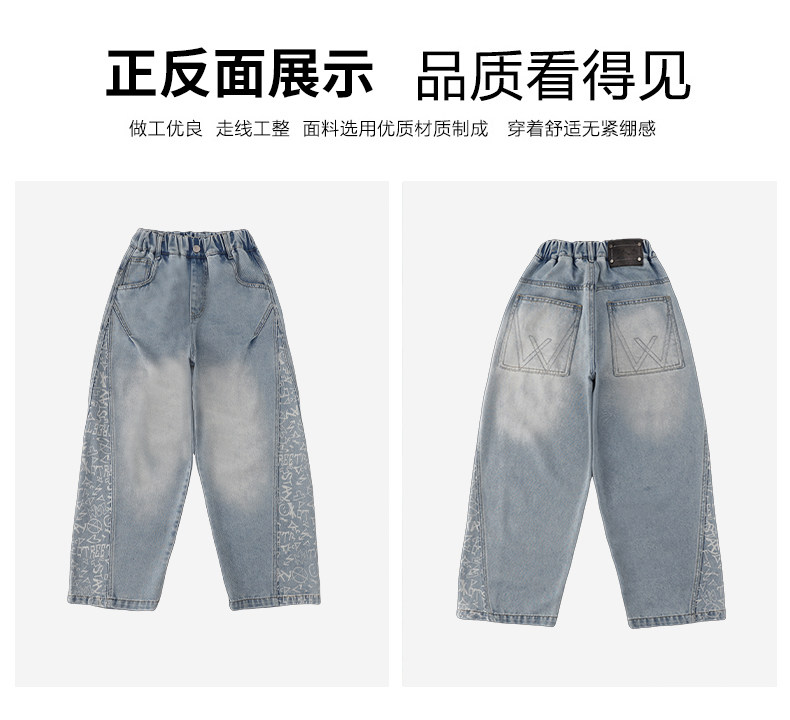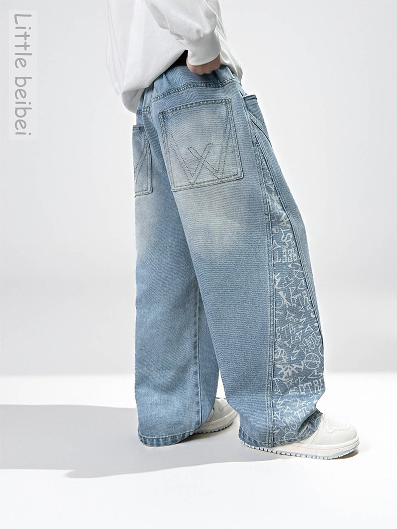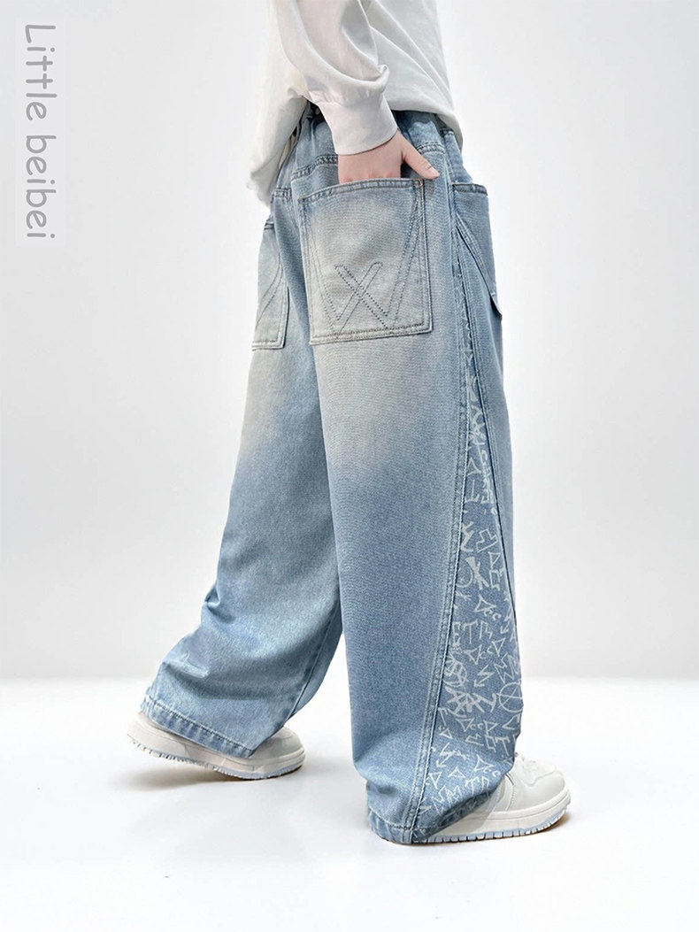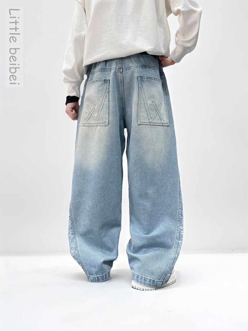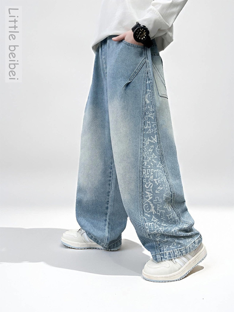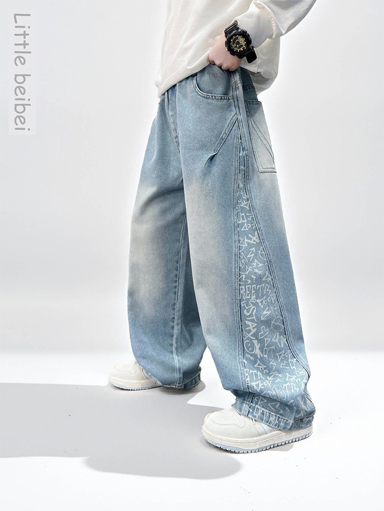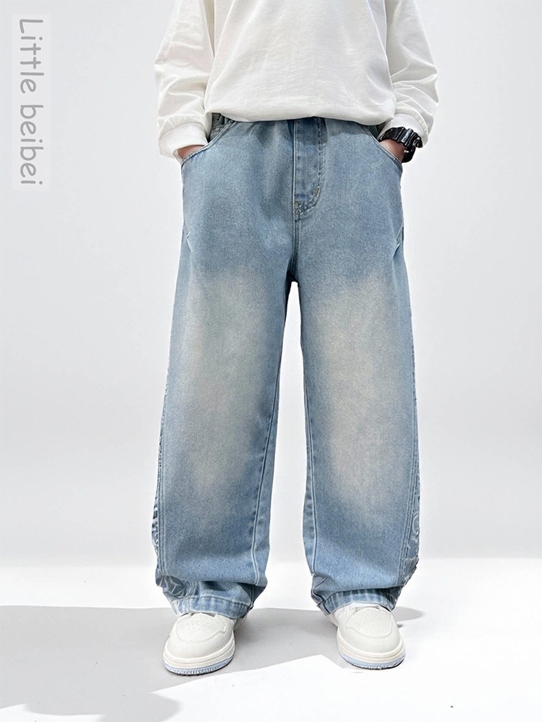 Boys' Straight-Leg Pants Spring and Autumn 2026 New Stylish Cool Jeans for Older Children Spring Loose Pants Children's Spring Wear