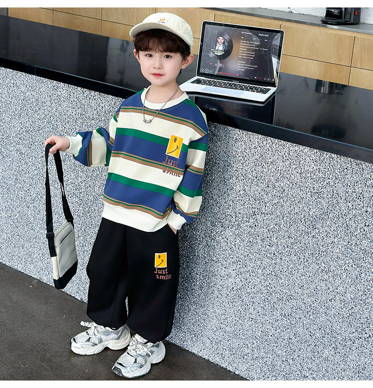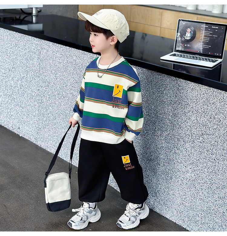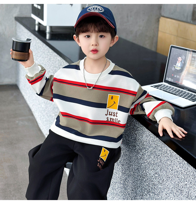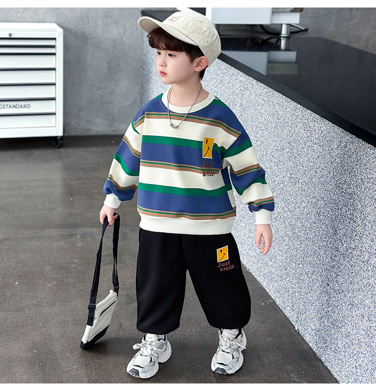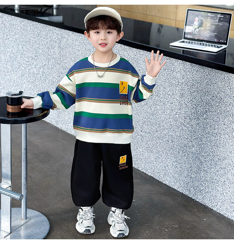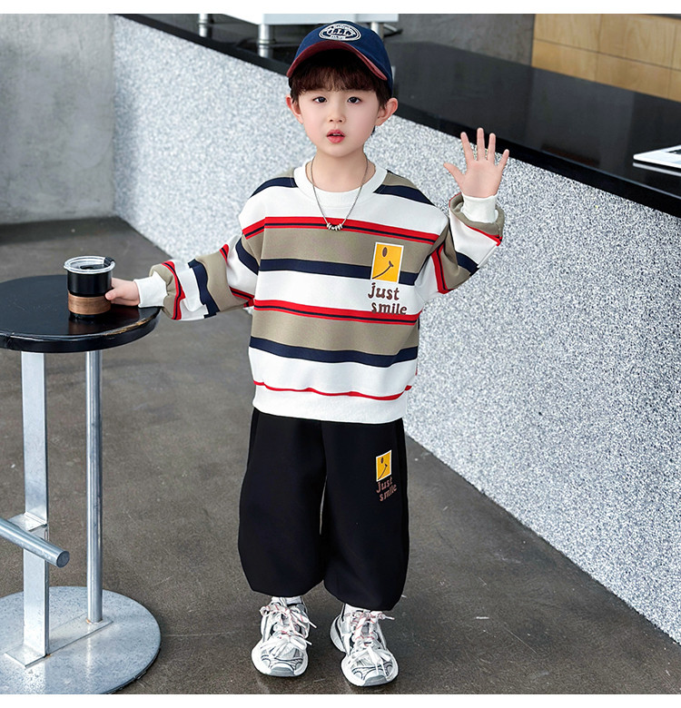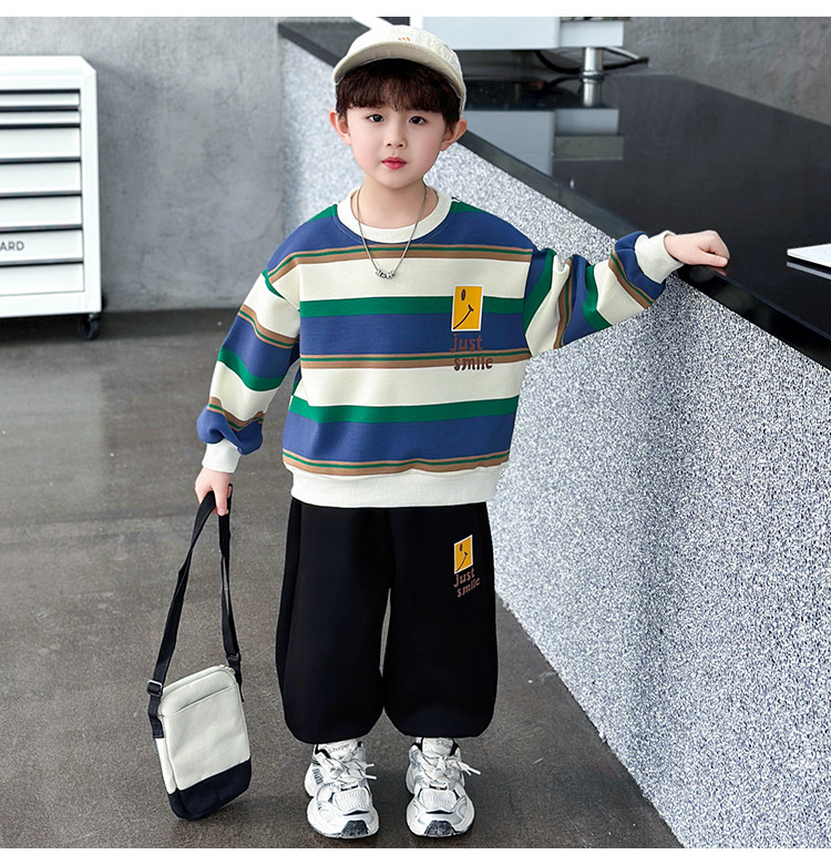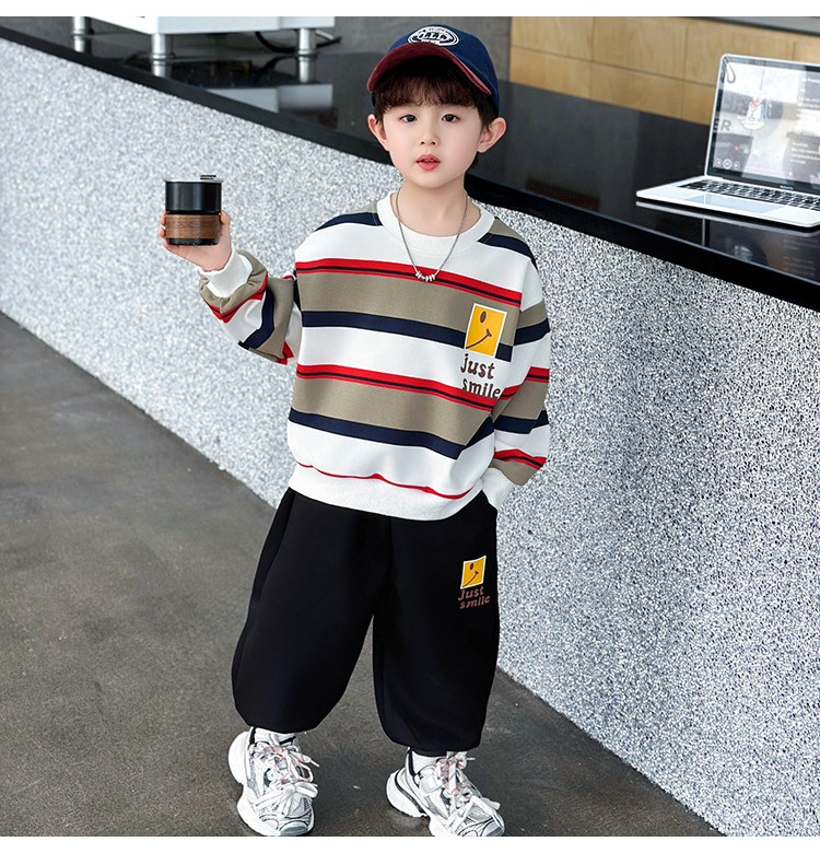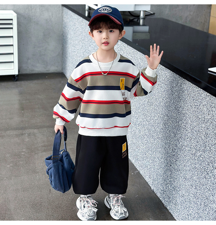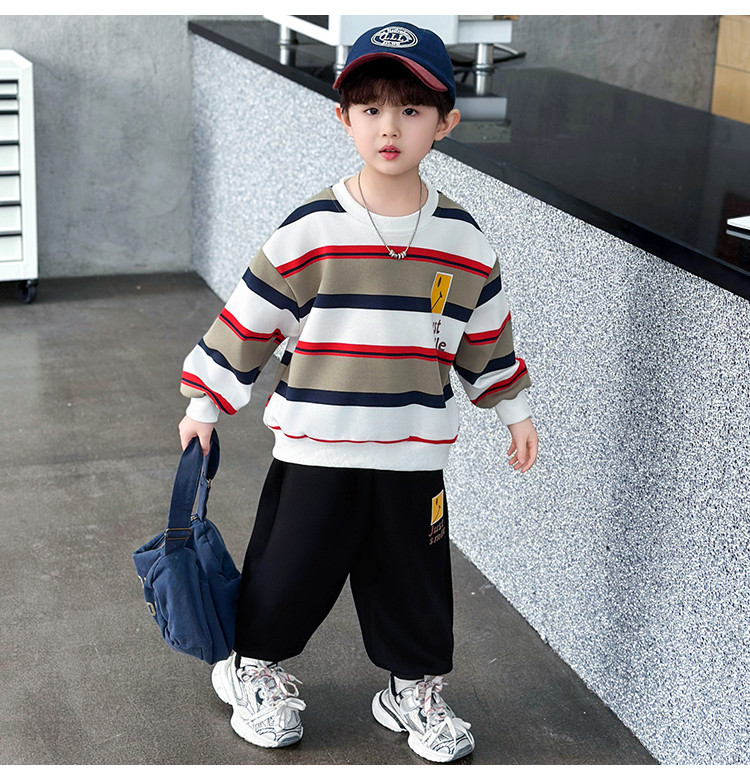 Boys' Spring Striped Sweatshirt Set 2026 New Style Little Boy Casual Sports Two-Piece Set Stylish Children's Clothing