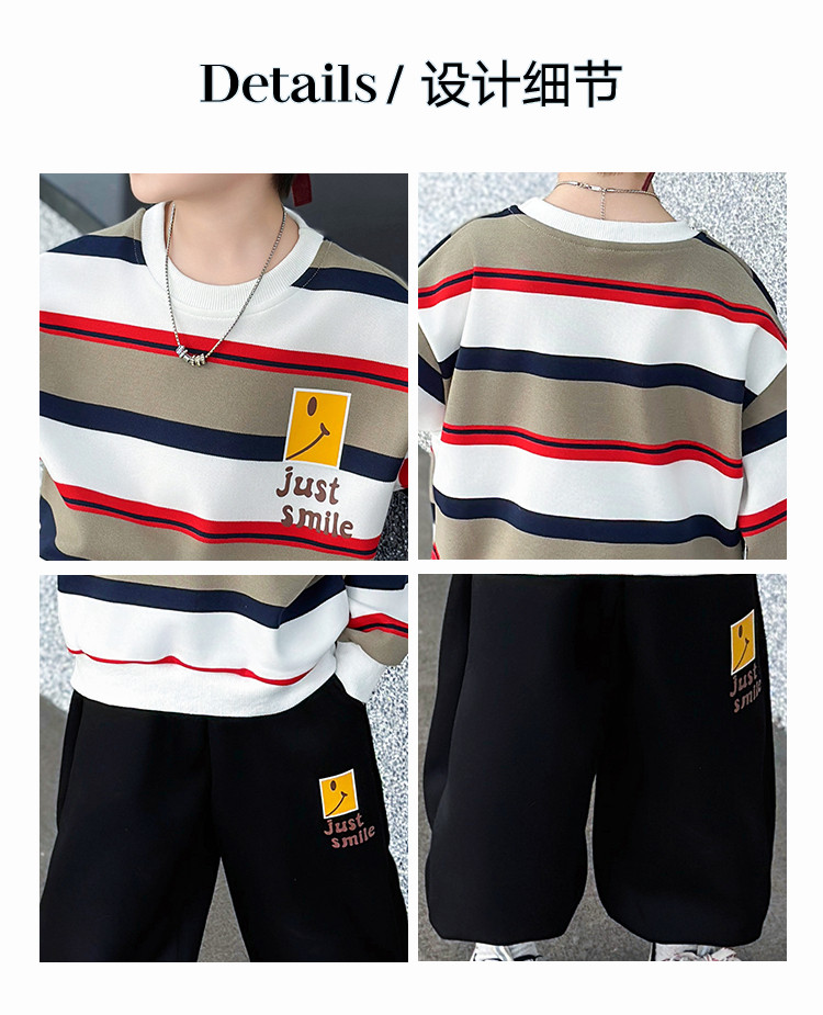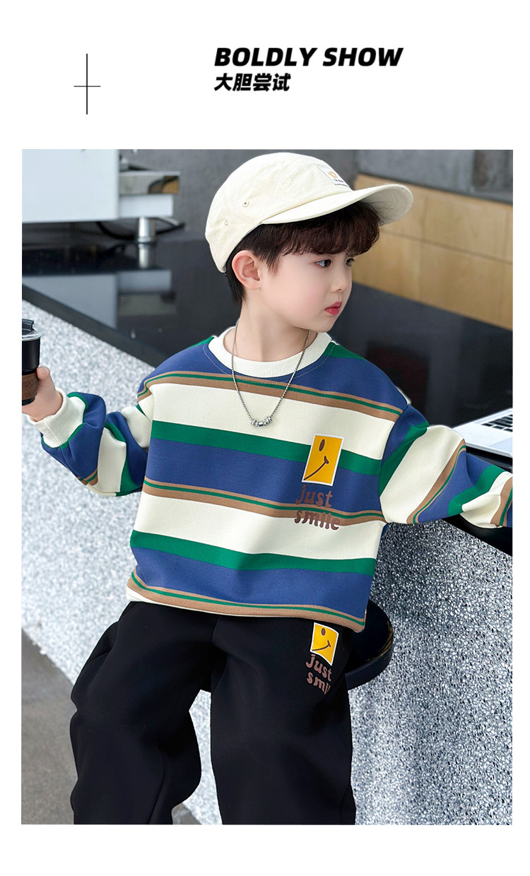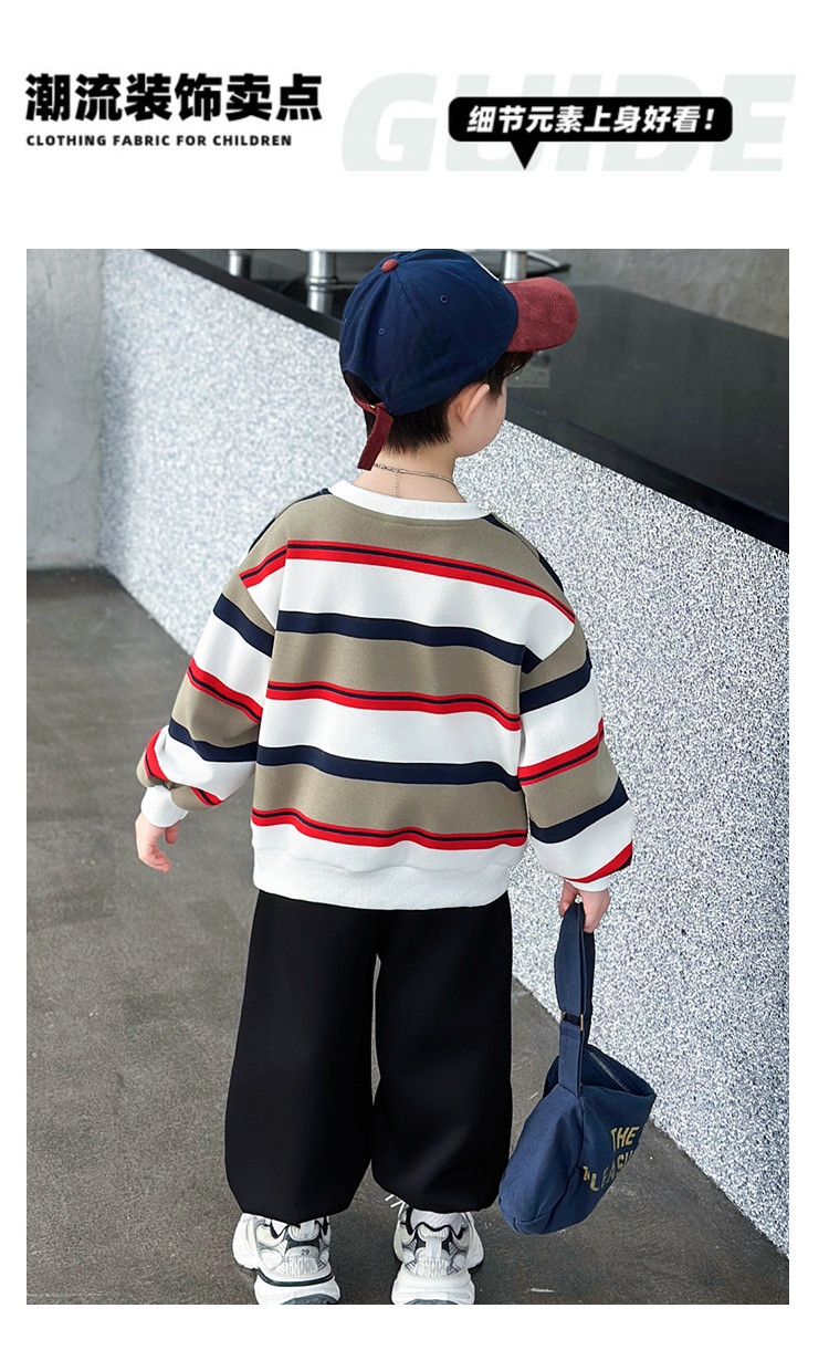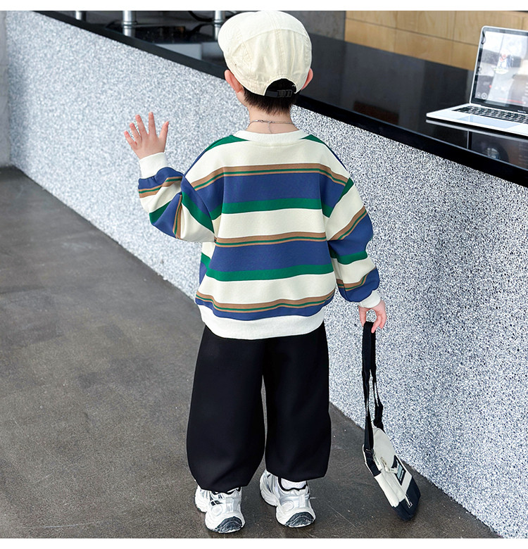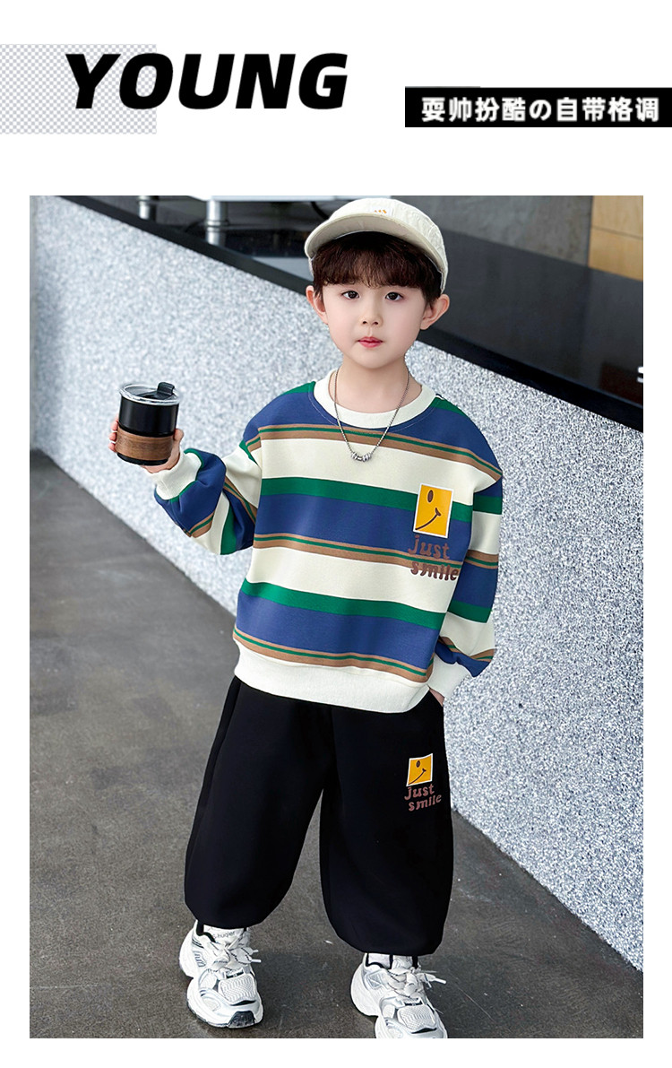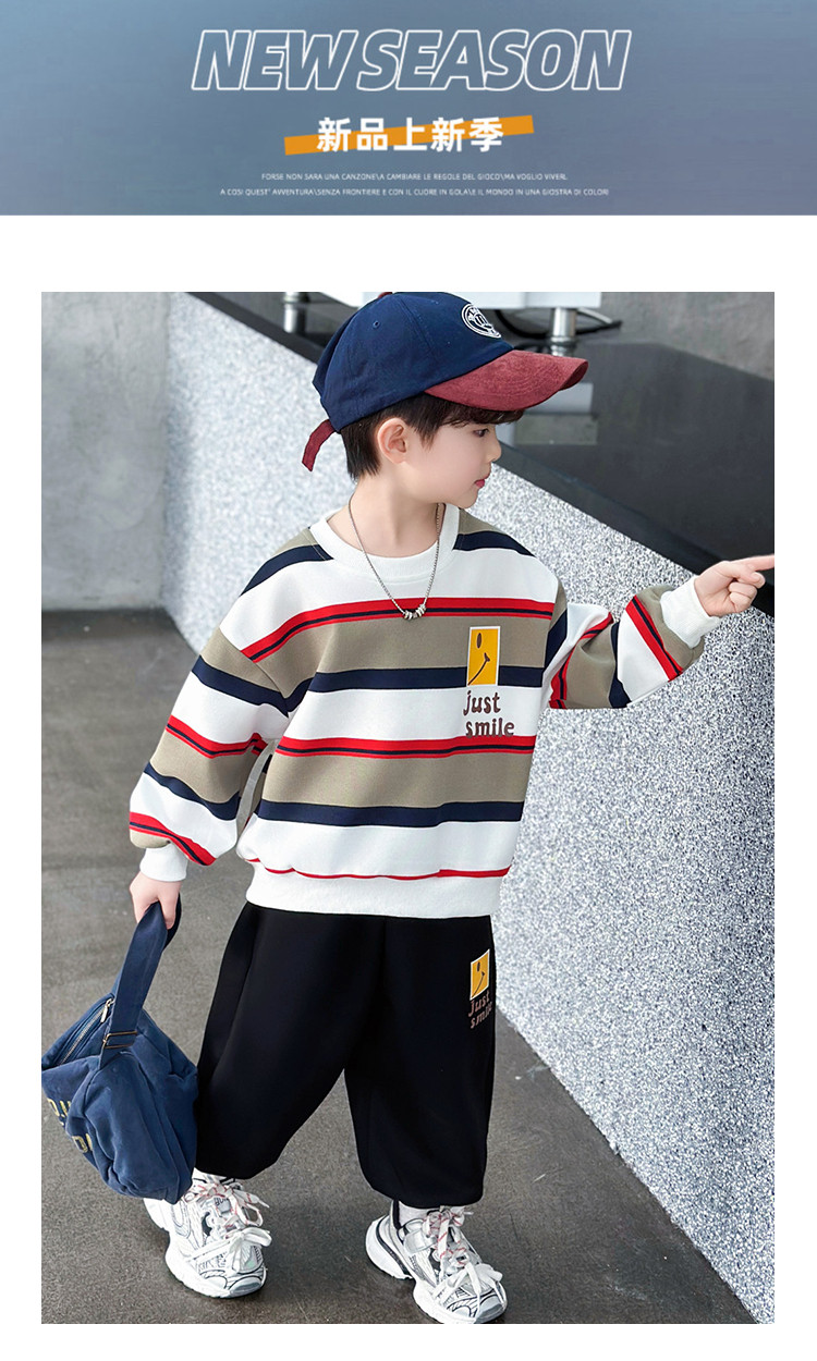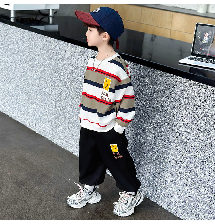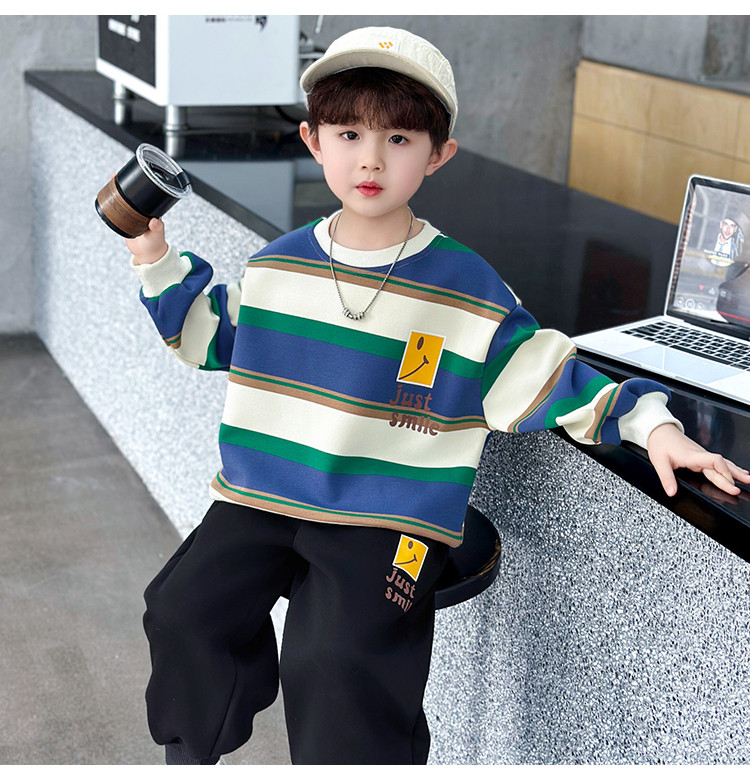Boys' Spring Striped Sweatshirt Set 2026 New Style Little Boy Casual Sports Two-Piece Set Stylish Children's Clothing