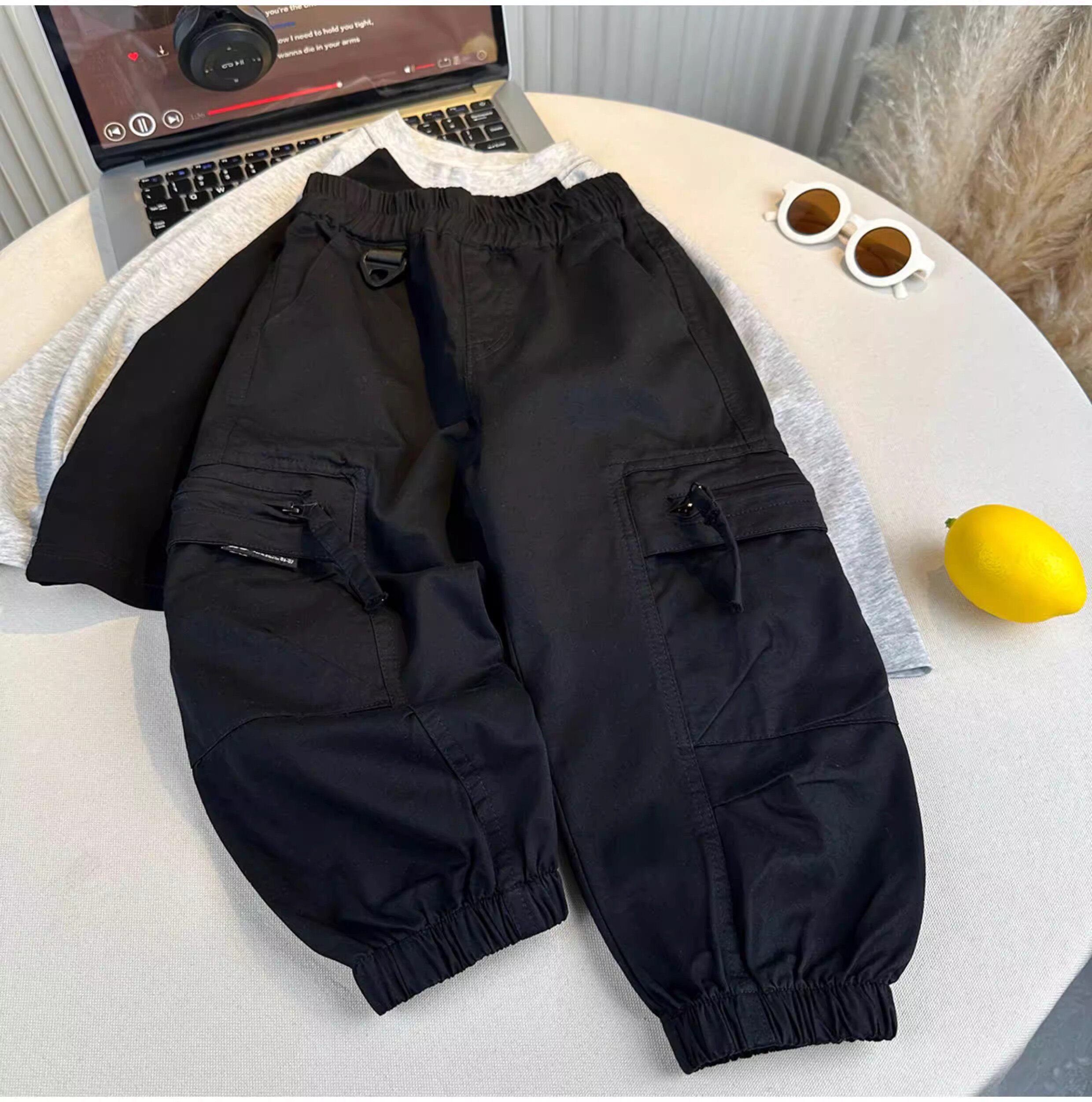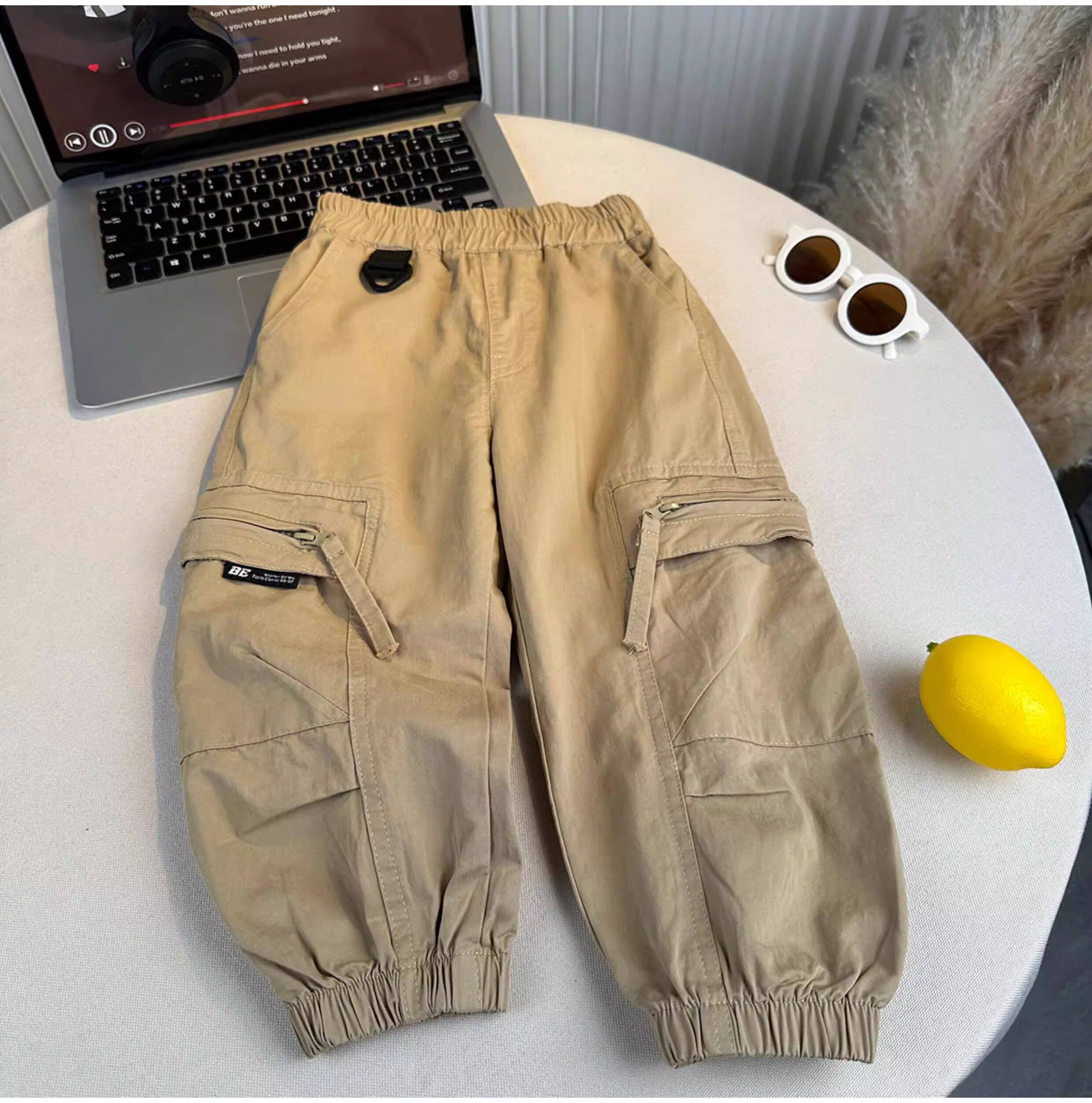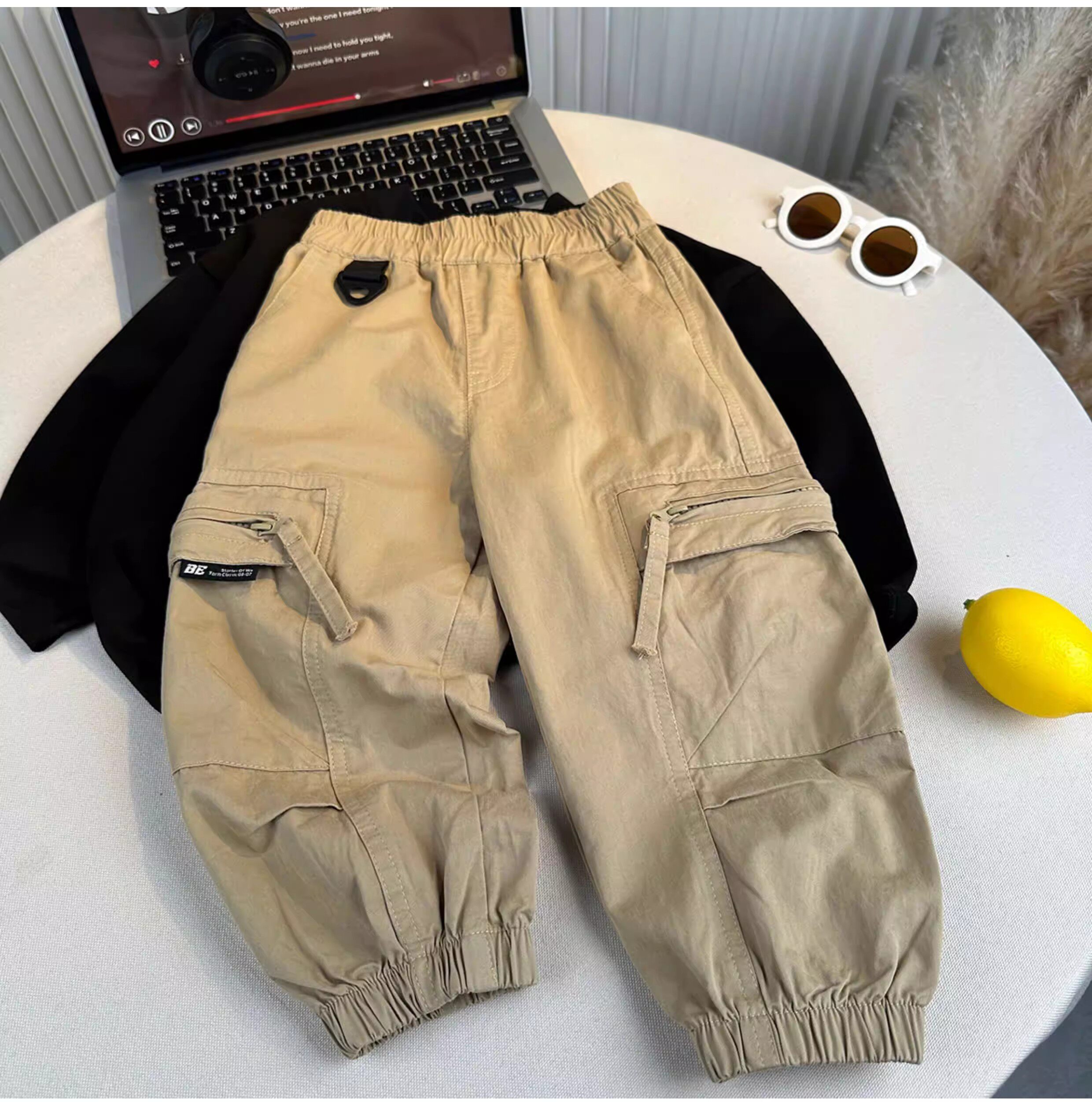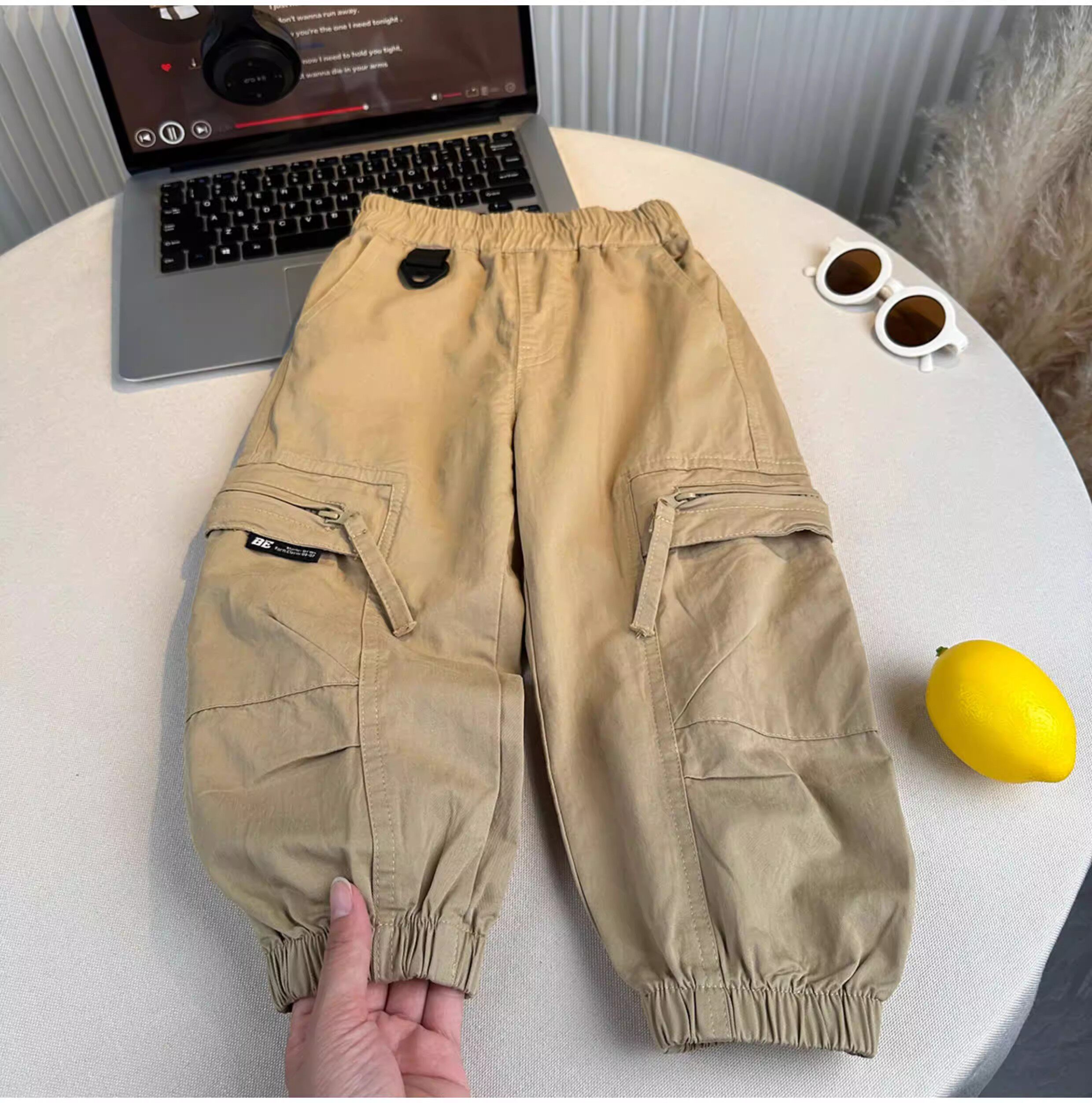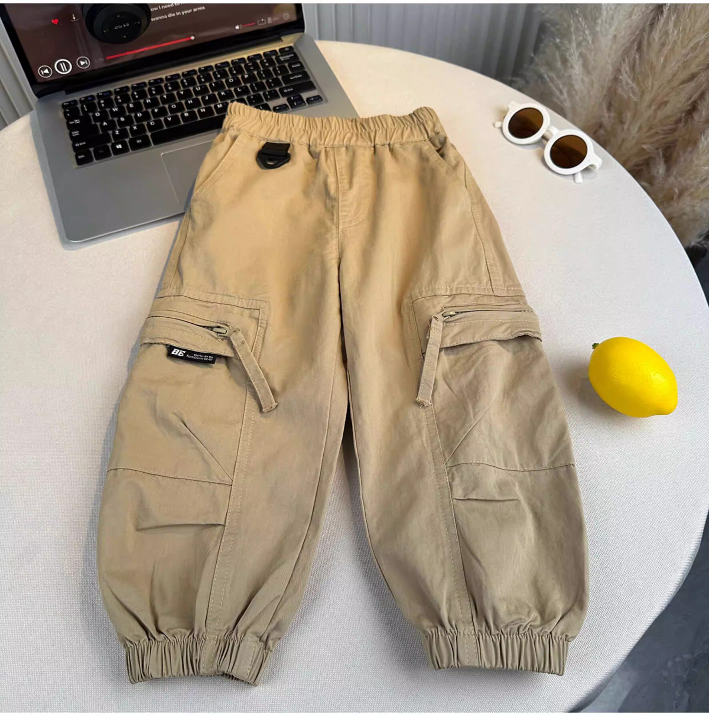 French-Style Boys' Korean-Style Cargo Pants, New Spring Model, Children's Pure Cotton Long Pants, Baby Spring and Autumn Stylish Casual Pants
