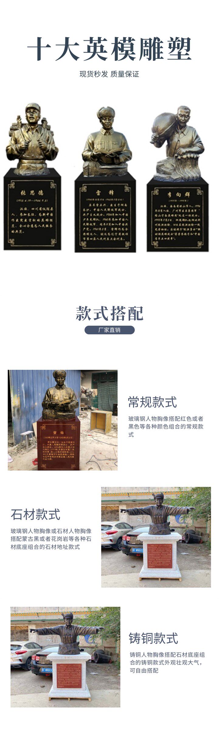 Color Classification Lei Feng Sculpture (Including Base),Huang Jiguang (Including Base),Qiu Shaoyun (Including Base),Lin Junde (Including Base),Dong Cunrui (Including Base),Zhang Chao (Including Base),Yang Yegong (Including Base),Zhang Sude (Including Base),Suning (Including Base),Li Xiangqun (Including Base),Single Bust (Base Not Included),Heroic Model Full Body Statue (Single),Top 10 Heroic Figures Bronze Statues (Deposit),Customize Other Statues