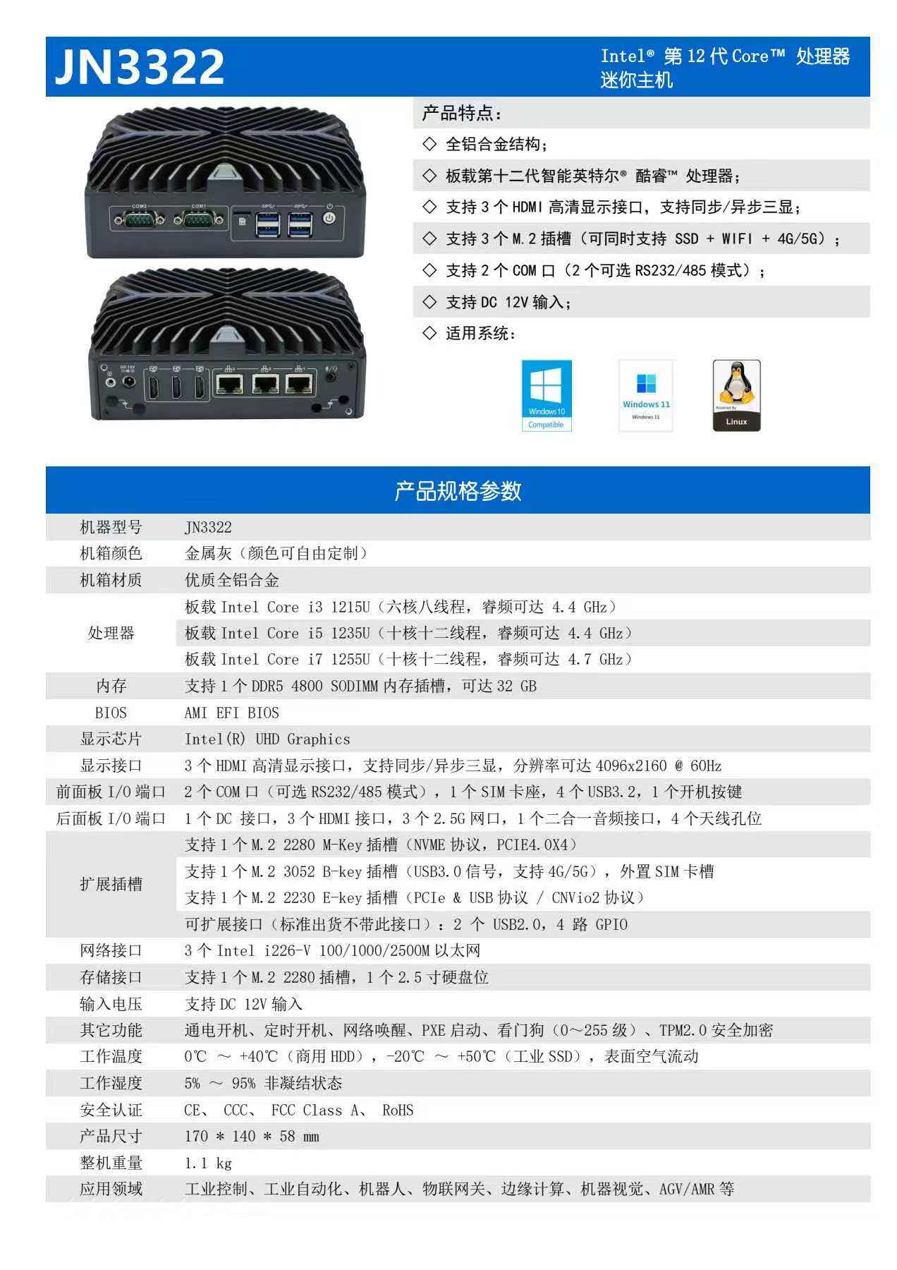 Neutral Embedded Industrial Computer Jn3322