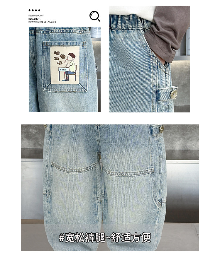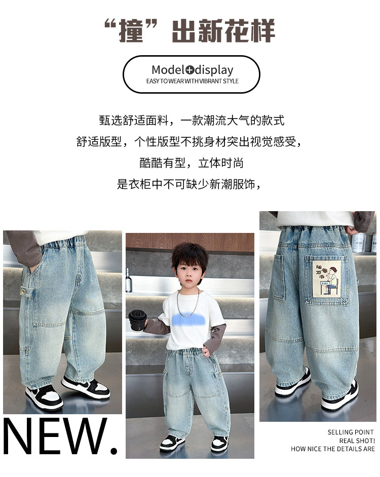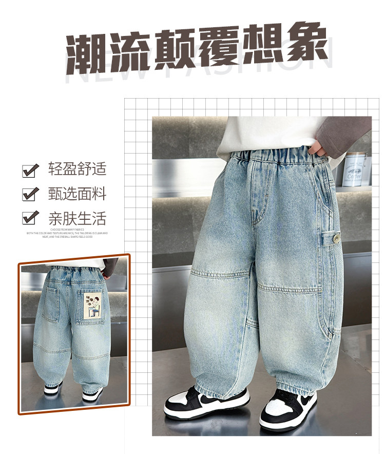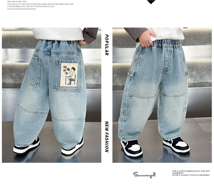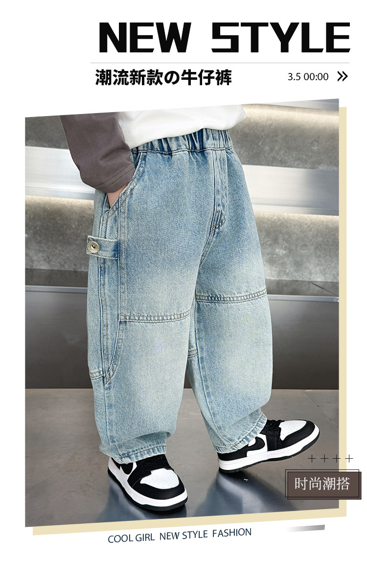 Boys' Jeans Spring and Autumn 2026 New Stylish Children's Spring Pants Loose Straight-Leg Cool Casual Pants for Toddlers