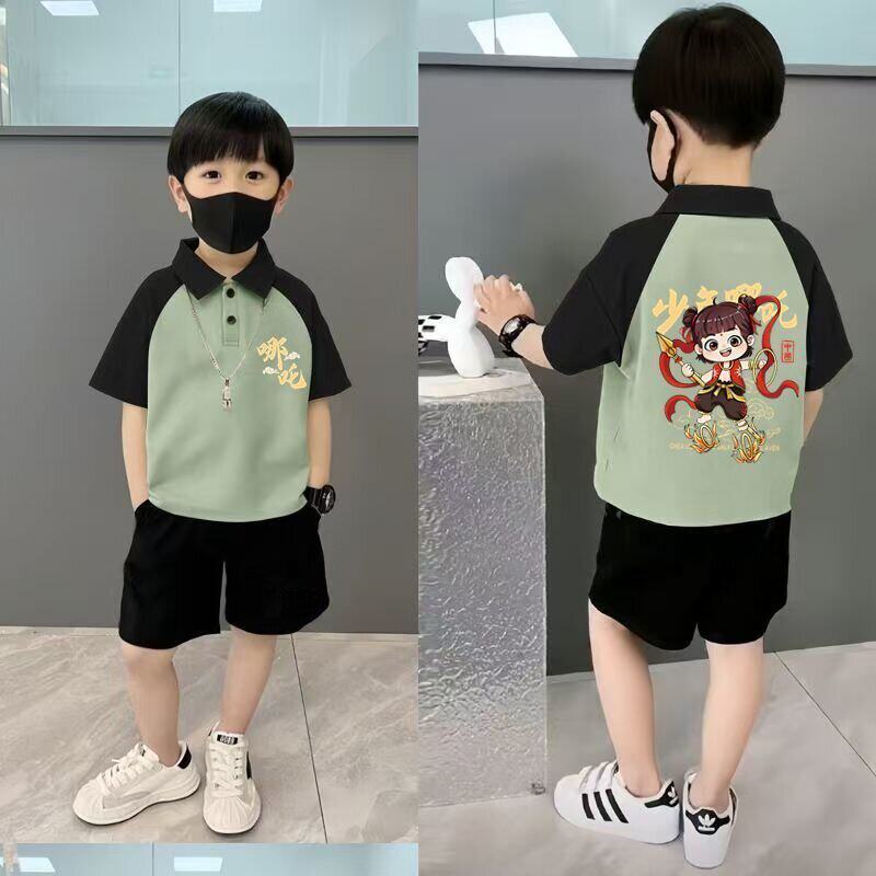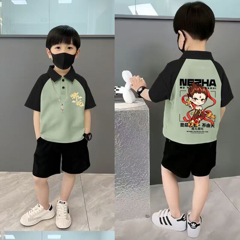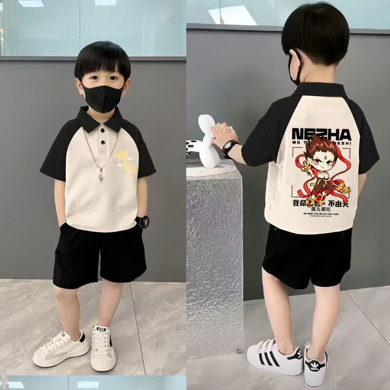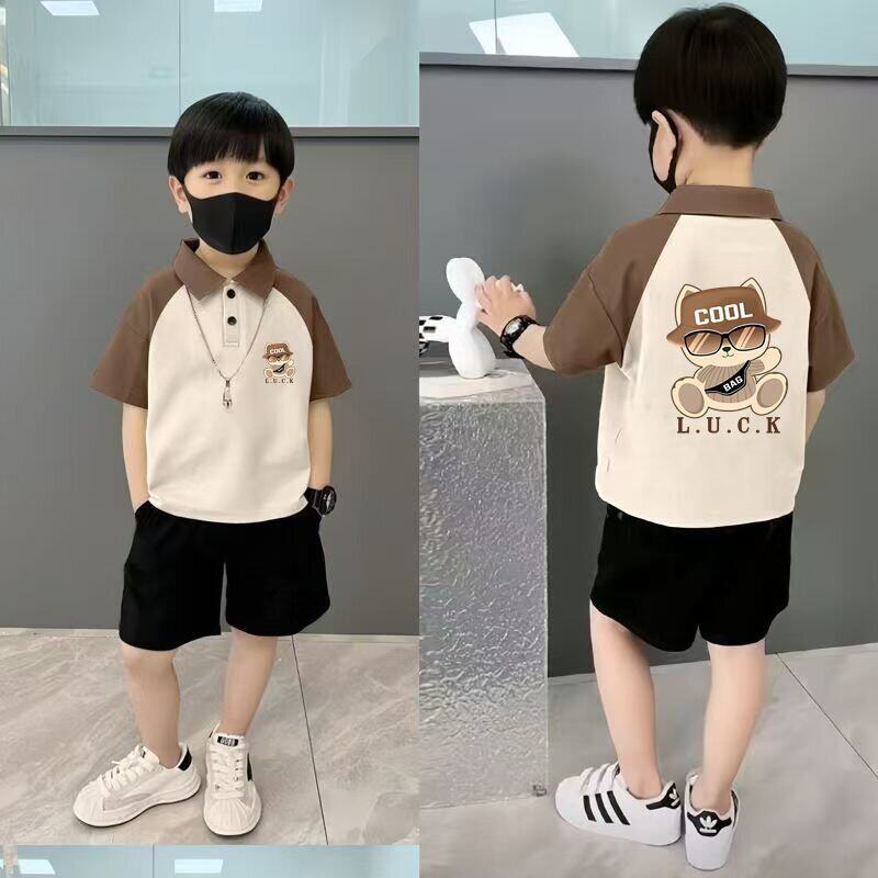 Balala Boys' Short-Sleeved Contrasting Color Polo Shirt Summer New Style Short-Sleeved Kidsren's Handsome Short-Sleeved T-Shirt Summer Boys Set