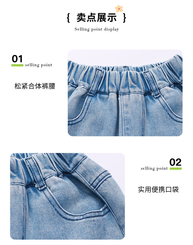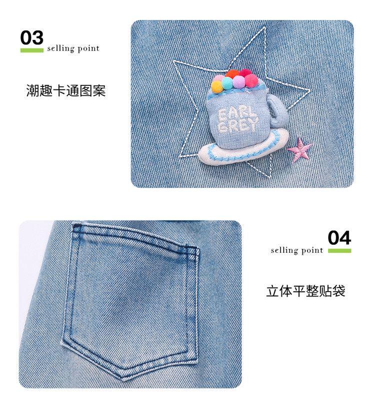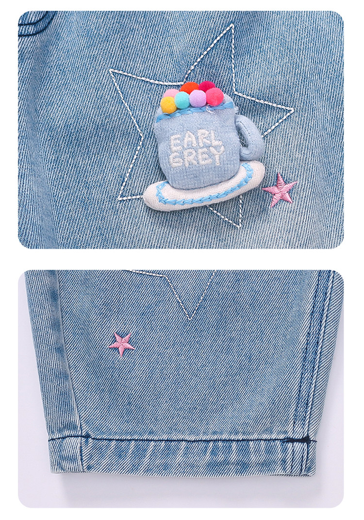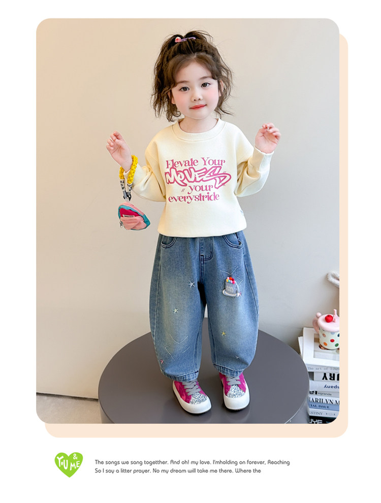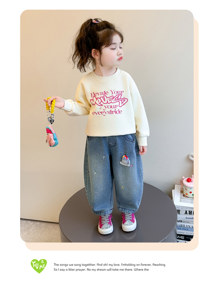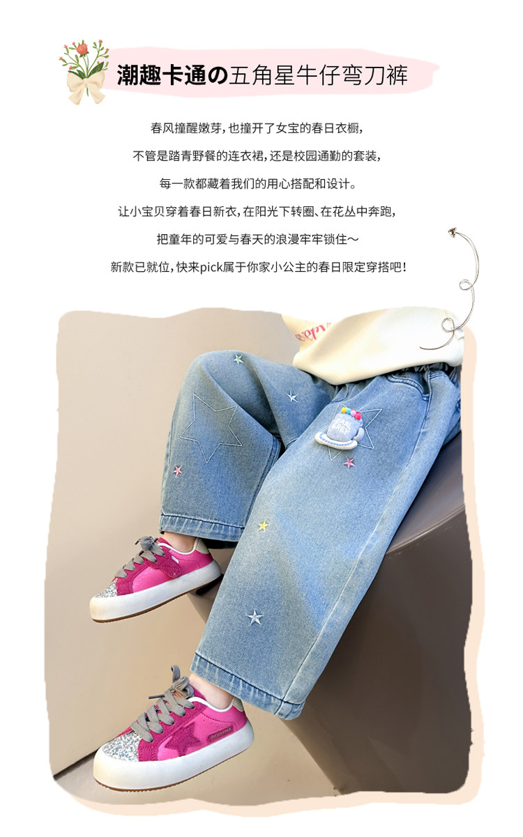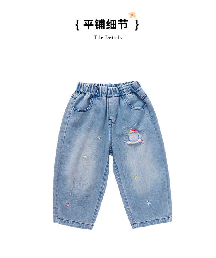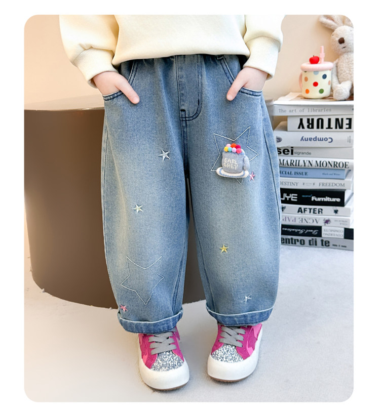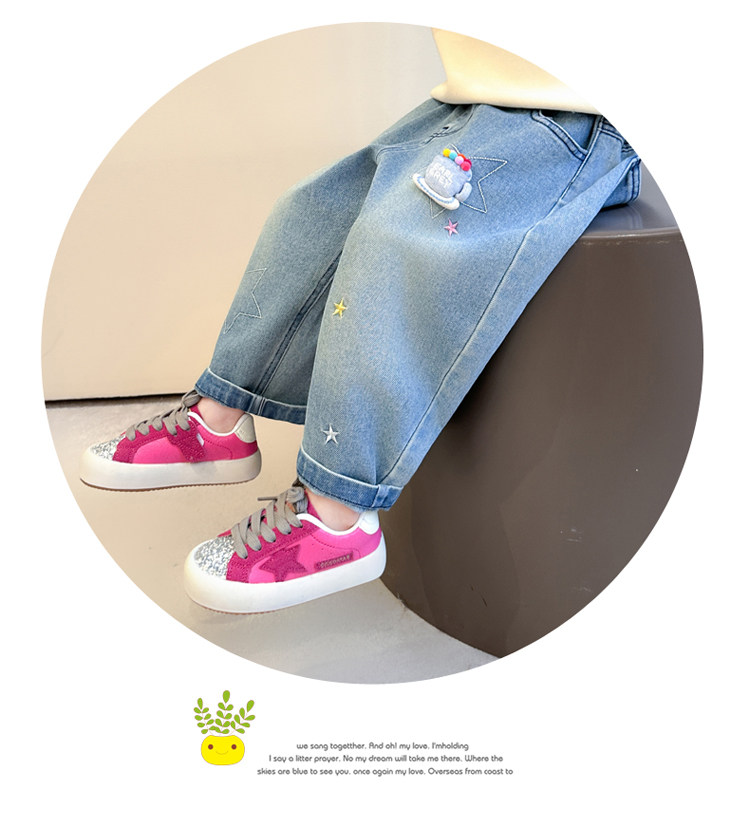 Girls' Embroidered Scimitar Jeans, New Spring and Autumn Style, Stylish Loose Casual Long Pants for Children, Straight-Leg Pants for Toddlers