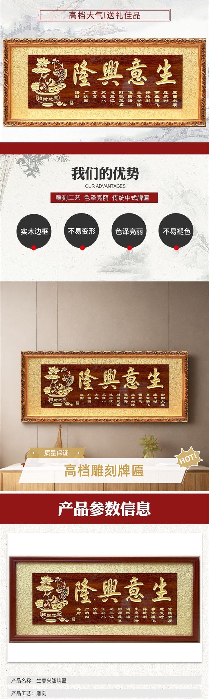 Popular Restaurant Opening and Housewarming Gifts, Wooden Plaques, Business Prosperity Congratulatory Plaques, High-End Office Decorations