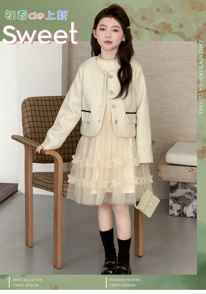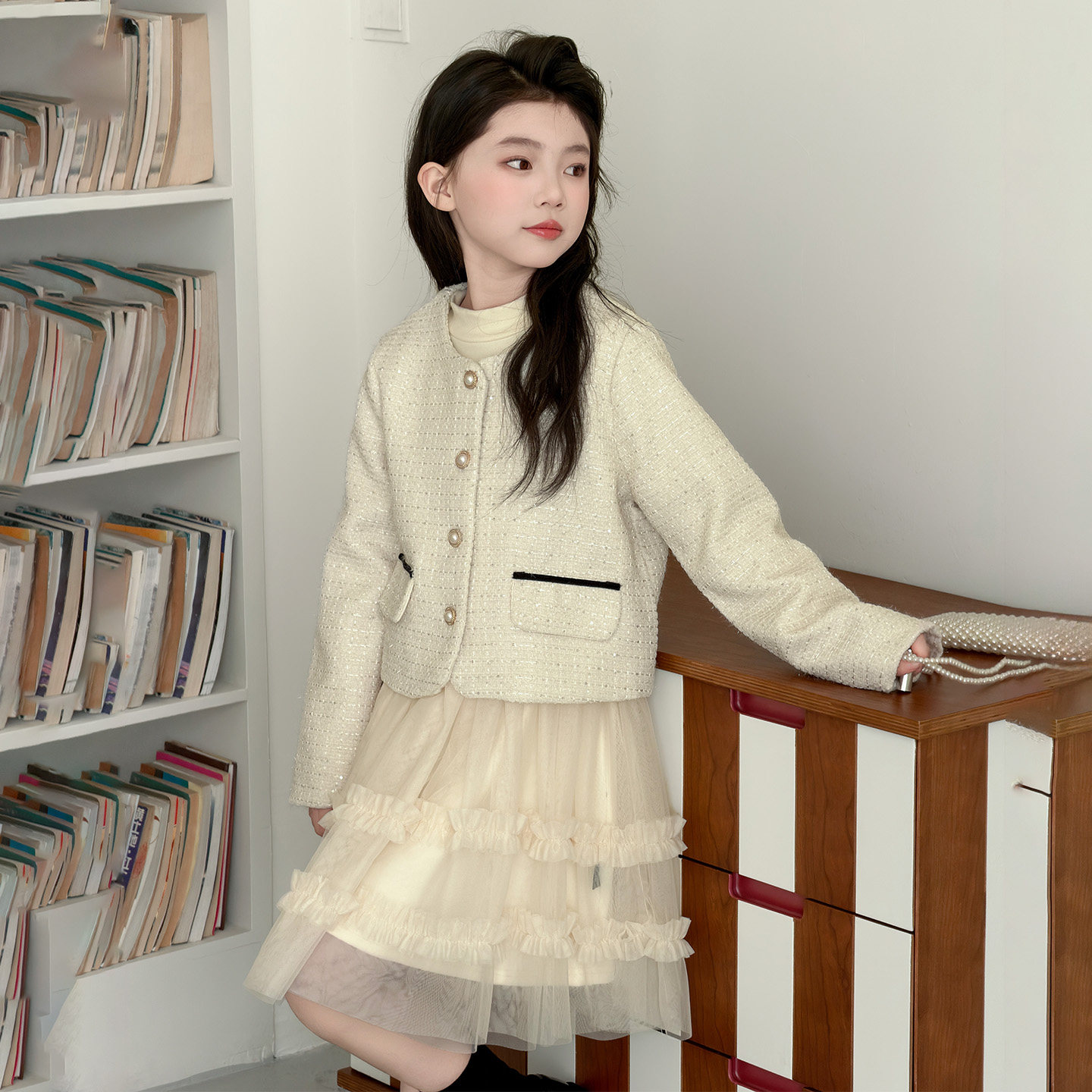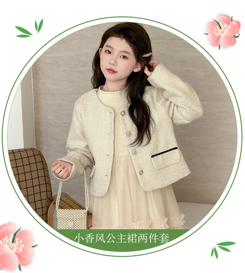 Girls' Little Chanel Style Outfit Spring and Autumn 2026 New Fashionable Children's Dress Girl's Mesh Cake Princess Dress