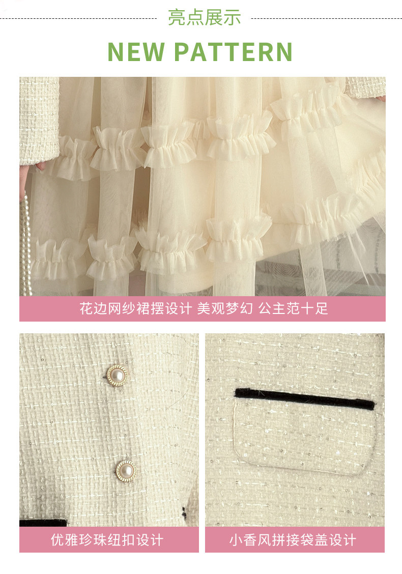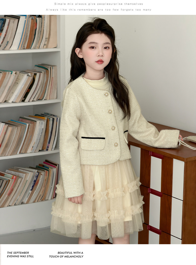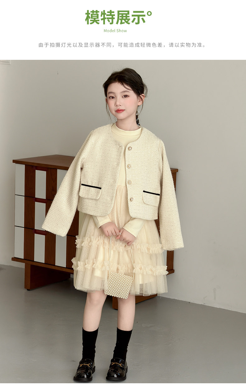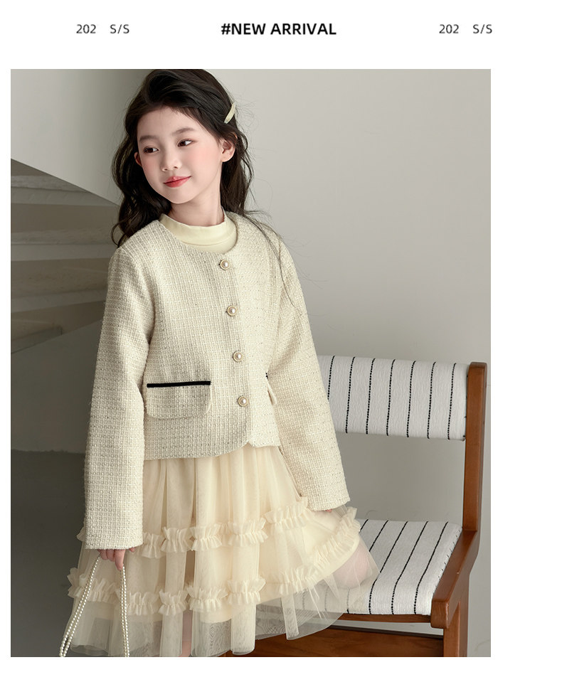 Girls' Little Chanel Style Outfit Spring and Autumn 2026 New Fashionable Children's Dress Girl's Mesh Cake Princess Dress