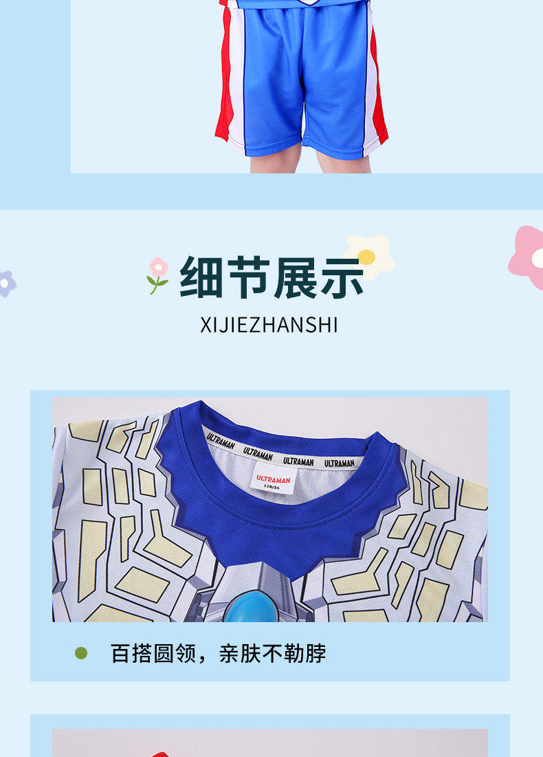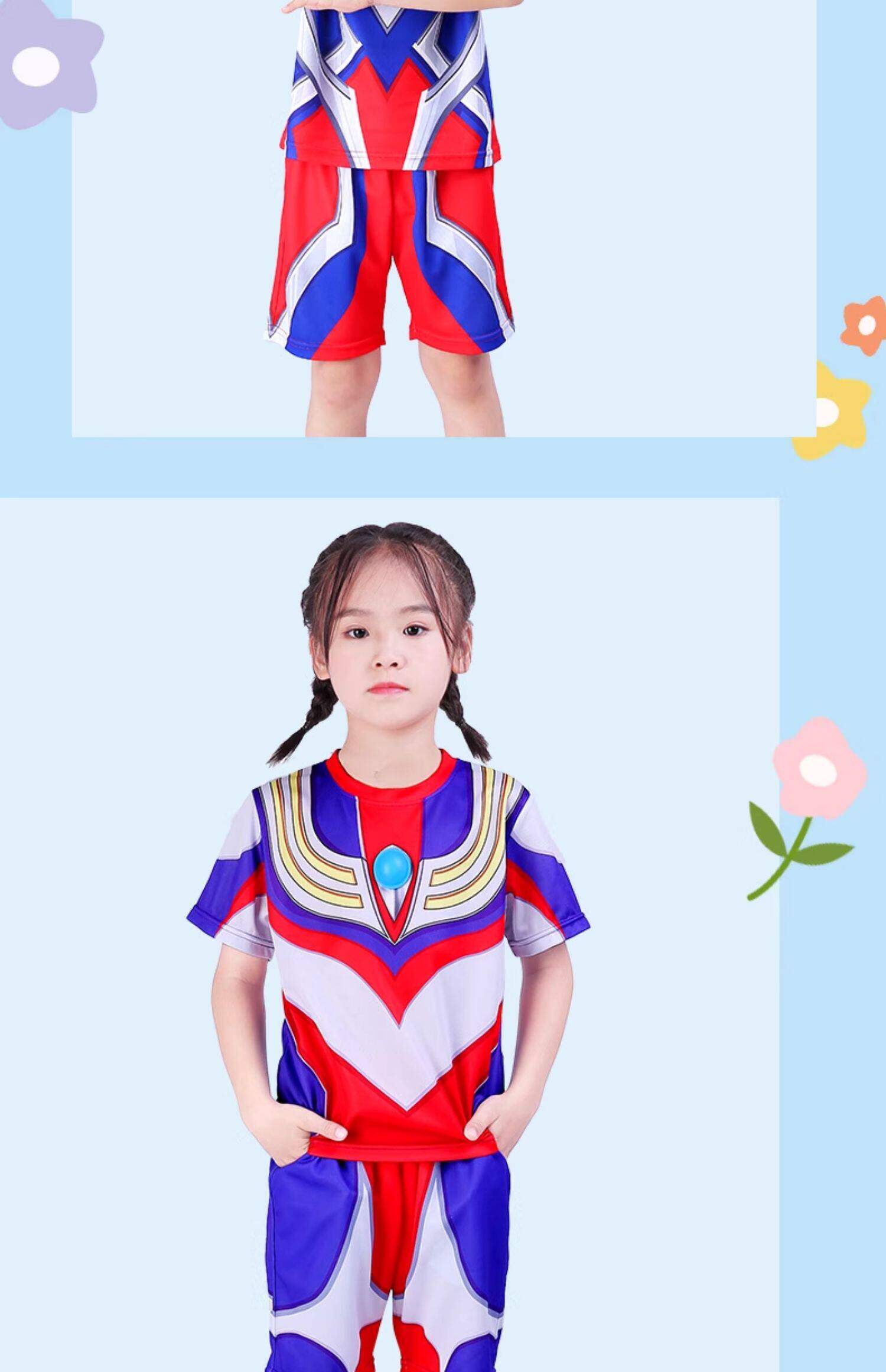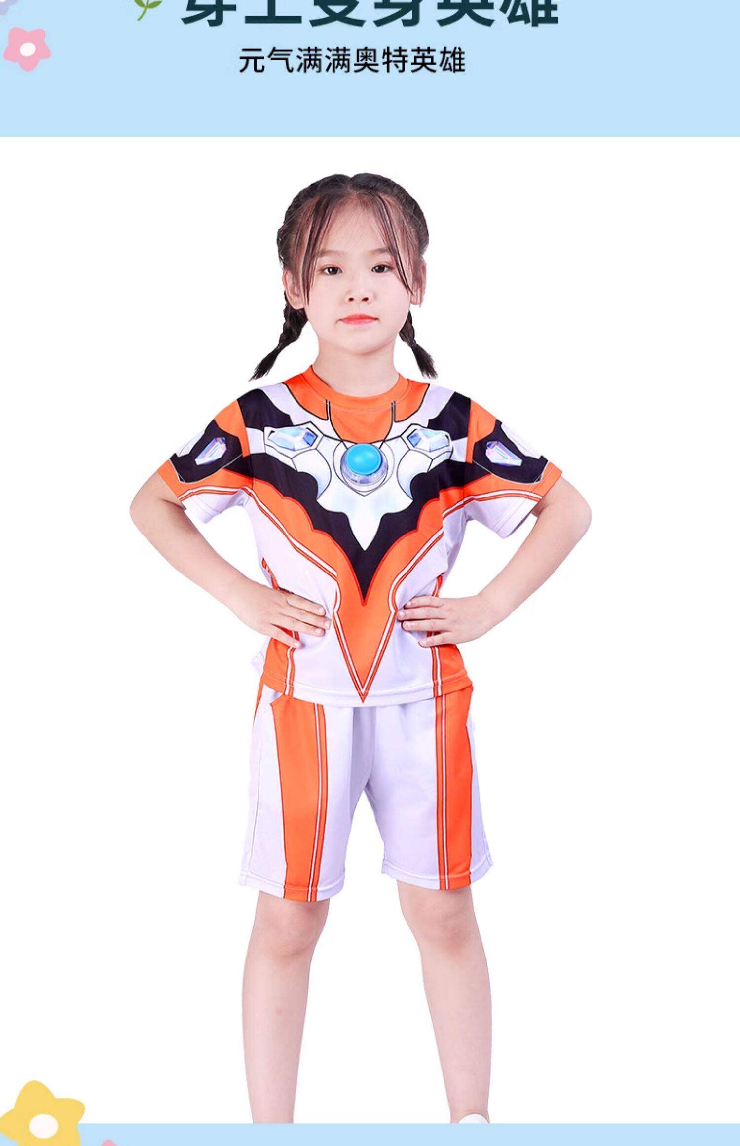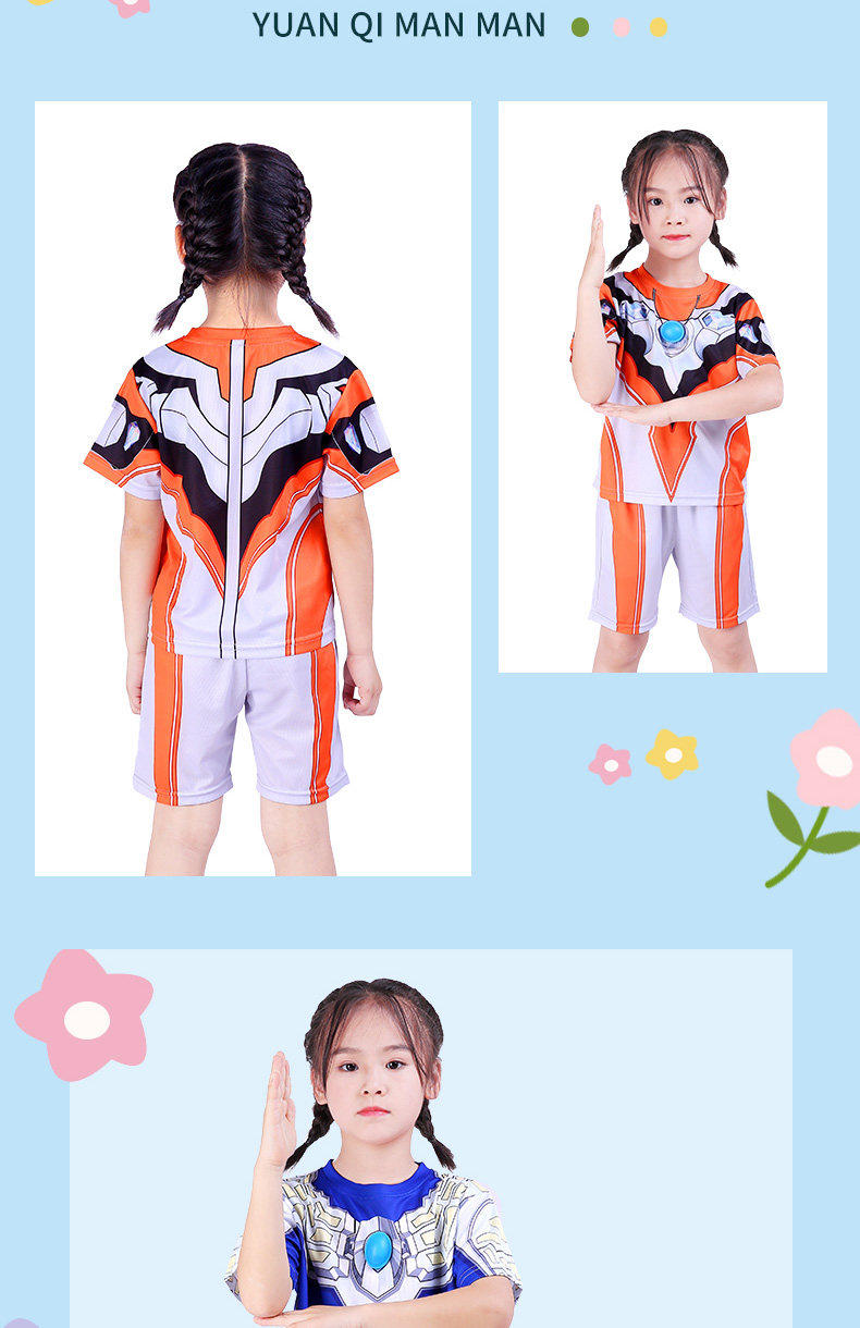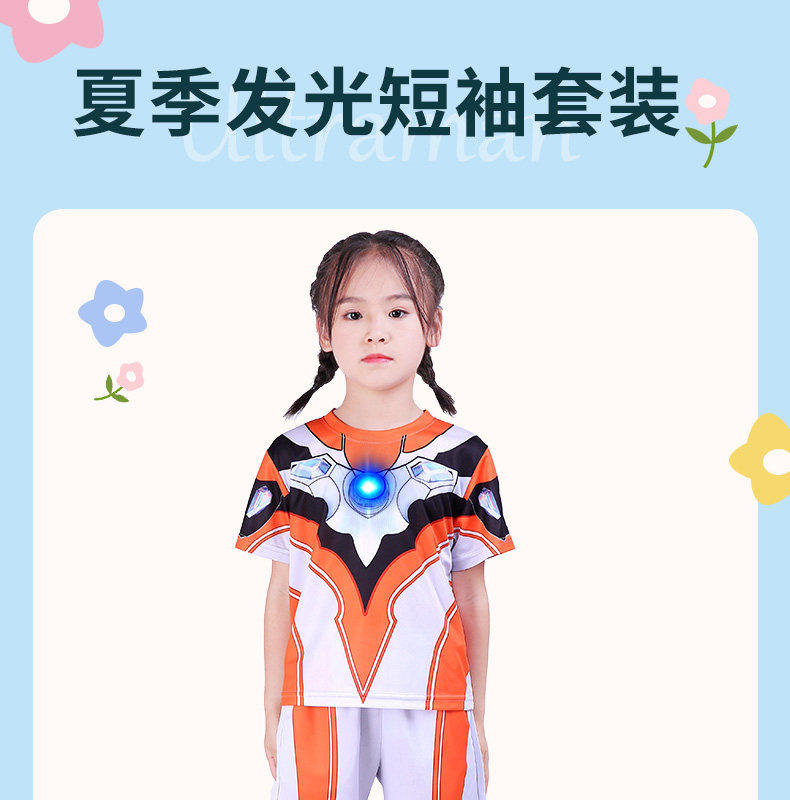 Authentic Ultraman Girls' Clothing, Grigio Girls' and Boys' Luminous Short-Sleeved Summer Breathable Quick-Drying T-Shirts