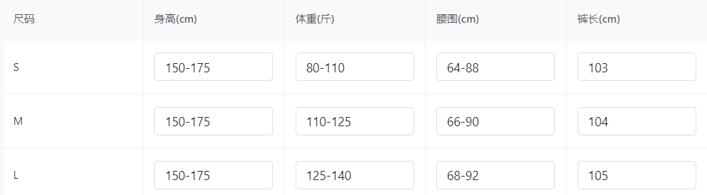 Outseam (cm) 99 cm 101.5 cm 104 cm 106.5 cm 109 cm