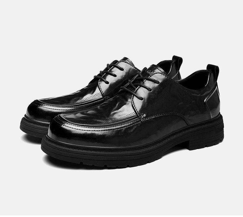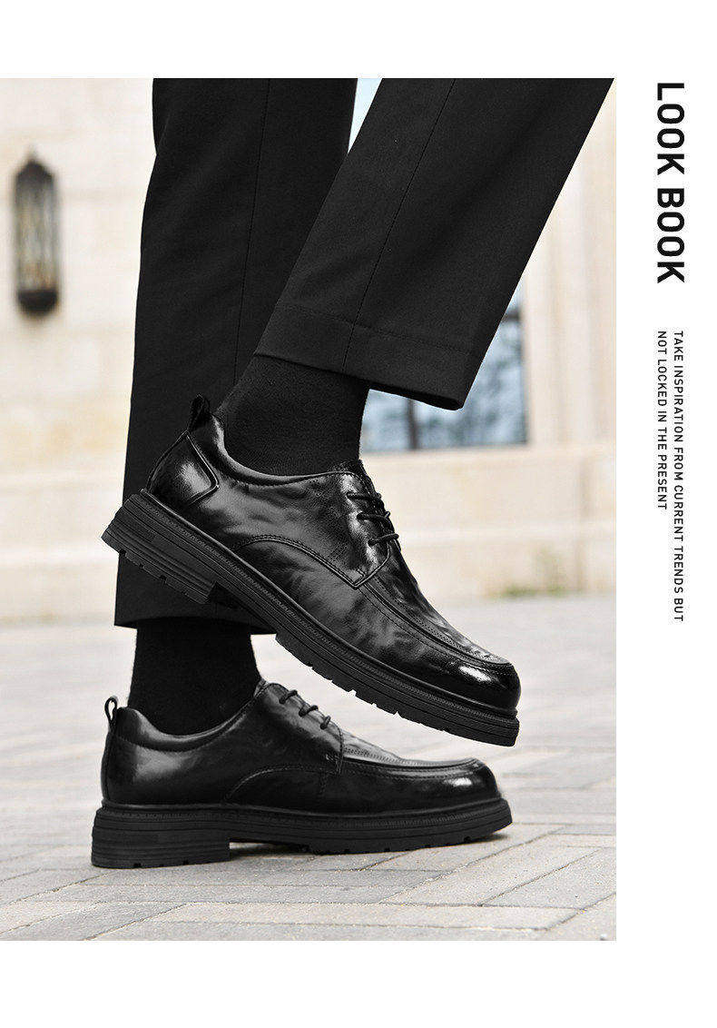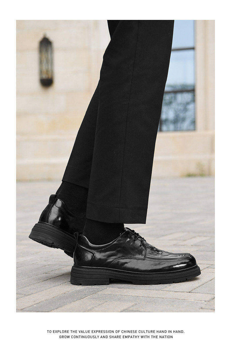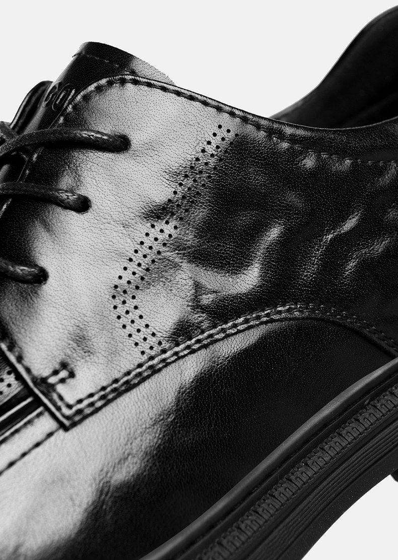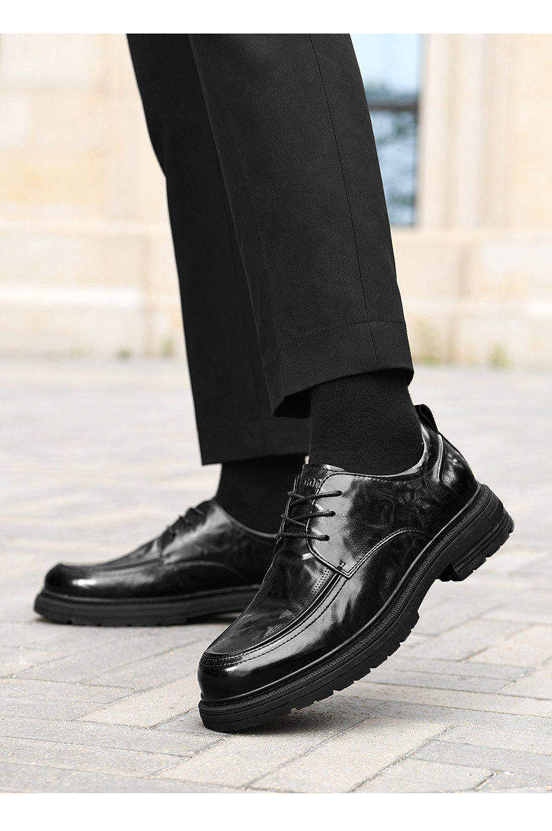 Hailan Home Men's Leather Shoes with 8cm Height Increase, Business Formal Derby Shoes, All Black, for Work, Commuting, Groom, Wedding Shoes