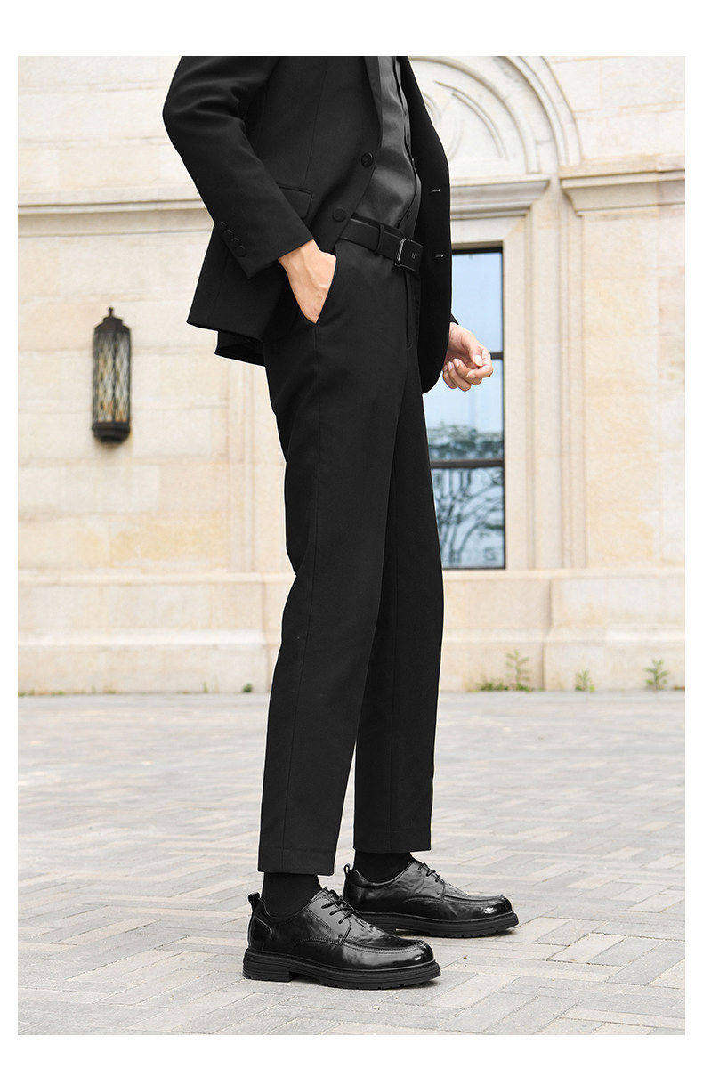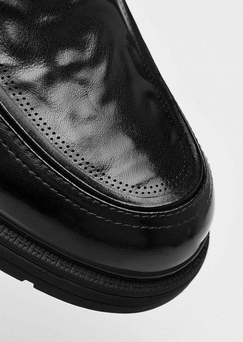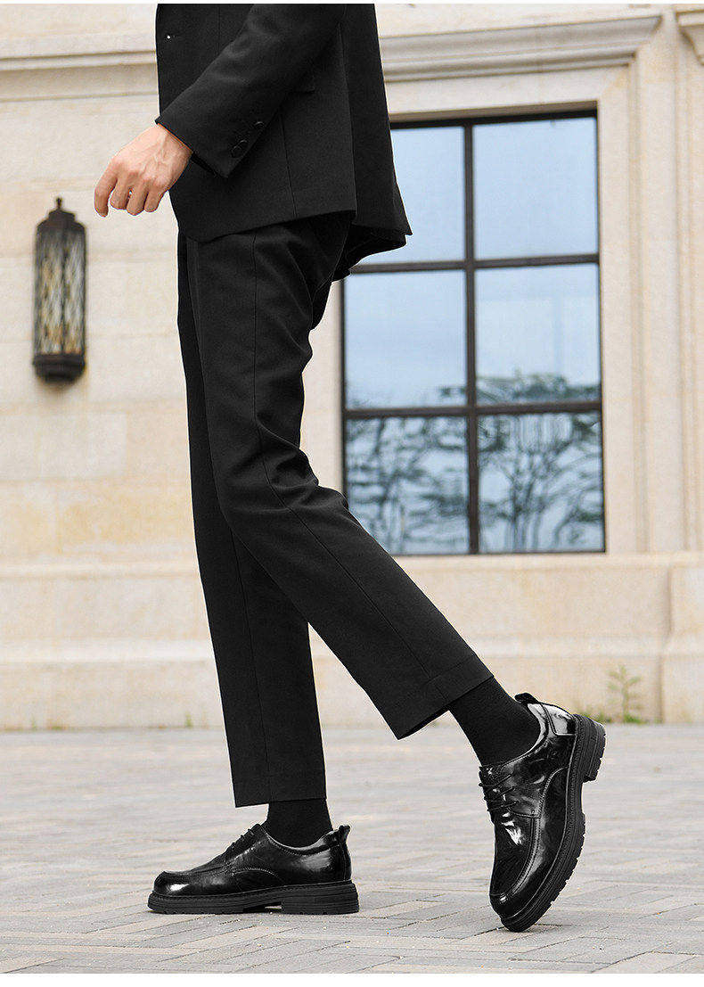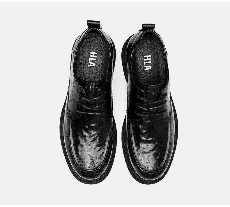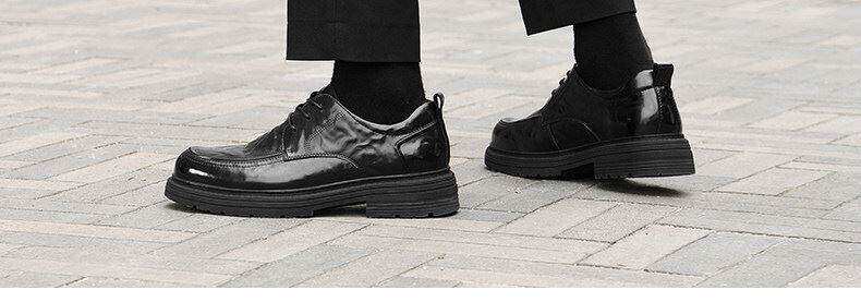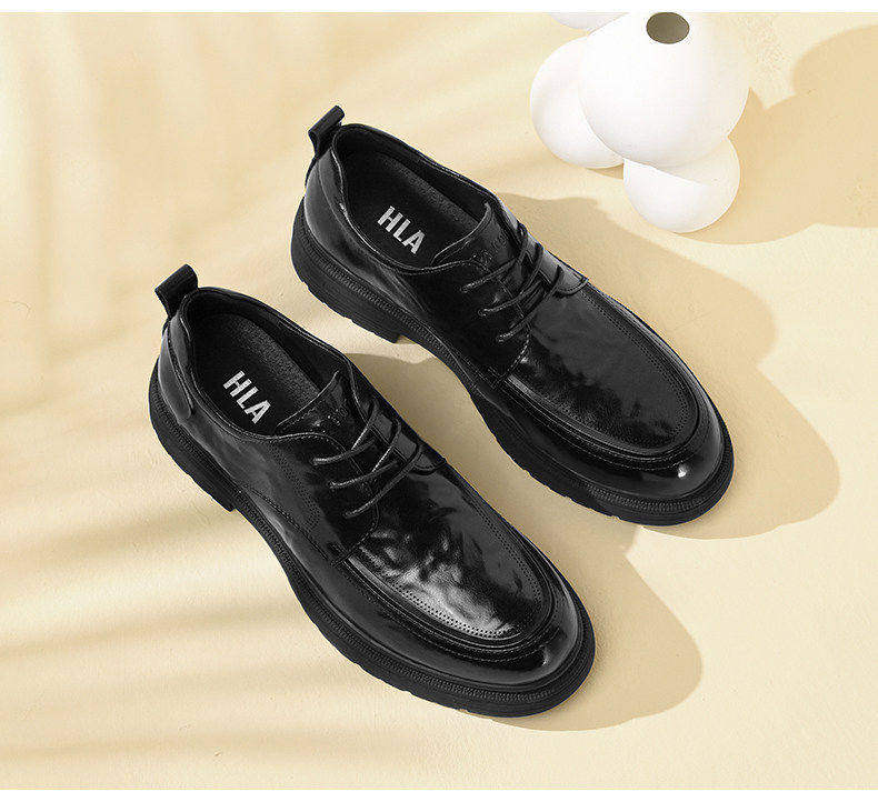Hailan Home Men's Leather Shoes with 8cm Height Increase, Business Formal Derby Shoes, All Black, for Work, Commuting, Groom, Wedding Shoes
