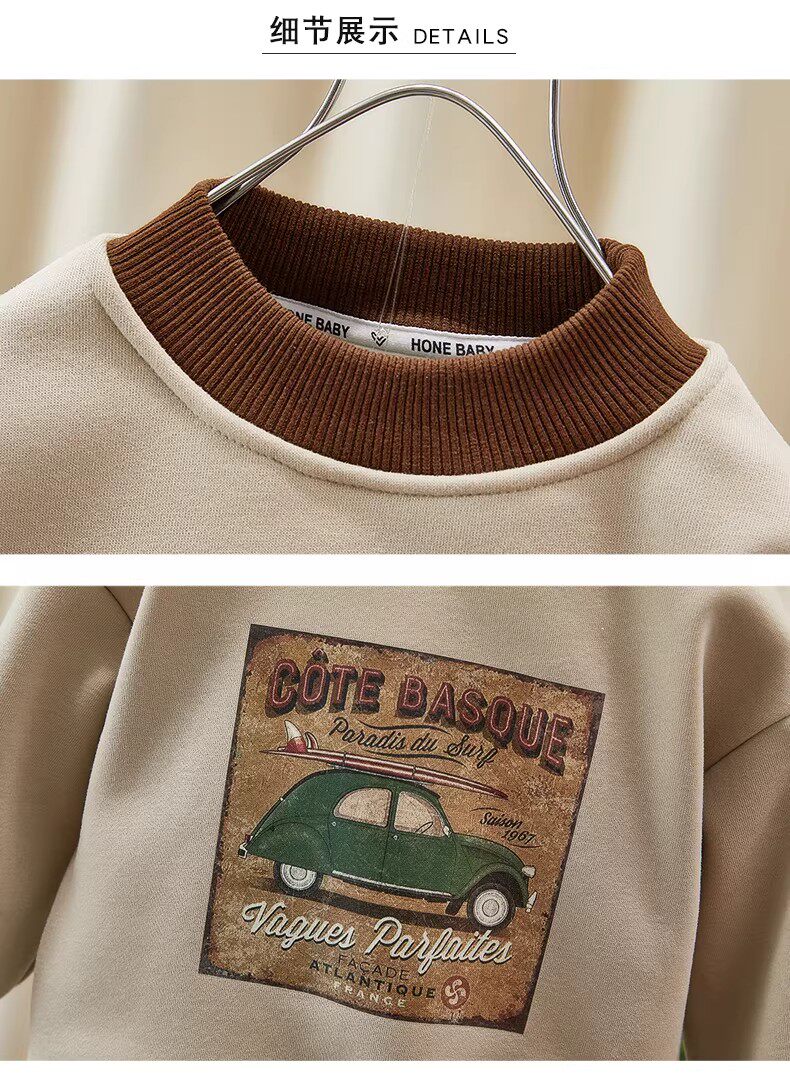 French-Style Boys' Sweatshirt, New Spring Collection, Children's Spring and Autumn Korean-Style Trendy Spring Season Round-Neck Long-Sleeve Top for Boys