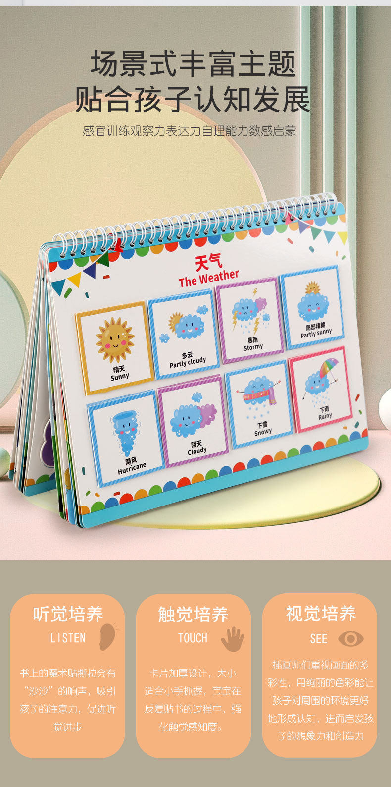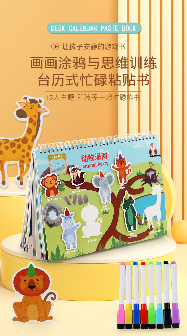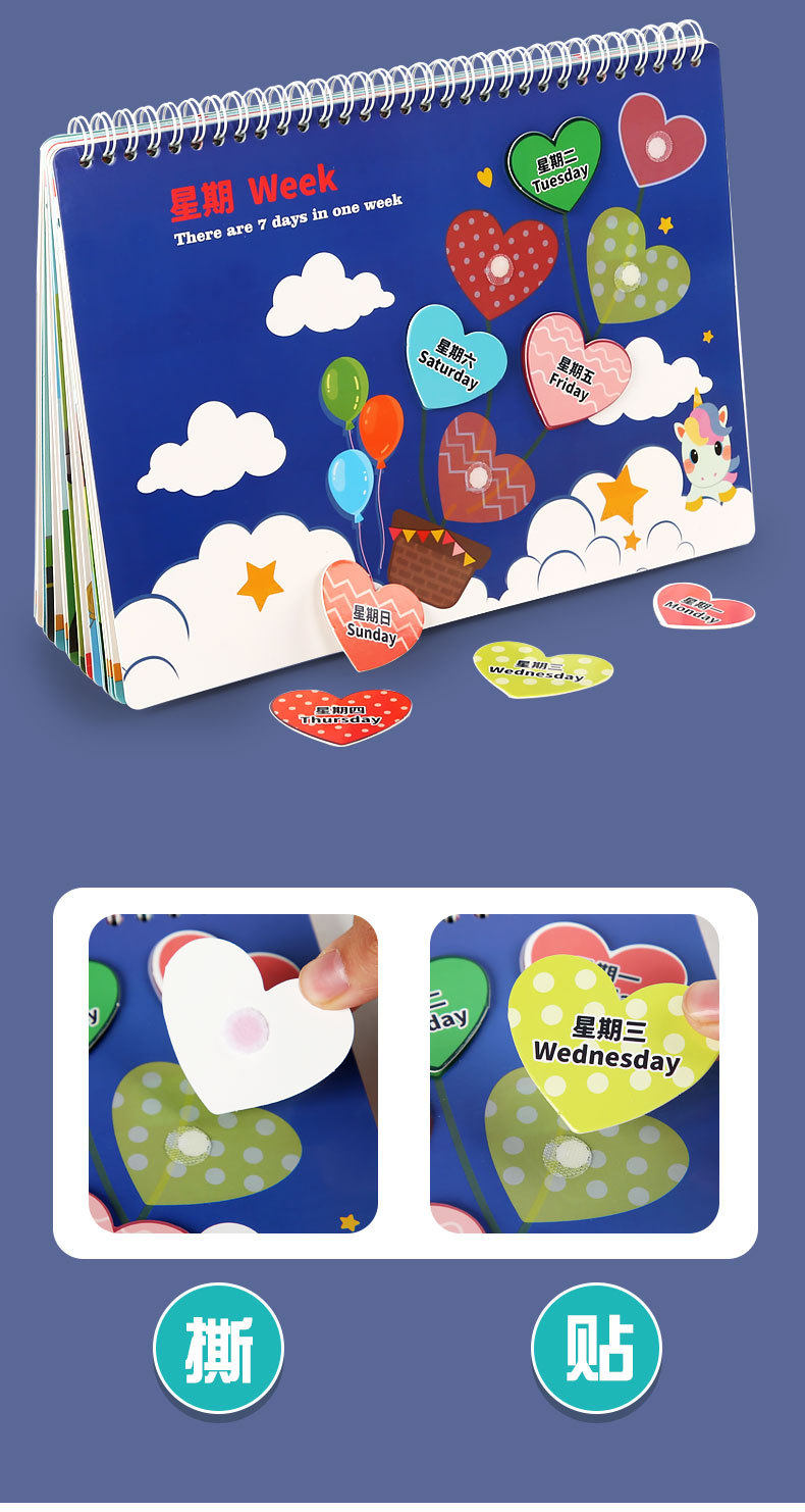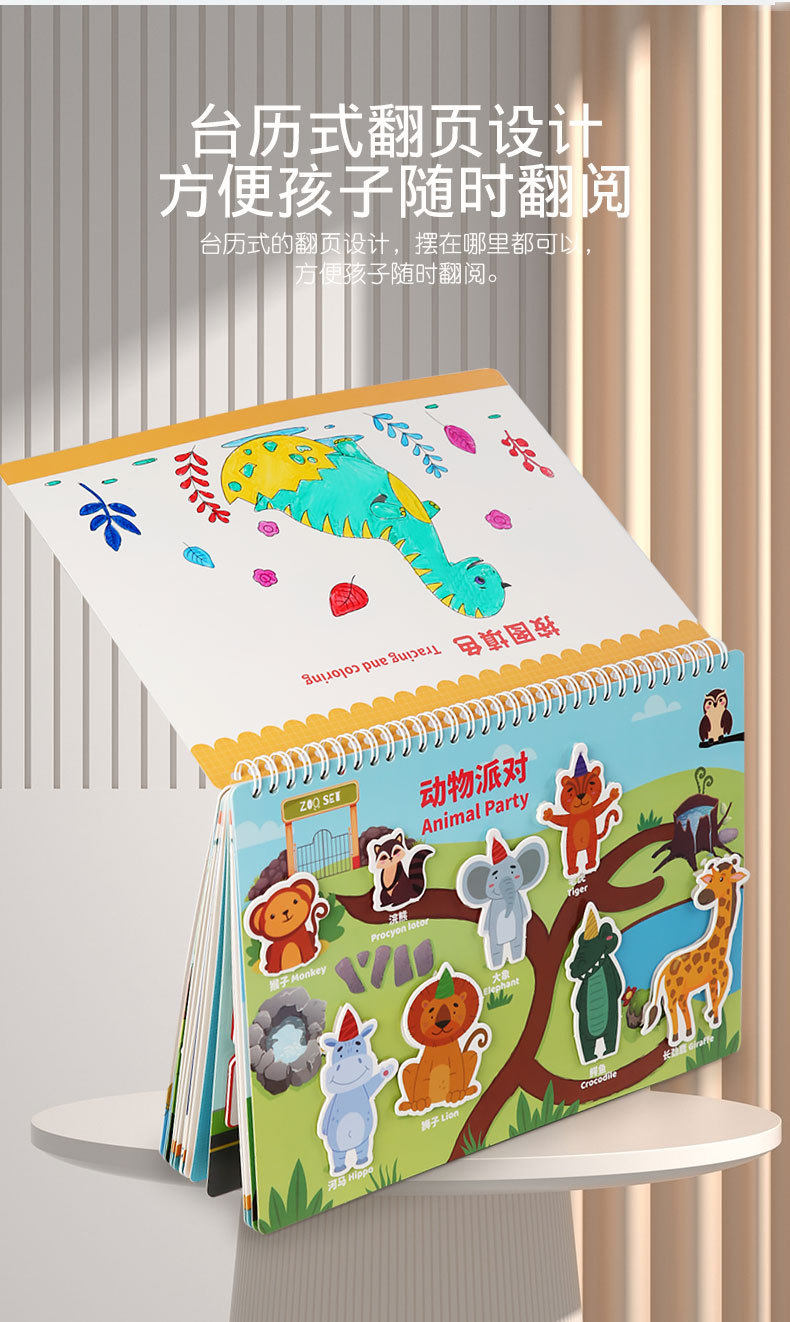 Early Education Enlightenment Doodle Quiet Book Montessori Sticky Painting Board Erasable Children's Educational Toy Tear-Off Book