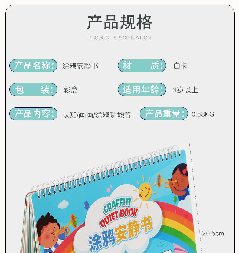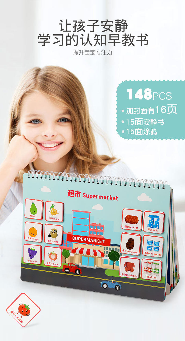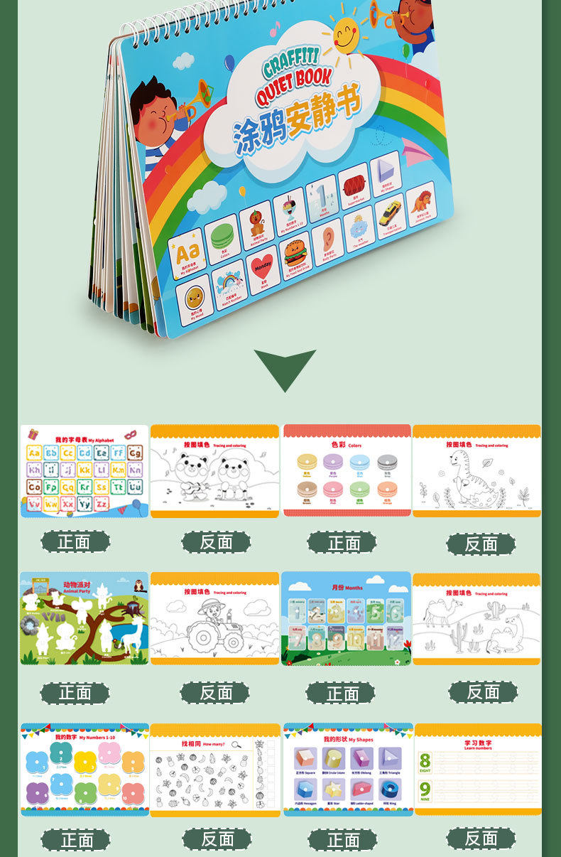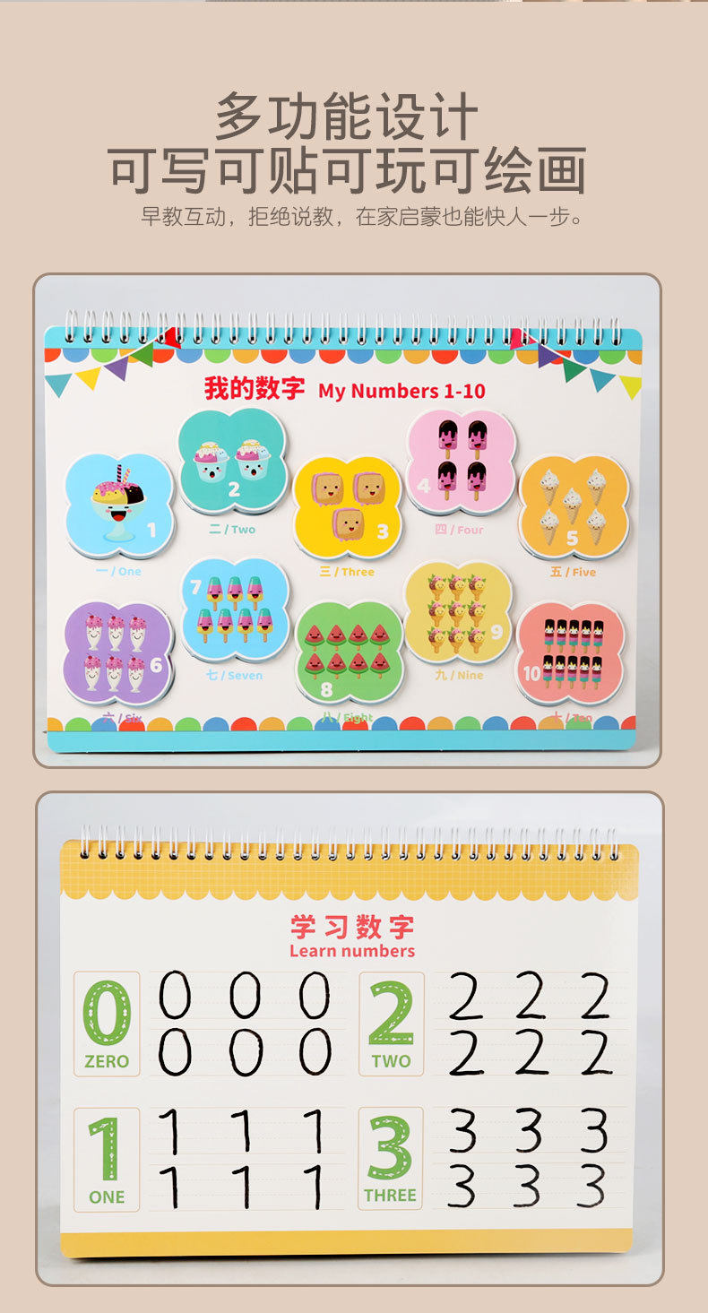 Early Education Enlightenment Doodle Quiet Book Montessori Sticky Painting Board Erasable Children's Educational Toy Tear-Off Book