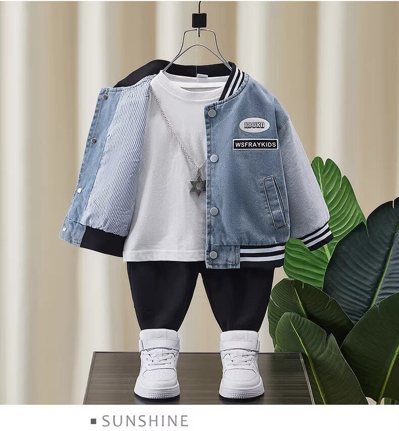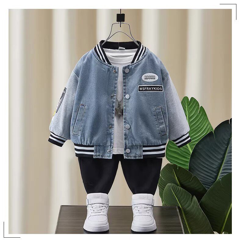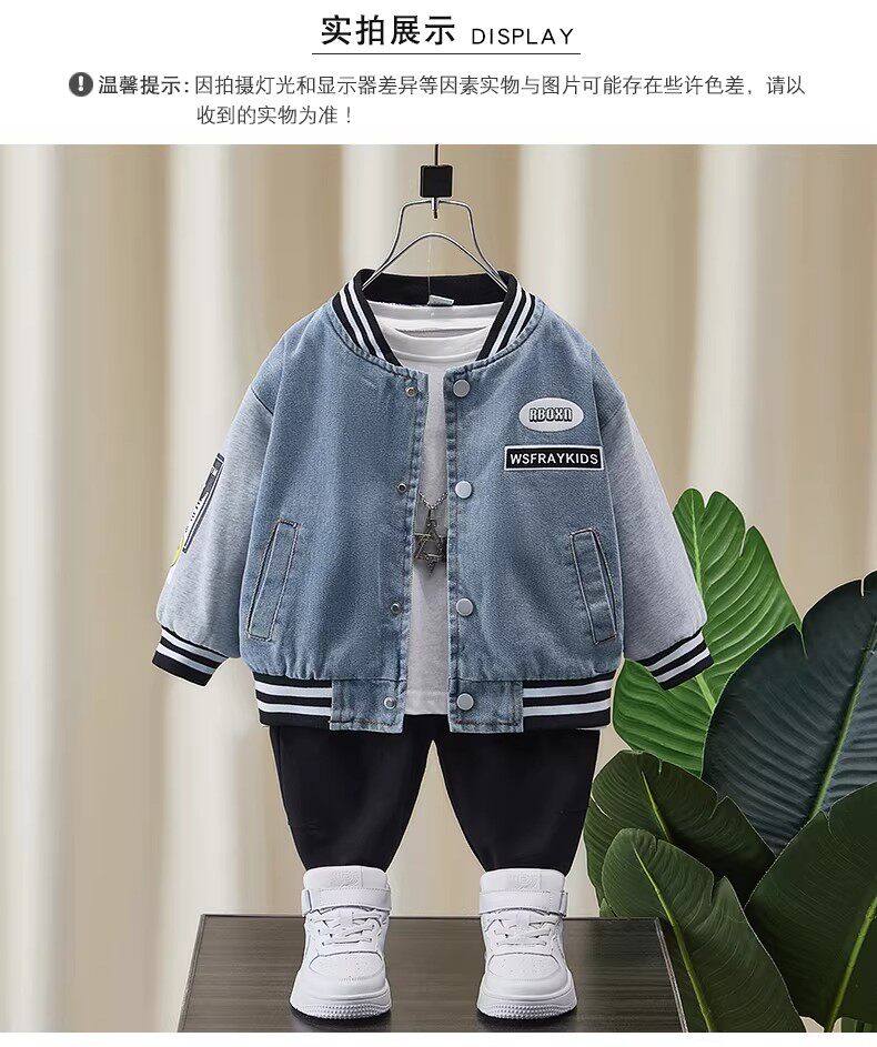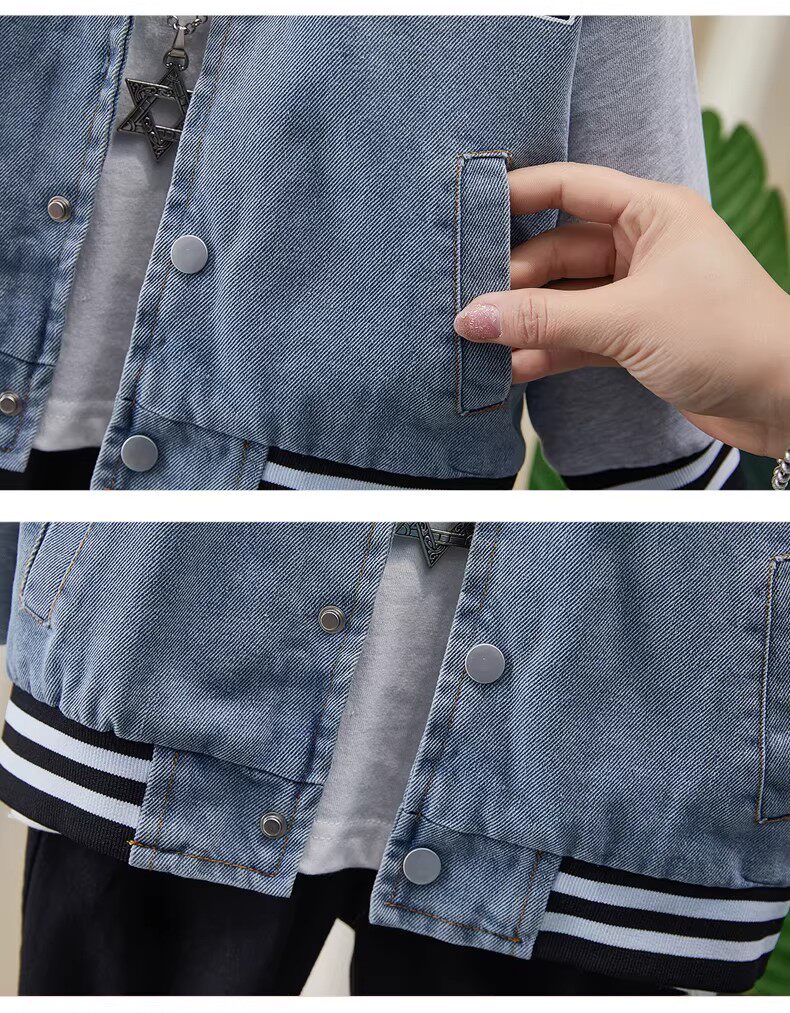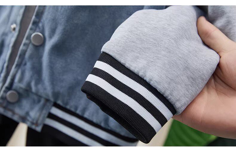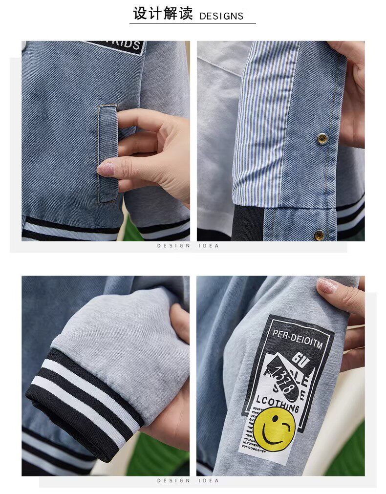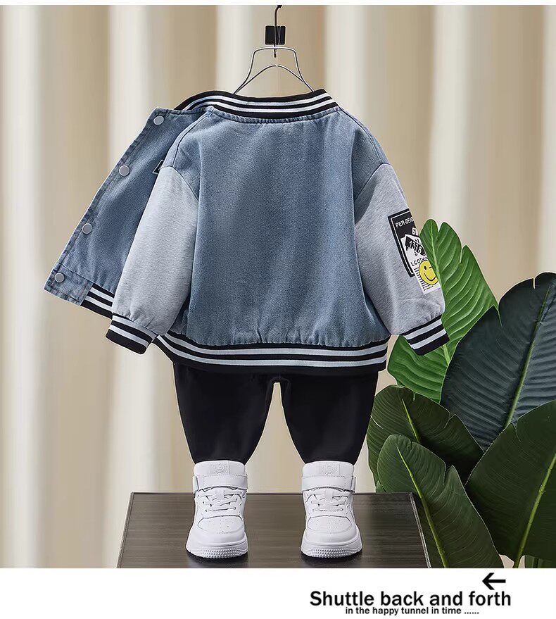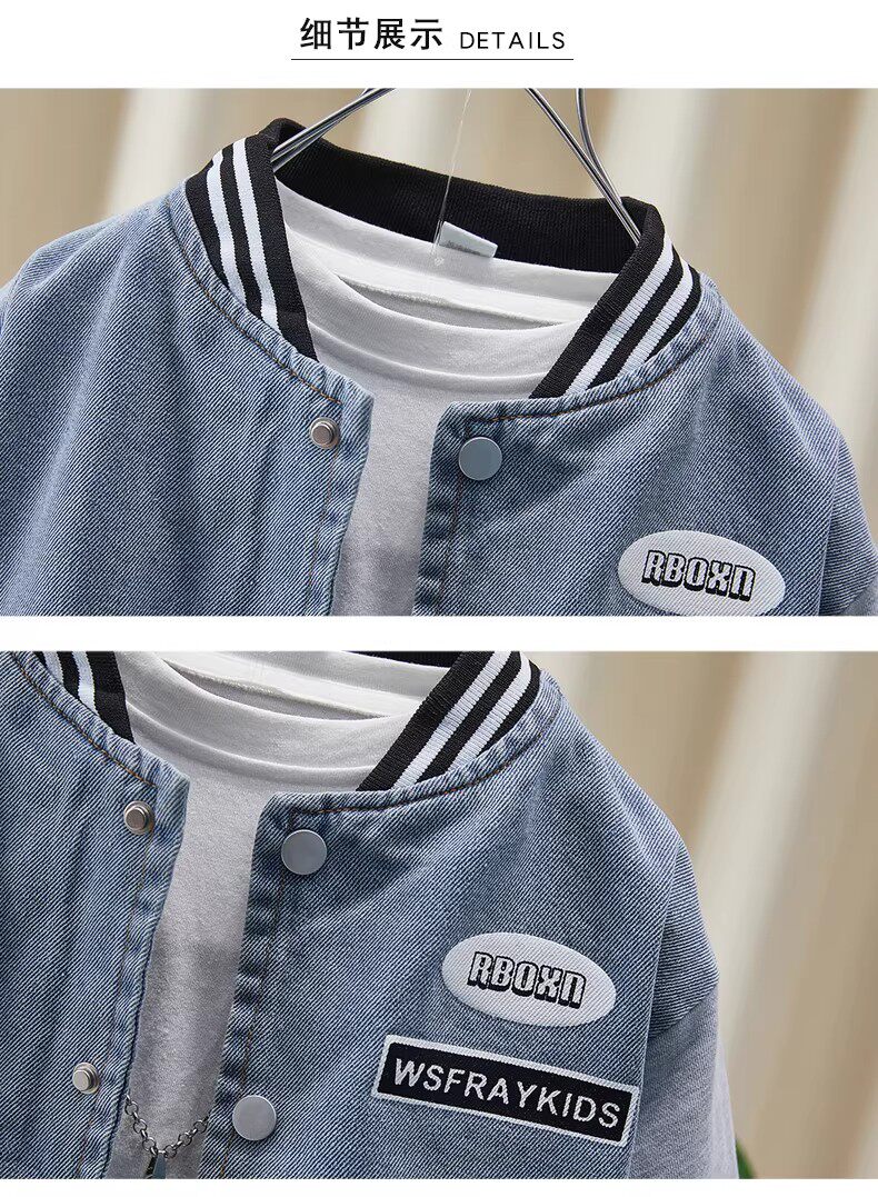 French-Style Boys' Jacket, New Spring/Autumn Model, Children's Spring Denim Patchwork Top, Stylish Baseball Jacket for Toddlers