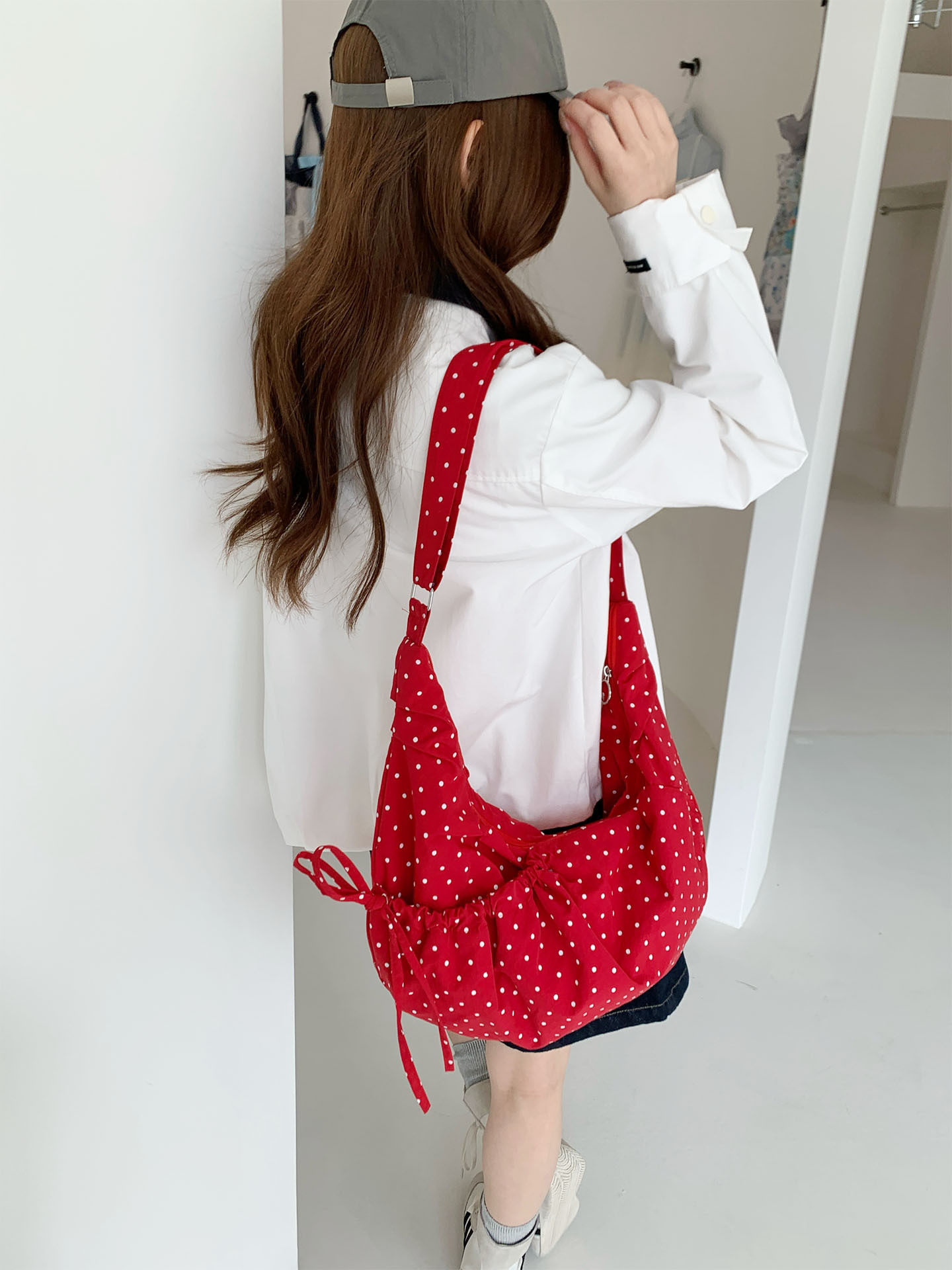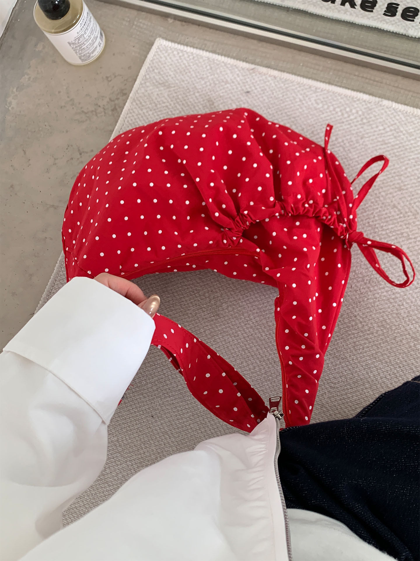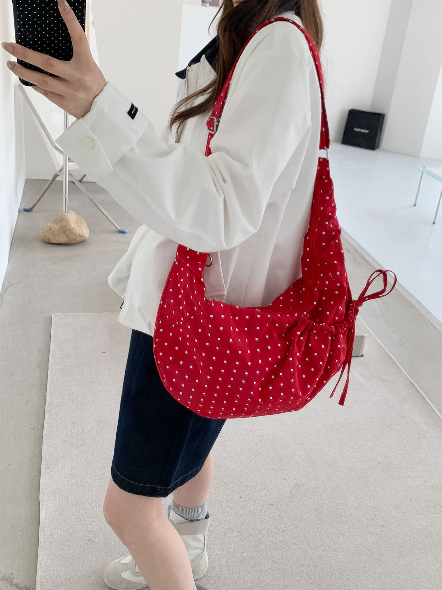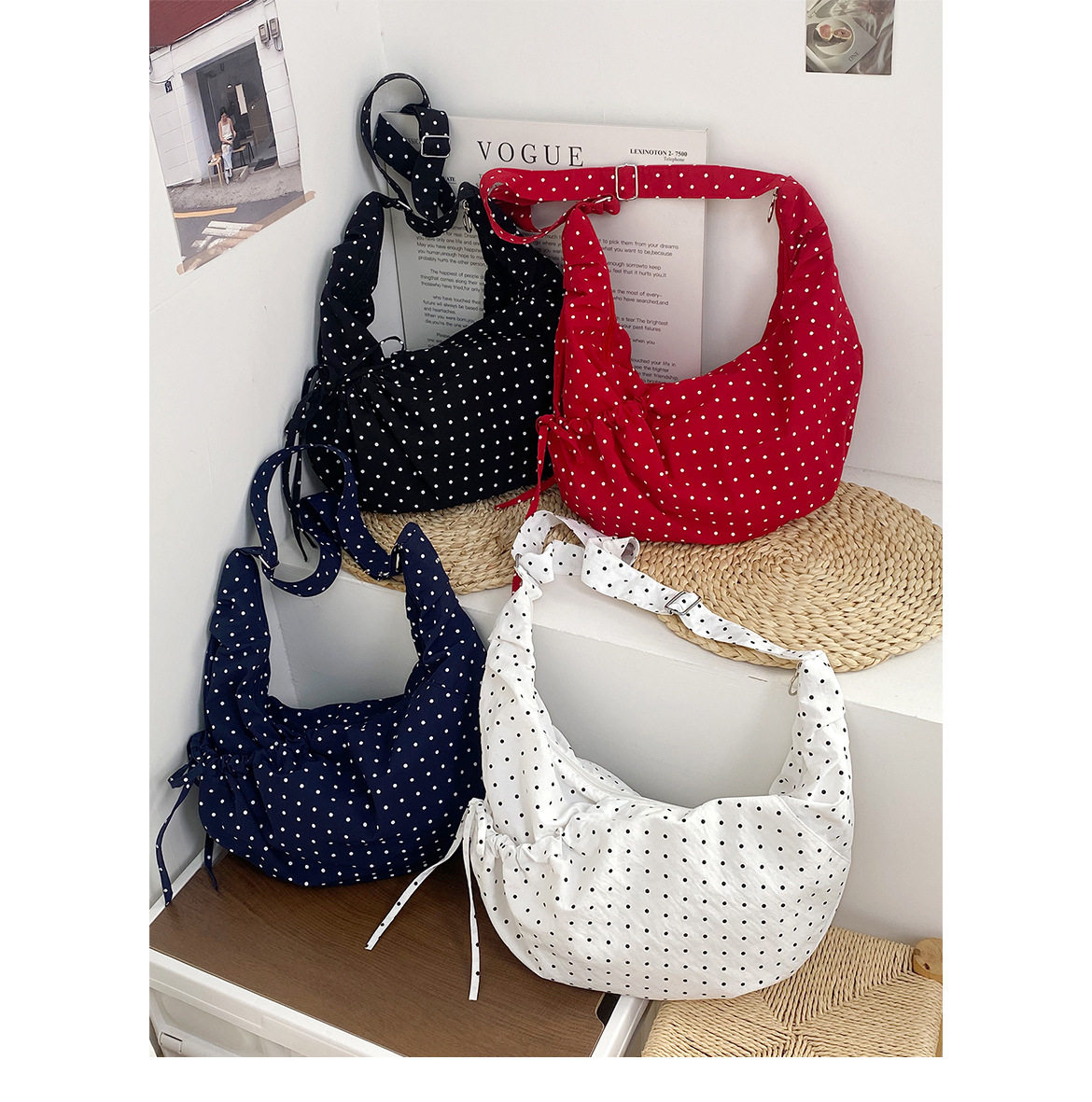 Early spring new style small fresh polka dot horn crossbody bag large capacity pleated niche design sweet dumpling shoulder bag