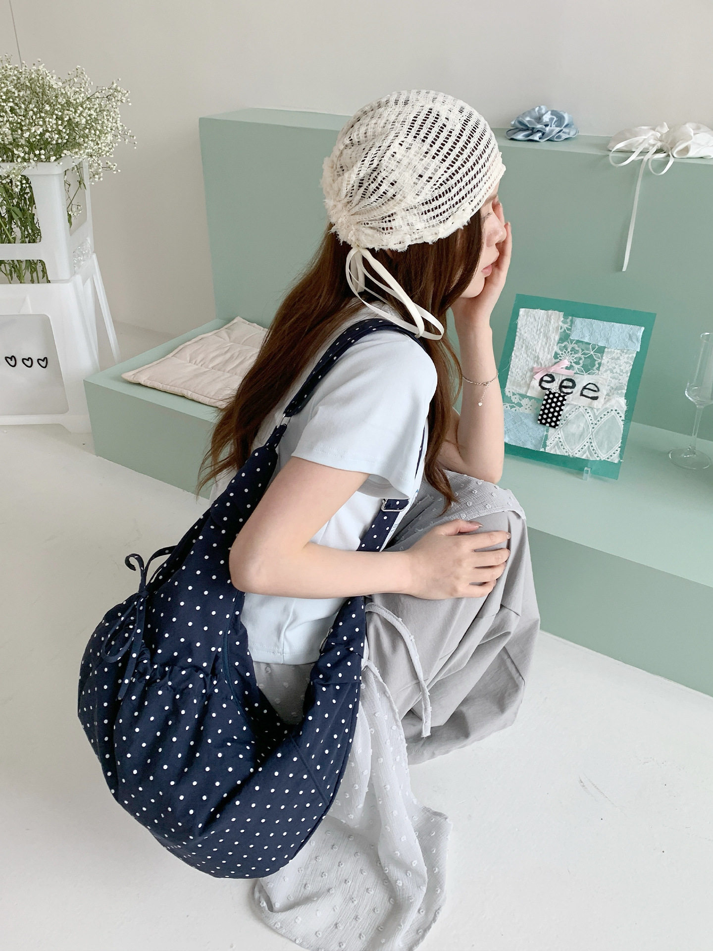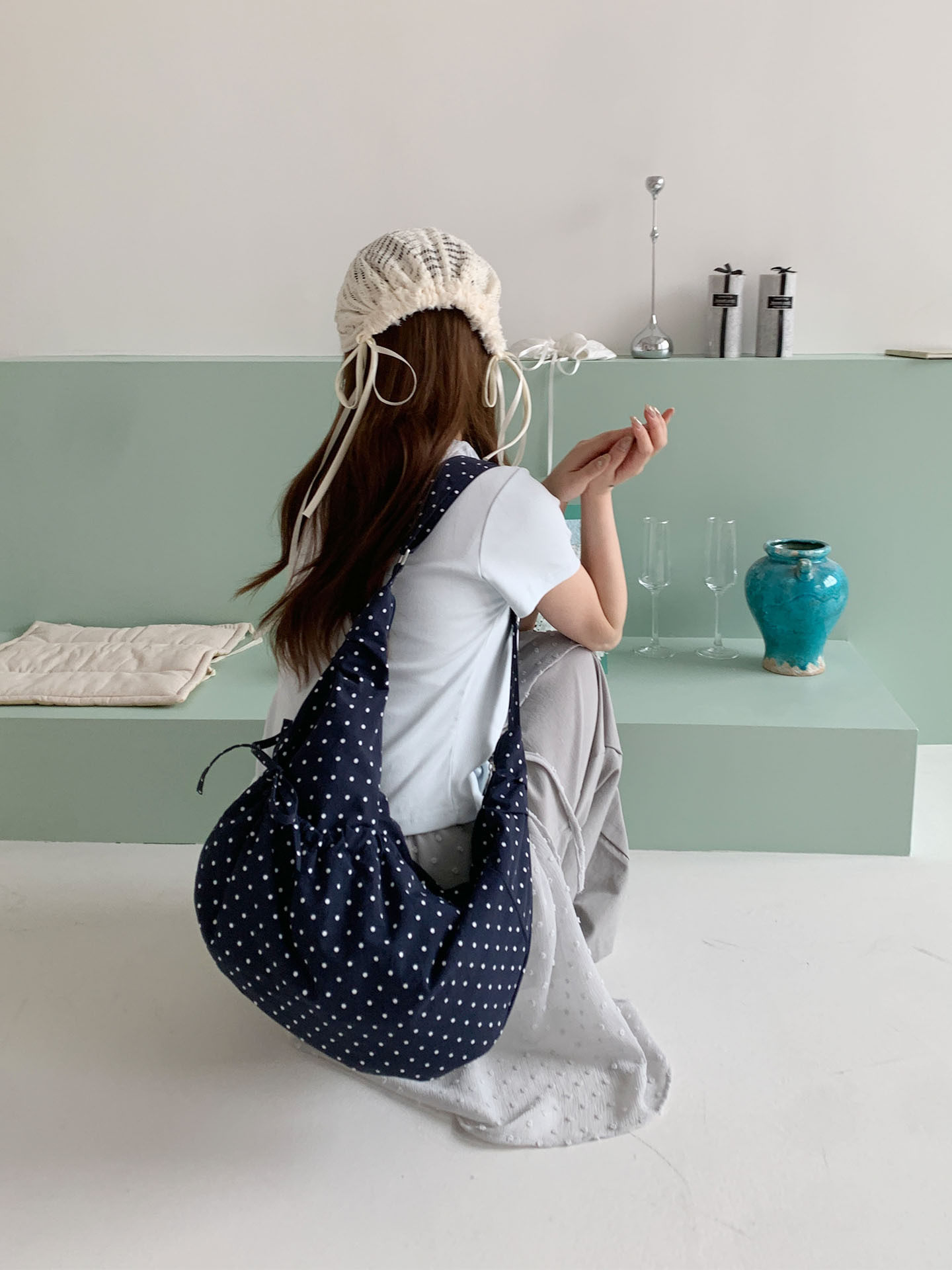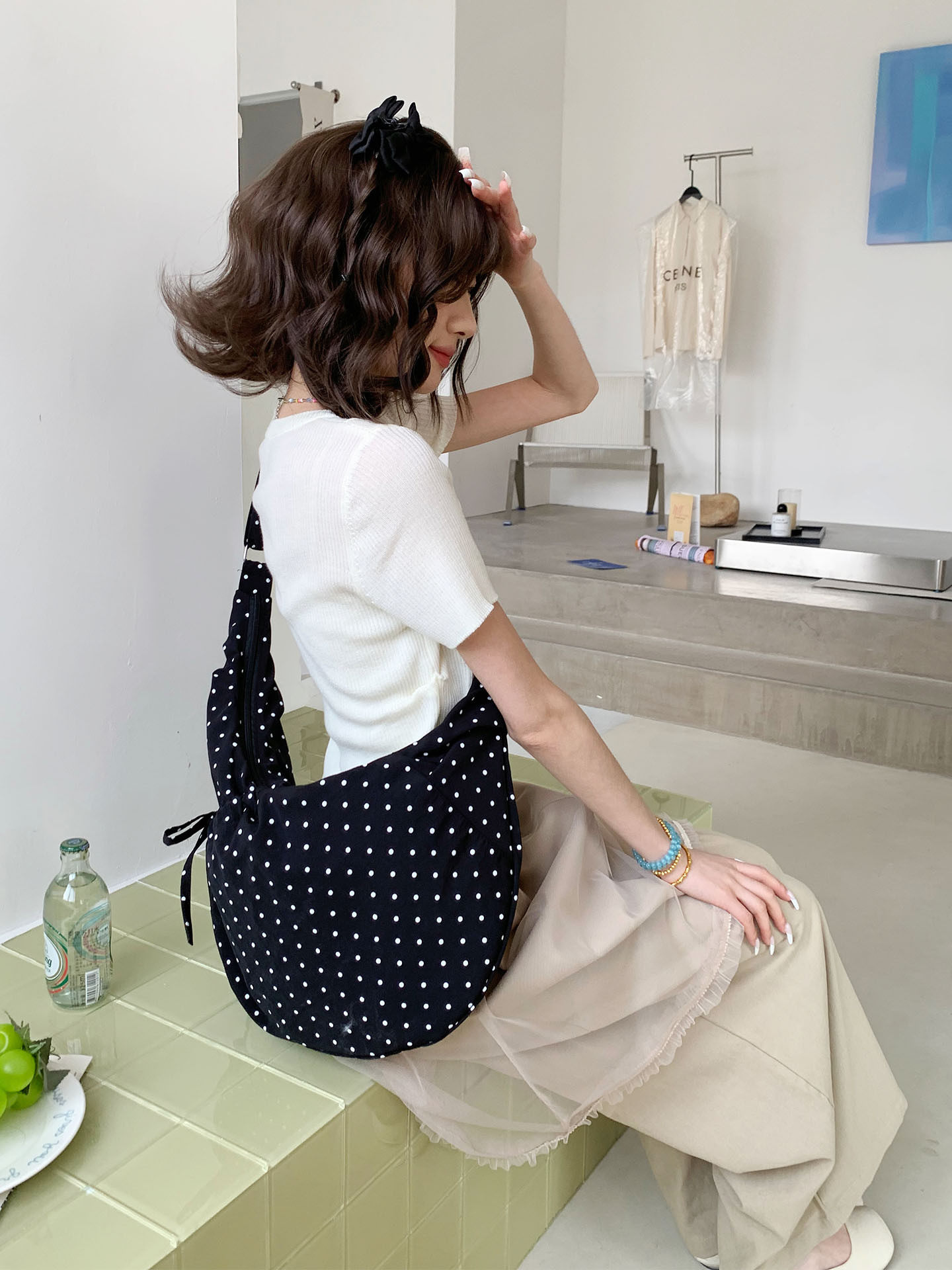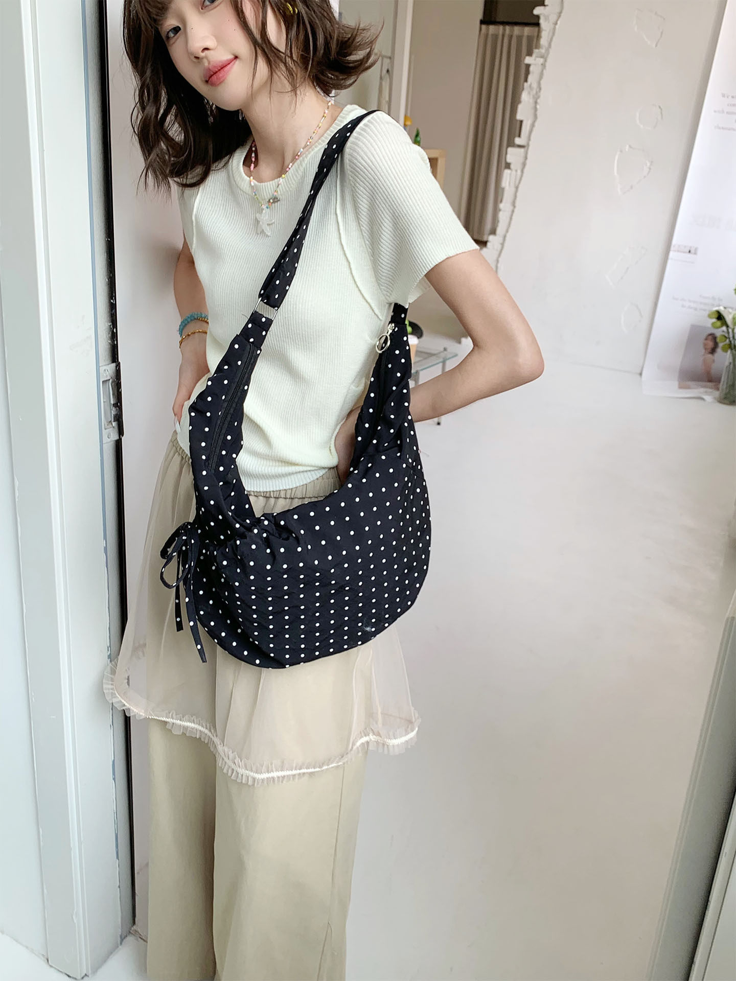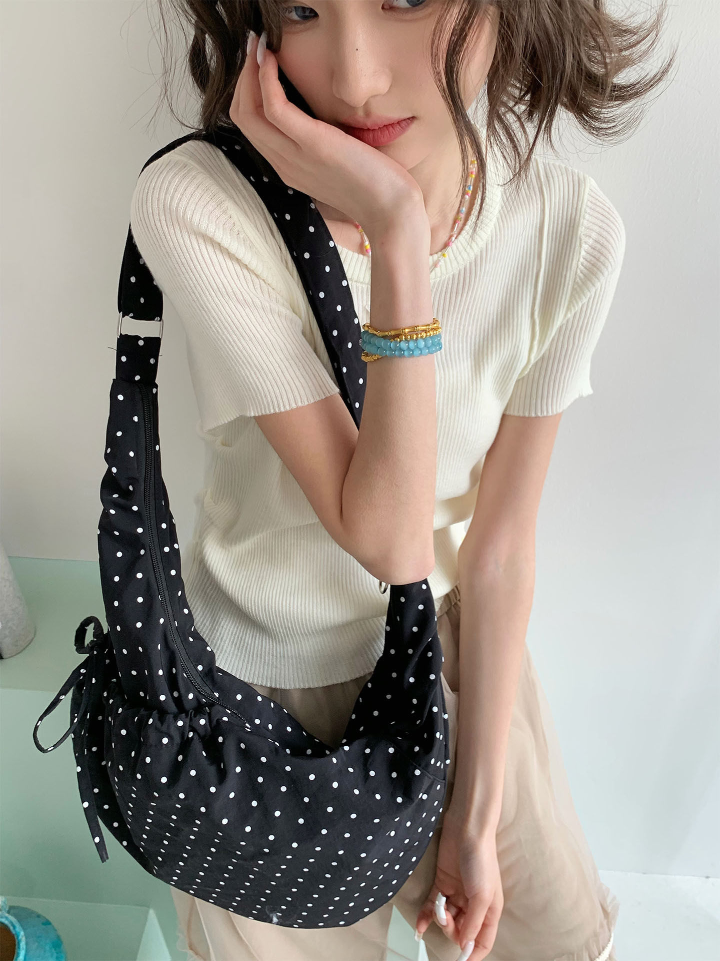 Early spring new style small fresh polka dot horn crossbody bag large capacity pleated niche design sweet dumpling shoulder bag